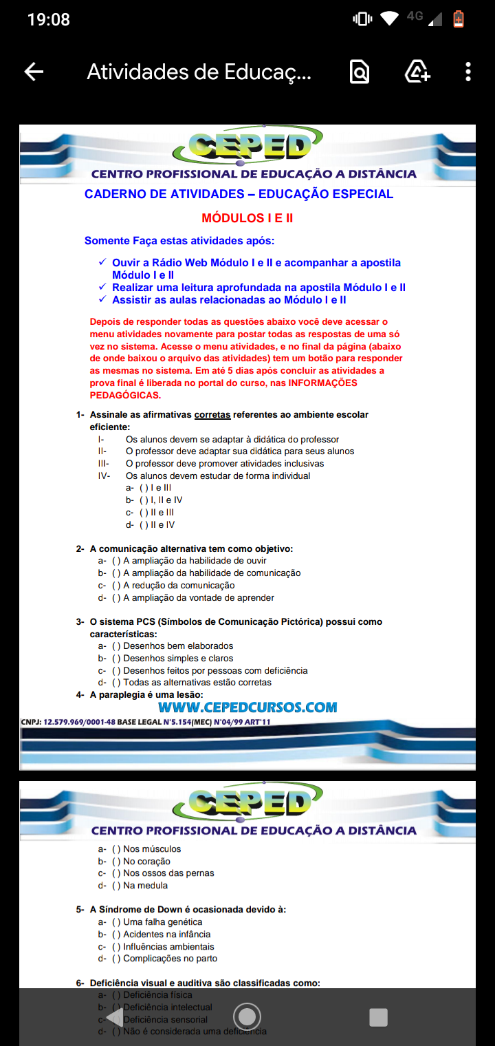 Faça estas atividades após: Ouvir a Rádio Web Módulo I e II e acompanhar a apostila Módulo I e Realizar uma leitura aprofundada na apostila Módulo I e Assistir as aulas relacionadas ao Módulo e II.