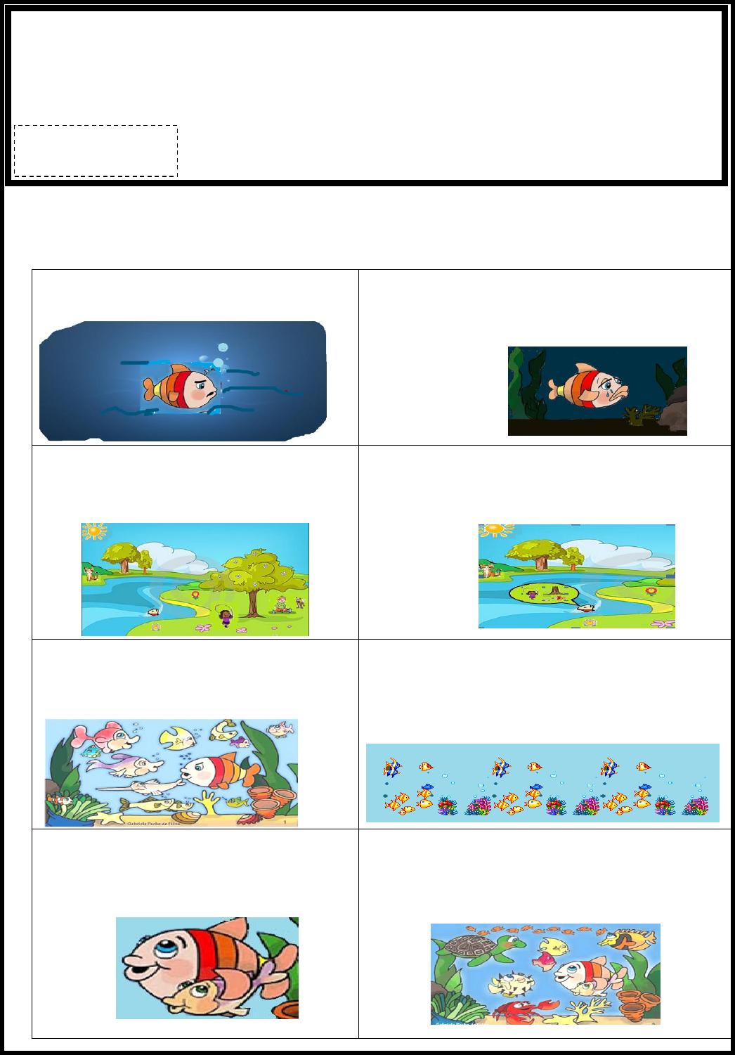 PRESTE ATENÇÃO NA HISTÓRIA QUE A PROFESSORA VAI LER! O PEIXE PIXOTE (AUTORA: SÔNIA JUNQUEIRA) PIXOTE VIVIA NUM LAGO E ANDAVA SEMPRE TRISTE. ELE NÃO GOSTAVA DO LAGO PORQUE ERA MUITO ESCURO E ELE TINHA MEDO DO ESCURO ELE GOSTAVA DE IR ATÉ A MARGEM DO LADO PORQUE LÁ ERA TUDO LINDO! TINHA CÉU, SOL, GRAMA, FLORES, CRIANÇA, GATO E CACHORRO. PIXOTE QUERIA MORAR LÁ NA GRAMA. UM DIA PIXOTE VIU OS PEIXES BRINCANDO NAS ÁGUAS CLARAS DO LAGO. ELE PENSOU: – UÉ! OUTROS PEIXES? ÁGUAS CLARAS? SERÁ QUE EU VIM PARAR EM OUTRO LUGAR SEM SABER? DE REPENTE PIXOTE DESCOBRIU O QUE TINHA ACONTECIDO E COMEÇOU A RIR. - EU SOU MESMO UM PATETA! FICAVA NADANDO PRA LÁ E PRA CÁ, DE OLHO FECHADO! E.M.E.F. MARIA ARLETE BITENCOURT LODETTI ALUNO: ____________________________ SÉRIE: _______ PROFESSORA: _____________________DATA: ___/___/2014 AUXILIAR: ________________________ AVALIAÇÃO DE LÍNGUA PORTUGUESA Visto da coordenadora 1) AGORA RESPONDA: a) QUEM ERA PIXOTE? ( ) PEIXE ( ) GATO ( ) CACHORRO b) COMO ELE VIVIA? ( ) ALEGRE ( ) TRISTE c) ELE NÃO GOSTAVA DO LAGO PORQUE ERA: ( ) ESCURO ( ) CLARO d) ONDE ELE QUERIA MORAR? ( ) NO MAR ( ) NA GRAMA e) QUANDO PIXOTE DESCOBRIU QUE O LAGO ERA BONITO, ELE: ( ) RIU ( ) CHOROU 2) O QUE PIXOTE DISSE QUANDO DESCOBRIU O QUE TINHA ACONTECIDO? EU SOU UM ______________________ 3) O QUE VOCÊ ACHA QUE PIXOTE PASSOU A VER NO LAGO? ( ) PEIXES ( ) GATO ( ) TARTARUGAS ( ) CRIANÇAS ( ) PLANTAS ( ) ÁRVORES 4- O QUE PIXOTE VIA QUANDO BOTAVA A CABEÇA PARA FORA DO LAGO? 5- DESENHE NO QUADRO ABAIXO COMO ERA O FUNDO DO LAGO DEPOIS QUE PIXOTE ABRIU OS OLHOS. VOCÊ É UM AMOR!! Observação: Nesse espaço relate como foi o momento de avaliação do aluno: O aluno conseguiu ler as questões da prova sozinho ou necessitou de um ledor? Quem o auxiliou? Foi necessário mediar as questões ou conseguiu interpretar e responder sozinho? Quais questões demonstrou autonomia e quais apresentou maior dificuldade? Anote tudo o que possa contribuir na avaliação do aluno. ___________________________________________________________ ___________________________________________________________ ___________________________________________________________ ___________________________________________________________ ___________________________________________________________ ___________________________________________________________ ___________________________________________________________ ___________________________________________________________ ___________________________________________________________ ___________________________________________________________ ___________________________________________________________ ___________________________________________________________ ___________________________________________________________ ___________________________________________________________ ___________________________________________________________ ___________________________________________________________ ___________________________________________________________ ___________________________________________________________ ___________________________________________________________ Assinaturas: _____________________ _______________________
