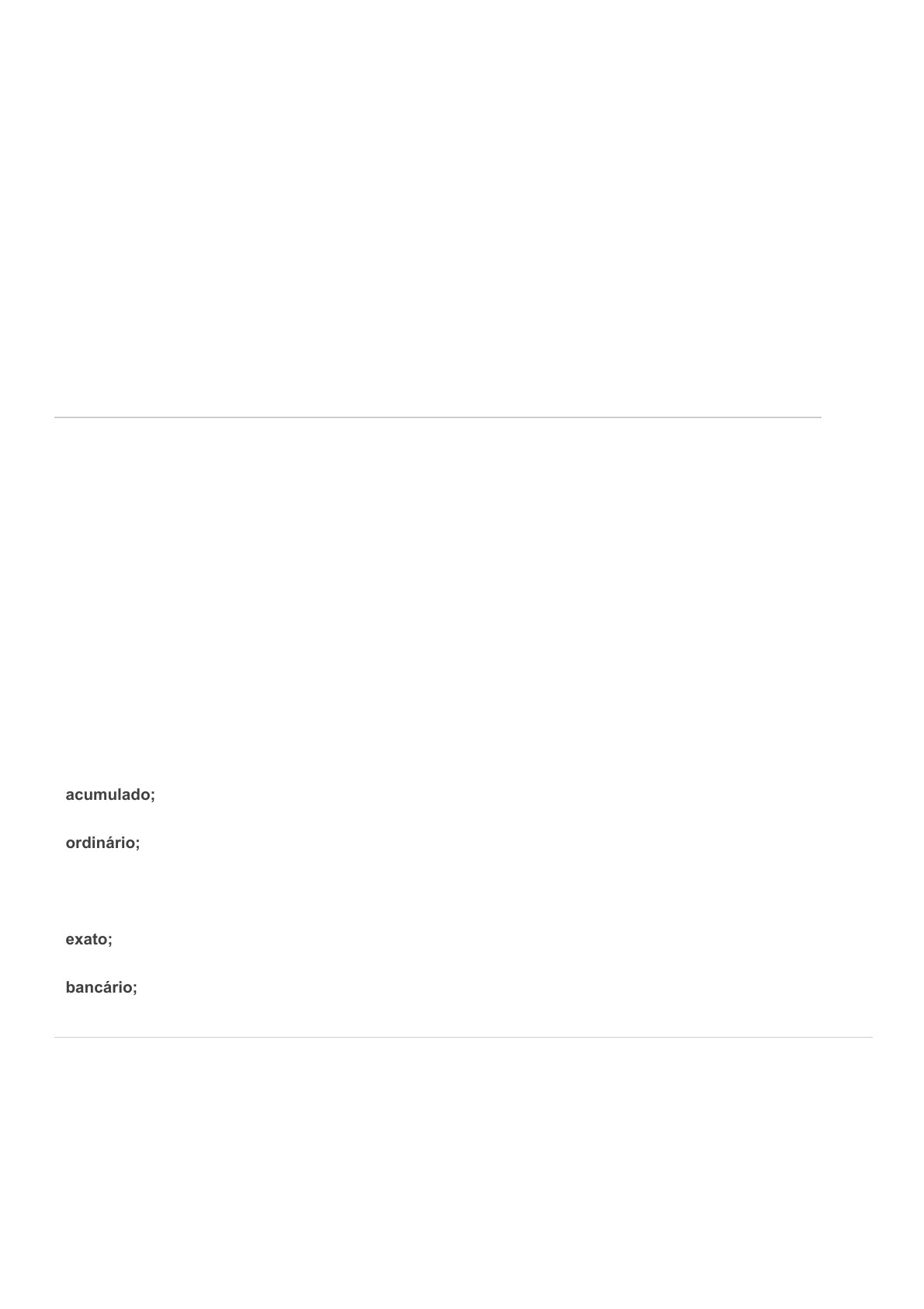 26/05/2021 Comentários https://sereduc.blackboard.com/ultra/courses/_50210_1/grades/assessment/_3428464_1/overview/attempt/_11135460_1/review/inline-feedback?… 1/6 Conteúdo do exercício Ocultar opções de resposta Pergunta 1 -- /1 “ O juro __________________ considera em sua base de cálculo o ano cível, constituído por doze meses compostos por trinta dias cada, totalizando 360 dias.” Assinale a alternativa que preenche corretamente esta lacuna. acumulado; ordinário; Resposta corretacomercial; exato; bancário; Pergunta 2 -- /1 9/10 Nota final Enviado: 26/05/21 21:01 (BRT) 26/05/2021 Comentários https://sereduc.blackboard.com/ultra/courses/_50210_1/grades/assessment/_3428464_1/overview/attempt/_11135460_1/review/inline-feedback?… 2/6 Ocultar opções de resposta Ocultar opções de resposta Um mesmo quantitativo de capital igual R$ 3.500,00 foi aplicado em seis meses em regimes de capitalização simples, mas distintos quanto à taxa de juros; um foi aplicado a uma taxa mensal de R$1,25% e o outro a uma taxa trimestral de 3,64%. Sobre o montante resultante, assinale a alternativa correta. Regido pela taxa mensal o montante é de R$3.762,50, enquanto a taxa trimestral gera um montante de R$3.756,80; Resposta correta Regido pela taxa mensal o montante é de R$3.762,50, enquanto a taxa trimestral gera um montante de R$3.754,80; Os montantes resultantes são iguais; Regido pela taxa trimestral o montante é de R$3.762,50, enquanto a taxa mensal gera um montante de R$3.754,80; Regido pela taxa mensal o montante é de R$3.678,50, enquanto a taxa trimestral gera um montante de R$3.754,80; Pergunta 3 Crédito total dado -- /1 A conversão entre uma taxa nominal para efetiva e vice-versa é uma pratica comum no mercado financeiro; assim considerando uma taxa nominal de 21,40% ao ano capitalizada mensalmente, é correto declarar que sua correspondência no formato de taxa efetiva anual é de: 71,44%; 103,09%; 99,54%; 87,32%; Resposta correta123,58%. 26/05/2021 Comentários https://sereduc.blackboard.com/ultra/courses/_50210_1/grades/assessment/_3428464_1/overview/attempt/_11135460_1/review/inline-feedback?… 3/6 Ocultar opções de resposta Ocultar opções de resposta Pergunta 4 -- /1 Um capital de R$15.000,00 foi aplicado sob o regime de juros simples durante certo de tempo, sob taxa de juros equivalente a 1,8% a.m., obtendo um montante de R$ R$17.160. Assinale a alternativa que indica aproximadamente quantos meses foi aplicado este capital. 11; 7. 9; 10; Resposta correta8; Pergunta 5 -- /1 A taxa ____________________ se caracteriza quando o valor presente, considerado na base de cálculo, não indica o valor realmente recebido ou desembolsado, assim é considerada uma taxa aparente. Marque a alternativa que melhor preencheria esta lacuna. proporcional; percentual; real; efetiva; Resposta corretanominal. 26/05/2021 Comentários https://sereduc.blackboard.com/ultra/courses/_50210_1/grades/assessment/_3428464_1/overview/attempt/_11135460_1/review/inline-feedback?… 4/6 Ocultar opções de resposta Ocultar opções de resposta Pergunta 6 -- /1 Com o objetivo de potencializar suas economias, certa pessoa aplicou R$4500 em uma instituição financeira, condicionado a juros simples, com taxa de juros de 5,2% bimestralmente. Logo, é possível afirmar que o montante após o primeiro semestre será de: Resposta corretaR$5202,00; R$5950,00. R$4987,00; R$5565,00; R$4734,00; Pergunta 7 -- /1 Qual o valor total de juros obtidos ao se aplicar em um fundo de investimento a quantia de R$220.000,00, sob um regime de capitalização composta equivalente a 25% ao ano, em um período total de 12 anos? R$ 10.789,45 R$4.009,12; R$ 8.113,08; R$5.998,21; Resposta corretaR$6.691,51; 26/05/2021 Comentários https://sereduc.blackboard.com/ultra/courses/_50210_1/grades/assessment/_3428464_1/overview/attempt/_11135460_1/review/inline-feedback?… 5/6 Ocultar opções de resposta Ocultar opções de resposta Pergunta 8 -- /1 “A __________________ é uma importante ferramenta para tomada de decisões financeiras com coerência, uma vez que possibilita selecionar planos de empréstimos e financiamentos, assim como avaliar propostas de refinanciamento.” Assinale a alternativa que preenche corretamente esta lacuna. capitalização mista; comparação estatística. rentabilidade; Resposta corretaequivalência financeira; equidade monetária; Pergunta 9 -- /1 Um capital de R$52.000,00 será investido no ramo imobiliário sob o regime de juros simples de 18% a.a. ; neste cenário, de quanto será o valor resgatado após um período equivalente a 7 anos? R$125.211,09; R$105.020,77; Incorreta: R$165.644,64; R$100.144,12; Resposta corretaR$117.520,00; 26/05/2021 Comentários https://sereduc.blackboard.com/ultra/courses/_50210_1/grades/assessment/_3428464_1/overview/attempt/_11135460_1/review/inline-feedback?… 6/6 Ocultar opções de resposta Pergunta 10 -- /1 Em transações financeiras, quando o período de uma taxa for coincidente com o período de capitalização, encontramos uma taxa que recebe o nome de: Resposta corretaefetiva; nominal; proporcional; percentual. equivalente;