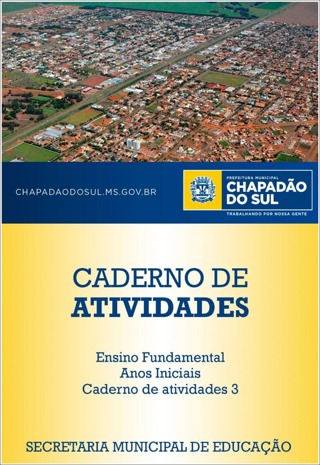 1º ANO 02 1º ANO 1º ANO PREFEITURA MUNICIPAL DE CHAPADÃO DO SUL ESTADO DE MATO GROSSO DO SUL SECRETARIA MUNICIPAL DE EDUCAÇÃO. 2 CADERNO 03 - 1º ANO 1º BIMESTRE Prefeito Municipal: João Carlos Krug Secretário Municipal de Educação: Guerino Perius Queremos receber, você aluno(a), professor(a), profissional da educação, motorista e toda comunidade escolar, com todo amor, carinho, segurança, profissionalismo e humanização. Sem vocês, nossa Rede Municipal de Educação não tem o mesmo brilho, o mesmo conteúdo, o mesmo avanço e as mesmas descobertas e vitórias. Não existem sonhos impossíveis, para aqueles que realmente acreditam que o poder realizador reside no interior de cada ser humano, sempre que alguém descobre esse poder, algo antes considerado impossível, torna-se realidade. A grande escola é o AMOR. As exigências do amor levam a grandes heroísmos. Quando o amor é verdadeiro, o sacrifício não dói. O amor de um professor, de um pai, de um gestor, de todos os profissionais da educação por seu aluno faz estimular como bem próprio aquilo que é mais do que um dever, é uma missão. “Tudo o que você aprende na escola é trabalho de muitas gerações. Receba essa herança, honre-a e acrescente a ela Gratidão e, um dia fielmente deposite-a nas mãos de seus filhos.” Sejam todos(as) bem vindos (as) e façam bom uso desse material, preparado para ajudar na sua aprendizagem, no seu crescimento e no seu desenvolvimento intelectual, psíquico, humano e integral. Guerino Perius Secretário Municipal de Educação PREFEITURA MUNICIPAL DE CHAPADÃO DO SUL ESTADO DE MATO GROSSO DO SUL SECRETARIA MUNICIPAL DE EDUCAÇÃO. 3 CADERNO 03 - 1º ANO 1º BIMESTRE LÍNGUA PORTUGUESA PRESTE ATENÇÃO NA LEITURA. A FADA QUE TINHA IDEIAS 1- RESPONDA AS QUESTÕES DE ACORDO COM O TEXTO. a) PINTE O OBJETO COM QUE A FADA CLARA LUZ FAZIA EXPERIÊNCIAS. b)- CIRCULE A TERCEIRA ASA DO PASSARINHO. c) MARQUE COM UM (X) O MODO COMO A FADA MÃE REAGE. PREFEITURA MUNICIPAL DE CHAPADÃO DO SUL ESTADO DE MATO GROSSO DO SUL SECRETARIA MUNICIPAL DE EDUCAÇÃO. 4 CADERNO 03 - 1º ANO 1º BIMESTRE 2- COPIE AS SÍLABAS. 3- CIRCULE A PALAVRA QUE CORRESPONDE AO DESENHO. DEPOIS COPIE-A 4- FORME PALAVRAS ORDENANDO AS SÍLABAS ABAIXO. 5- COPIE AS SÍLABAS. PREFEITURA MUNICIPAL DE CHAPADÃO DO SUL ESTADO DE MATO GROSSO DO SUL SECRETARIA MUNICIPAL DE EDUCAÇÃO. 5 CADERNO 03 - 1º ANO 1º BIMESTRE 6- DESEMBARALHE AS SÍLABAS PARA FORMAR O NOME DAS FIGURAS 7- COPIE AS PALAVRAS NA COLUNA CERTA. 8- COPIE AS SÍLABAS. 9- JUNTE AS SÍLABAS FORMANDO PALAVRAS. PREFEITURA MUNICIPAL DE CHAPADÃO DO SUL ESTADO DE MATO GROSSO DO SUL SECRETARIA MUNICIPAL DE EDUCAÇÃO. 6 CADERNO 03 - 1º ANO 1º BIMESTRE 10- LEIA E SEPARE AS SÍLABAS DAS PALAVRAS. OBSERVE O MODELO: 11- COPIE AS SÍLABAS. 12- OBSERVE AS FIGURAS, COMPLETE AS PALAVRAS COM LA, LE, LI, LO, LU E, DEPOIS COPIE ABAIXO. PREFEITURA MUNICIPAL DE CHAPADÃO DO SUL ESTADO DE MATO GROSSO DO SUL SECRETARIA MUNICIPAL DE EDUCAÇÃO. 7 CADERNO 03 - 1º ANO 1º BIMESTRE 13- PROCURE NO DIAGRAMA OS NOMES DAS FIGURAS E, DEPOIS, COPIE-AS. 1______________________________________ 4______________________________________ 2______________________________________ 5______________________________________ 3______________________________________ 6______________________________________ 14- PINTE DE AMARELO OS ESPAÇOS ENTRE AS PALAVRAS: 15- LIGUE OS DESENHOS, CUJOS NOMES TERMINAM COM O MESMO SOM, DEPOIS ESCREVA OS NOMES AO LADO. 1_______________________ 2_______________________ 3________________________ 4_________________________ 5_________________________ PREFEITURA MUNICIPAL DE CHAPADÃO DO SUL ESTADO DE MATO GROSSO DO SUL SECRETARIA MUNICIPAL DE EDUCAÇÃO. 8 CADERNO 03 - 1º ANO 1º BIMESTRE FICHA PARA LEITURA VIRTUAL... PREFEITURA MUNICIPAL DE CHAPADÃO DO SUL ESTADO DE MATO GROSSO DO SUL SECRETARIA MUNICIPAL DE EDUCAÇÃO. 9 CADERNO 03 - 1º ANO 1º BIMESTRE MATEMÁTICA QUESTÃO 1. PALOMA GUARDA ALGUNS OBJETOS NA ESTANTE DA SALA. NA PRIMEIRA PRATELEIRA DA ESTANTE, PALOMA GUARDA LIVROS. MARQUE COM UM X OS OBJETOS QUE ESTÃO NA SEGUNDA PRATELEIRA. QUESTÃO 2. A TURMA DO 1º ANO FEZ UM PIQUENIQUE NO PÁTIO DA ESCOLA. OBSERVE OS CACHOS DE BANANA QUE OS ALUNOS LEVARAM. DESENHE UMA LINHA EM VOLTA DOS CACHOS DE BANANA PARA OBTER 24 BANANAS. QUESTÃO 3 LÚCIA COMPROU DUAS GARRAFAS DIFERENTES DE ÁGUA. DEPOIS, ELA DESPEJOU A ÁGUA DAS GARRAFAS EM COPOS IGUAIS. VEJA QUANTOS COPOS CADA GARRAFA ENCHEU, E DESENHE UMA LINHA EM VOLTA DA GARRAFA QUE CABE MAIS ÁGUA. PREFEITURA MUNICIPAL DE CHAPADÃO DO SUL ESTADO DE MATO GROSSO DO SUL SECRETARIA MUNICIPAL DE EDUCAÇÃO. 10 CADERNO 03 - 1º ANO 1º BIMESTRE QUESTÃO 4 PARA JOSÉ, DOS OBJETOS DE HIGIENE PESSOAL ABAIXO, A ESCOVA DE DENTES É O MAIS LEVE. ESCREVA 1, 2 OU 3 PARA ORDENAR OS OBJETOS. O NÚMERO 1 PARA O OBJETO MAIS LEVE, E O NÚMERO 3 PARA O MAIS PESADO. QUESTÃO 5 MARCELA E SUA MÃE VÃO PREPARAR UMA SALADA DE FRUTAS COM MAÇÃ, BANANA E MORANGO. VEJA A QUANTIDADE DE FRUTAS QUE ELAS SELECIONARAM PARA A RECEITA: QUANTAS FRUTAS ELAS ESCOLHERAM? ( A ) 3. ( B )5. ( C )7. ( D )9. PREFEITURA MUNICIPAL DE CHAPADÃO DO SUL ESTADO DE MATO GROSSO DO SUL SECRETARIA MUNICIPAL DE EDUCAÇÃO. 11 CADERNO 03 - 1º ANO 1º BIMESTRE QUESTÃO 6 RAQUEL E SEU PAI VÃO AO PARQUE ANDAR DE BICICLETA. VEJA AS 4 OPÇÕES DE CAMINHO QUE ELES PODEM PERCORRER: QUAL É O TRAJETO MAIS CURTO? ( A ) O CAMINHO A. ( B ) O CAMINHO B. ( C ) O CAMINHO C. ( D ) O CAMINHO D. QUESTÃO 7 ANTÔNIO ADOTOU UMA CADELA E SUA NINHADA EM UM CANIL. A CADELINHA TEM 2 FILHOTES MACHOS E 3 FÊMEAS. QUAL É A QUANTIDADE TOTAL DE CACHORROS QUE ANTÔNIO ADOTOU? ____________________________________________________________________________ PREFEITURA MUNICIPAL DE CHAPADÃO DO SUL ESTADO DE MATO GROSSO DO SUL SECRETARIA MUNICIPAL DE EDUCAÇÃO. 12 CADERNO 03 - 1º ANO 1º BIMESTRE QUESTÃO 8 OBSERVE ABAIXO A ESTANTE DO QUARTO DE GUSTAVO. O BRINQUEDO QUE ESTÁ MAIS PERTO DA BOLA E EM CIMA