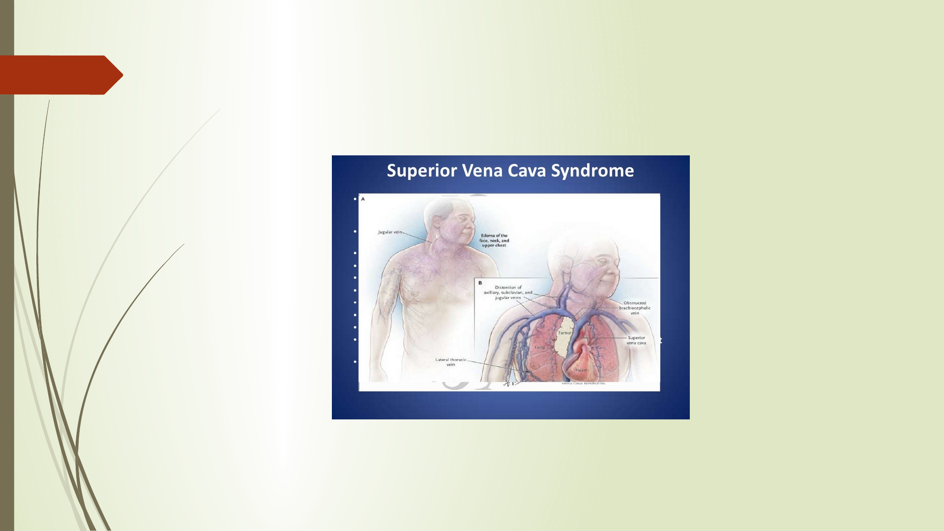 Sindromes mediastínicos Dr. Bruno Fariña Biancotti Universidad Privada Maria Serrana Facultad de Medicina 2.021 Síndrome del mediastino superior: corresponde al síndrome de la vena cava superior y los síndromes dolorosos. Síndrome del mediastino medio: corresponde las manifestaciones respiratorias y el compromiso de los nervios recurrentes y frénicos. Síndrome de mediastino inferior: al síndrome de la vena cava inferior. Síndrome mediastínico posterior: corresponden la disfagia, los dolores radiculares, las manifestaciones simpáticas y de compresión medular El mediastino es una región que puede ser asiento de diversas formaciones tumorales, sólidos o quísticos, benignos o malignos, primitivos o secundarios, verdaderas neoplasias o pseudotumores, por lo tanto plantea problemas en el diagnóstico diferencial. En la actualidad se disponen de muchos métodos complementarios de diagnóstico que ayudan a la distinción de los mismos, sobre todo hay que recalcar la utilidad de los métodos de estudio por imagen. GRACIAS