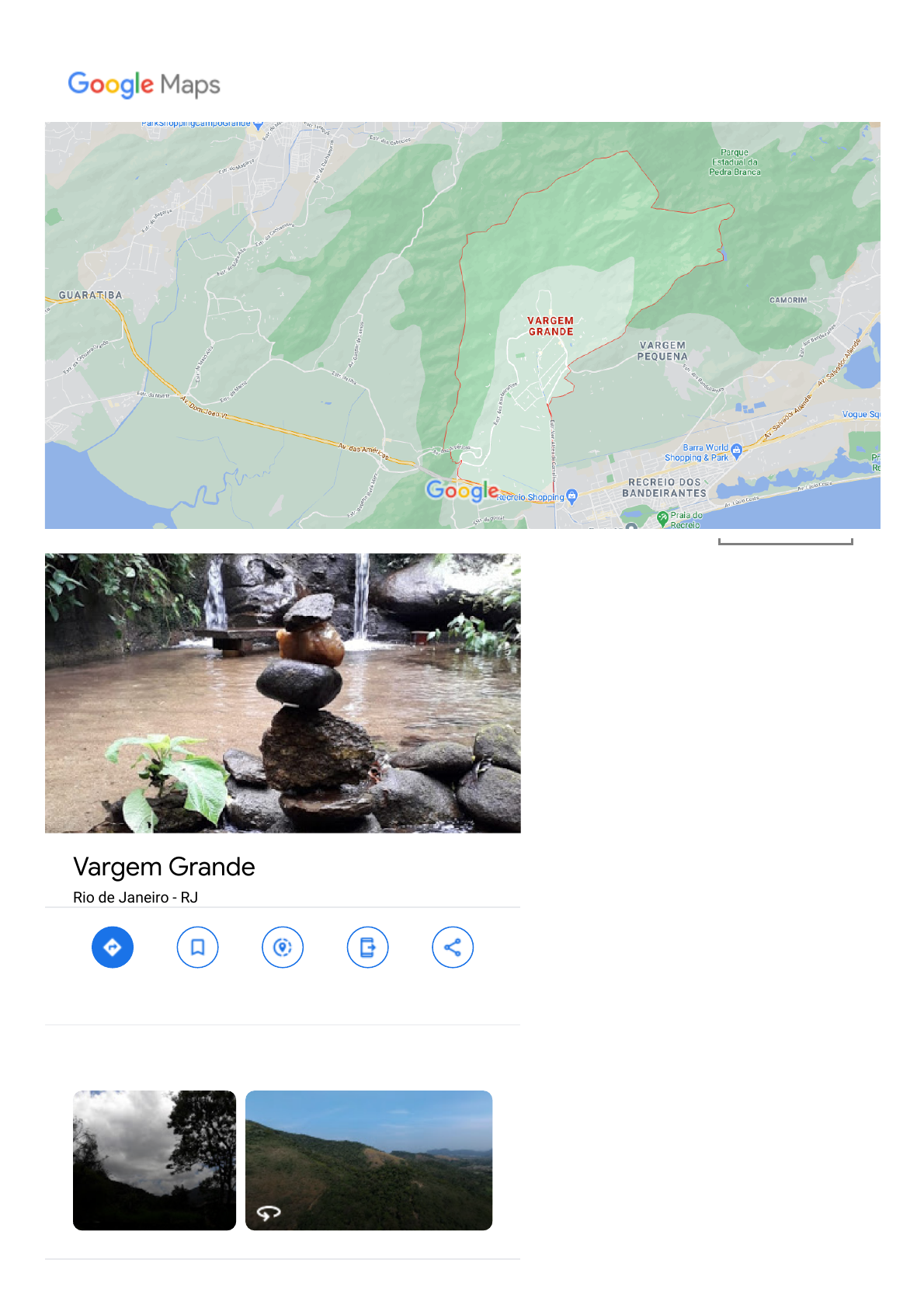 19/12/2020 Vargem Grande - Google Maps https://www.google.com.br/maps/place/Vargem+Grande,+Rio+de+Janeiro+-+RJ/@-22.9762163,-43.5185847,13z/data=!3m1!4b1!4m13!1m7!3m6… 1/3 Dados do mapa ©2020 2 km Vargem Grande Rio de Janeiro - RJ Rotas Salvar Próximo Enviar para smartphone Compartilha r Fotos Fotos Vargem Grande 19/12/2020 Vargem Grande - Google Maps https://www.google.com.br/maps/place/Vargem+Grande,+Rio+de+Janeiro+-+RJ/@-22.9762163,-43.5185847,13z/data=!3m1!4b1!4m13!1m7!3m6… 2/3 Fatos rápidos Vargem Grande é um bairro da Zona Oeste do município do Rio de Janeiro, no Brasil. O ponto culminante do município, o Pico da Pedra Branca, se localiza no seu limite com o bairro de Jacarepaguá. Wikipédia https://pt.wikipedia.org/wiki/Vargem_Grande_(bairro_do_Rio_de_Janeiro) 19/12/2020 Vargem Grande - Google Maps https://www.google.com.br/maps/place/Vargem+Grande,+Rio+de+Janeiro+-+RJ/@-22.9762163,-43.5185847,13z/data=!3m1!4b1!4m13!1m7!3m6… 3/3