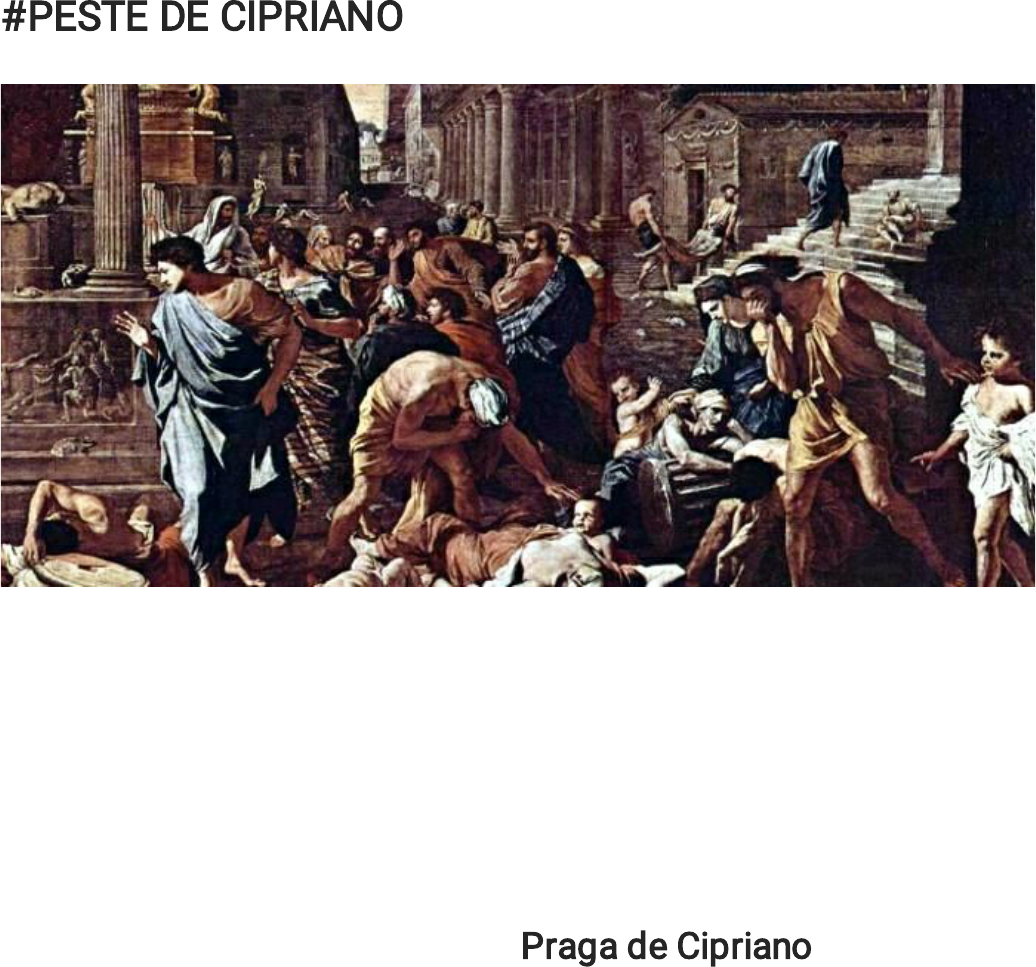 #PESTE DE CIPRIANO PESTE DE CIPRIANO Por Dilson Moreira No contexto da crise que abalou o Império Romano no terceiro século, diversas foram as mazelas que atingiram a população. Uma das mais conhecidas foi a Praga de Cipriano, uma doença que se alastrou facilmente pelo mundo antigo e pode ser interpretada como uma pandemia. Os relatos da época indicam que a praga tenha de disseminado a partir do Egito, região importante para a antiguidade, e conectada com diversas outras localidades, por onde transitavam homens e mulheres, mas também se promoviam inúmeras trocas comerciais e culturais. Chegou à Grécia e à Italia e assolou o Império Romano. A pandemia leva este nome pois foi São Cipriano, um bispo cartaginês, o responsável por deixar registros escritos dessa doença, caracterizando-a. Alguns de seus sintomas eram a fraqueza, o calor, os vômitos constantes e até mesmo as gangrenas. O relato de Cipriano conta que alguns enfermos atingidos pela peste chegavam a perder a audição ou a visão e que o número de mortes em decorrência desta praga era bastante alto. Em cidades muito populosas e expostas à praga os números foram alarmantes. Cipriano relata que, em Roma, a peste matava aproximadamente cinco mil pessoas por dia. Hoje acredita-se que a praga de Cipriano pode ter sido uma expressão de doenças até hoje bastante conhecidas, através de campanhas de conscientização para vacinação, como é o caso da varíola (erradicada mundialmente em 1977) ou o sarampo. A peste não atingia apenas os agricultores e escravos, a população pobre. Ela chegava a todos os níveis e estratos da população, tendo sido responsável pela morte de Cláudio II, imperador romano entre os anos de 268 e 270. Como a peste abateu muita gente e gerou muitas mortes, e como o Império Romano já se encontrava em crise profunda, ela pode ser vista como mais um fator para o contexto pelo qual Roma passava. Perdeu-se muita mão de obra e as mortes eram muito constantes e volumosas. Atualmente os historiadores levantam a possibilidade de esse ter sido ou não um fator importante para o desenvolvimento de uma nova religião, como o cristianismo, que difundia a ideia da vinda de um messias para a Terra, que teria sido Jesus Cristo, e as ideias de salvação para a vida eterna. Entende-se, portanto, que a peste pode ter sido um dos elementos a levar os romanos à conversão para o cristianismo. Nesta época compuseram o cenário de crise os altos cursos para manutenção de um Império territorialmente vasto e também a existência de uma peste que matava um alto número de romanos e escravos diariamente. Com a alta quantidade de mortes até a arrecadação de impostos diminuiu, pois a morte era comum e constante. Até mesmo o exército não conseguiu se manter imune e muitos dos soldados foram abatidos com essa peste. Por Dilson Moreira