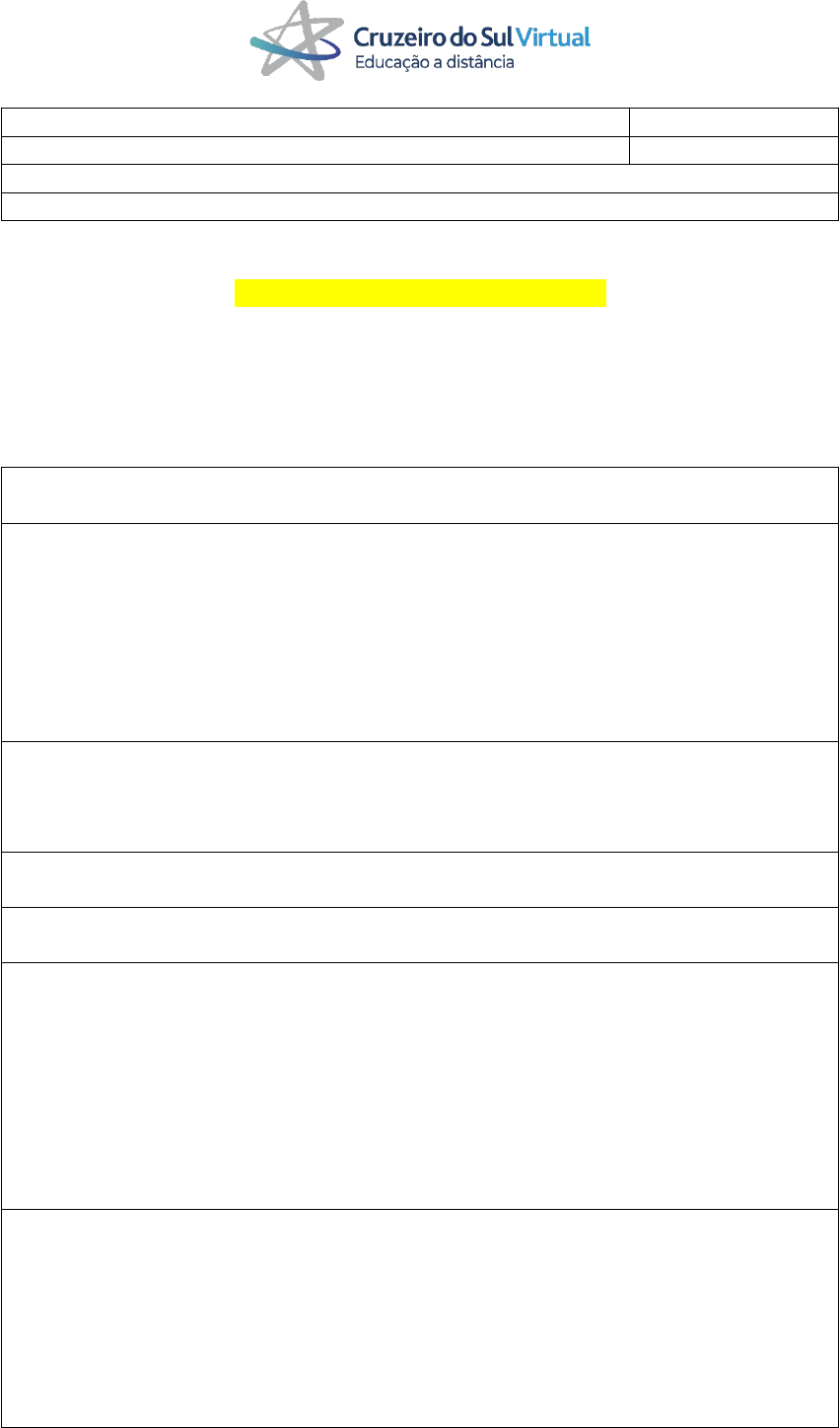 Nome Completo: Rafaela Humer Athanazio RGM: 22595821 Instituição: UNICID Data: 12/11/2020 Curso: Pedagogia Disciplina: Estágio Curricular Supervisionado em Educação Infantil ATIVIDADE 2 – PLANO DE AULA Essa atividade envolve a elaboração de um Plano de Aula, que deve ser elaborado de acordo com as orientações para a elaboração da atividade, que você já deve ter lido antes de iniciar a construção do seu plano de aula. O plano de aula deve conter os seguintes itens: Tema: Dançando (corpo, gestos e movimentos) Objetivo(s): Deslocar seu corpo no espaço, orientando- se por noções como em frente, atrás, no alto, embaixo, fora, etc., ao se envolver em brincadeiras e atividades de diferentes naturezas. Código de acordo com a BNCC: EIO2CG03 Duração: 20 minutos por dia, durante 3 dias Atividades que serão desenvolvidas: Dança, movimentação do corpo Introdução: É através do corpo que as crianças exploram o mundo ao seu redor. Nos movimentamos até mesmo antes do nascimento e, através dos gestos e movimentos as crianças vão aprendendo a se comunicar e se expressar. E assim vão entendendo que o outro também faz parte do mundo ao qual convivem. Os gestos e movimentos contribuem para que as crianças se tornem conscientes dos seus próprios corpos, conhecendo assim seus próprios limites, adquirindo consciência sobre o que é seguro e o que pode ser prejudicial ao seu corpo. Desenvolvimento: O professor colocará as crianças em círculo e ensinar a seguinte música: Cabeça, ombro, joelho e pé Joelho e pé Cabeça, ombro, joelho e pé Joelho e pé Olhos, ouvidos, boca e nariz Cabeça, ombro joelho e pé... Em seguida cantará a música e ensinará a coreografia apontando as partes do corpo correspondentes e convidando as crianças a fazerem o mesmo. Colocará o celular para tocar a música e todos ensaiarão a coreografia durante dias. Fechamento: No quarto dia, as crianças apresentarão a coreografia na presença das demais crianças no pátio da creche. Estratégias: Colocar as crianças em círculo e estimula-las para que façam a coreografia em conjunto. Recursos e materiais necessários: Aparelho celular com conexão à internet ou rádio. Avaliação: Observação Referências: http://basenacionalcomum.mec.gov.br/abase https://educacaoinfantil.aix.com.br/corpo-gestos-e-movimentos/
