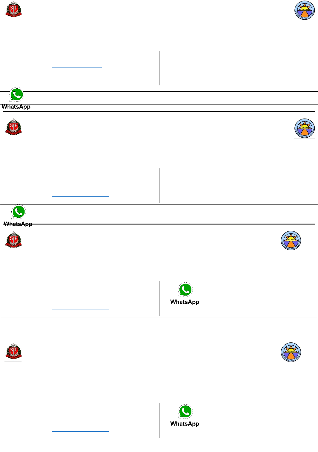 PROATEC 2021 - PROJETO DE APOIO A TECNOLOGIA E INOVAÇÃO Diretoria Leste 3 – E.E. “Dep. Geraldino dos Santos” Login para acesso dos APLICATIVOS ALUNO:______________________________________________________________________________________________________ Turma: ______________ RA via SED _________________________________ SP e sua senha___________________________ via CMSP APP (RA e dígito separado) e senha a utilizada na SED via CMSP WEB (RA e dígito separado) e senha disponível no app do CMSP E-mail Institucional via Google: 0000 (RA + dígito junto) sp@al.educacao.sp.gov.br via Microsoft: 0000 (RA + dígito junto) sp@aluno.educacao.sp.gov.br PROATEC Ângela (11) 98455 – 4297 Eduardo (11) 94914 – 9419 Emília (11) 98773 – 1930 Michele (11) 99114 - 7323 Anos Iniciais: Acessar e acompanhar as aulas do CMSP e realizar as tarefas do CMSP Anos Finais / Ensino Médio: Acessar e acompanhar as aulas do CMSP e realizar as tarefas do CMSP e atividades Classroom. PROATEC 2021 – PROJETO DE APOIO A TECNOLOGIA E INOVAÇÃO Diretoria Leste 3 – E.E. “Dep. Geraldino dos Santos” Login para acesso dos APLICATIVOS ALUNO:____________________________________________________________________________________________________ Turma: ______________ RA via SED _________________________________ SP e sua senha___________________________ via CMSP APP (RA e dígito separado) e senha a utilizada na SED via CMSP WEB (RA e dígito separado) e senha disponível no app do CMSP E-mail Institucional via Google: 0000 (RA + dígito junto) sp@al.educacao.sp.gov.br via Microsoft: 0000 (RA + dígito junto) sp@aluno.educacao.sp.gov.br PROATEC Ângela (11) 98455 – 4297 Eduardo (11) 94914 – 9419 Emília (11) 98773 – 1930 Michele (11) 99114 – 7323 Anos Iniciais: Acessar e acompanhar as aulas do CMSP e realizar as tarefas do CMSP Anos Finais / Ensino Médio: Acessar e acompanhar as aulas do CMSP e realizar as tarefas do CMSP e atividades Classroom. PROATEC 2021 – PROJETO DE APOIO A TECNOLOGIA E INOVAÇÃO Diretoria Leste 3 – E.E. “Dep. Geraldino dos Santos” Login para acesso dos APLICATIVOS ALUNO:__________________________________________________________________________________________________ Turma: ______________ RA via SED _________________________________ SP e sua senha___________________________ via CMSP APP (RA e dígito separado) e senha a utilizada na SED via CMSP WEB (RA e dígito separado) e senha disponível no app do CMSP E-mail Institucional via Google: 0000 (RA + dígito junto) sp@al.educacao.sp.gov.br via Microsoft: 0000 (RA + dígito junto) sp@aluno.educacao.sp.gov.br PROATEC Ângela (11) 98455 – 4297 Eduardo (11) 94914 – 9419 Emília (11) 98773 – 1930 Michele (11) 99114 – 7323 Anos Iniciais: Acessar e acompanhar as aulas do CMSP e realizar as tarefas do CMSP Anos Finais / Ensino Médio: Acessar e acompanhar as aulas do CMSP e realizar as tarefas do CMSP e atividades Classroom. _________________________________________________________________________________________________________________________ PROATEC 2021 - PROJETO DE APOIO A TECNOLOGIA E INOVAÇÃO Diretoria Leste 3 – E.E. “Dep. Geraldino dos Santos” ALUNO:__________________________________________________________________________________________________ Turma: ______________ Login para acesso dos APLICATIVOS RA via SED _________________________________ SP e sua senha___________________________ via CMSP APP (RA e dígito separado) e senha a utilizada na SED via CMSP WEB (RA e dígito separado) e senha disponível no app do CMSP E-mail Institucional via Google: 0000 (RA + dígito junto) sp@al.educacao.sp.gov.br via Microsoft: 0000 (RA + dígito junto) sp@aluno.educacao.sp.gov.br PROATEC Ângela (11) 98455 – 4297 Eduardo (11) 94914 – 9419 Emília (11) 98773 – 1930 Michele (11) 99114 - 7323 Anos Iniciais: Acessar e acompanhar as aulas do CMSP e realizar as tarefas do CMSP Anos Finais / Ensino Médio: Acessar e acompanhar as aulas do CMSP e realizar as tarefas do CMSP e atividades Classroom.
