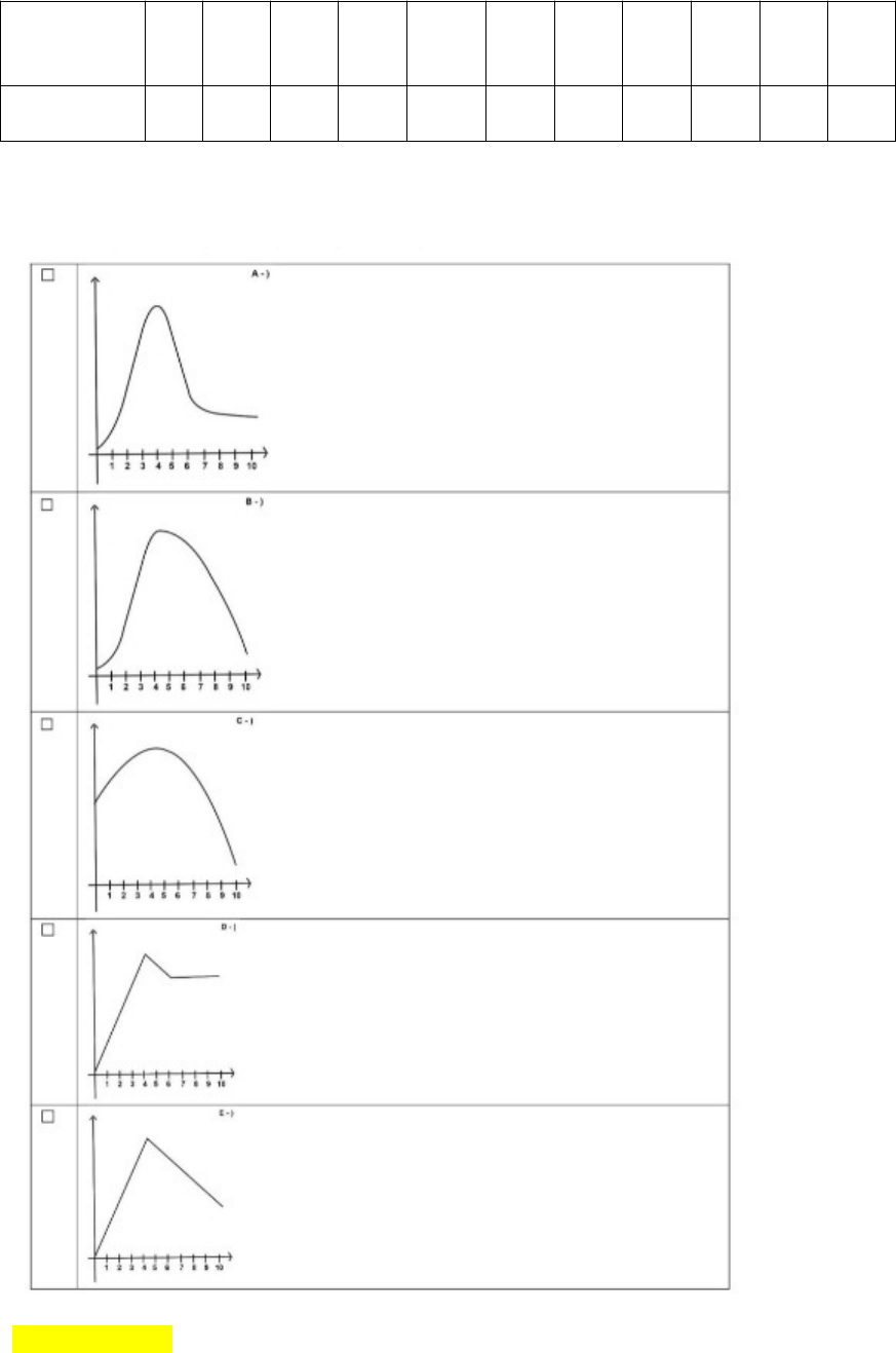 A tabela abaixo mostra o comportamento de uma variável y em função do tempo. Tempo(horas ) 0 1 2 3 4 5 6 7 8 9 10 Y 359 1539 4353 8123 10000 8123 4353 2993 2741 2653 2612 O gráfico que melhor representa y em função do tempo, em horas é: Resposta: letra A Os faturamentos nos quatro trimestres do ano passado foram 50mil, 20mil, 80 mil e 150 mil, respectivamente. A tabela a seguir mostra as porcentagens do faturamento provenientes de cada tipo de negócio. Trimestre 1 2 3 4 Consultoria 62% 10% 80% 90% Investimentos 38% 90% 20% 10% O trimestre com o segundo maior faturamento em investimento e o trimestre com o segundo maior faturamento em consultoria foram, respectivamente: A) 1º e 2º B) 1º e 3º C) 1º e 4º D) 2º e 3º E) 2º e 4º Resposta: Trimestre 1 2 3 4 Consultoria 31mil 2 mil 64 mil 135 mil Investimentos 19 mil 18 mil 16 mil 15 mil Considere a seguinte sequência de declarações, todas verdadeiras. I. Se o tempo estiver bom, então Célia e Ana irão à praia. II. Se Célia e Ana forem juntas à praia, então Ricardo ficará sozinho. III. Se Ricardo ficar sozinho, então a festa será na casa dele. Sabe-se que a festa Não foi na casa de Ricardo. Nessas condições, dentre as declarações a seguir, todas relacionadas às três anteriores, a única que NÃO é NECESSARIAMENTE verdadeira é: A - Ricardo não ficou sozinho B - Célia não foi a praia C - O Tempo não estava bom D - Célia e Ana não foram juntas a praia E - Havia alguém com Ricardo ou o tempo não estava bom Observe na tabela o consumo de energia elétrica de uma casa em 24 meses consecutivos. O número total de erros cometidos pelo garoto é igual a: a) 1 b) 2 c) 3 d) 4 e) 5 A partir das figuras, pode-se concluir que o valor indicado por X é: a) 45 b) 60 c) 75 d) 90 e) 105 Resposta: 1+2*3=9 1+2+3*4=24 1+2+3+4*5= 50 1+2+3+4+5*6=90 As aulas de pintura de Aline ocorrem toda quarta-feira, independente de ser feriado ou época de férias. Aline, que nunca faltou a nenhuma aula de pintura, fez dois trabalhos por aula até completar dois anos de curso. Desde então, tem feito três trabalhos por aula. Sabendo que a primeira aula de pintura de Aline ocorreu há exatamente 1000 dias, pode-se concluir que o número de trabalhos já realizados por ela é igual a: A) 322 B) 327 C) 355 D) 358 E) 428 1000 dias – 365*2 = 730 dias (dois trabalhos por dias) 270 dias – 3 trabalhos por quarta-feira 730/7dias = 104(semanas) – 208 270/7 = 38*3 semanas – 114 trabalhos São dadas a seguir duas imagens de uma peça esculpida por um artesão sendo uma vista de cima e outra de frente da escultura. A tabela abaixa traz projeções feitas pela ONU 2003 sobre o numero de habitantes das seis maiores cidades do mundo. O preço de um álbum de figurinhas vazio é R$5,00 e o de um pacote com 6 figurinhas é R$0,80. No álbum existem 250 posições, uma para cada uma das 250 figurinhas diferentes a serem coladas. Se, ao longo de todo o processo de coleção, em média duas figurinhas por pacote são repetidas, então o valor mais aproximado que uma pessoa irá gastar para ter um álbum completo (sem trocar as figurinhas repetidas) é: a) 55,40 b) 65,80 c) 75,20 d) 85,40 e) 95,80 Ana, Beatriz e Claudia estão sentadas ao redor de uma mesa circular organizando uma festa para comemorar conjuntamente o aniversário das três. Uma das moças é carioca, outra gaúcha e a outra paulista. Cada uma delas passou para a pessoa a sua direita uma lista que elaborou para a organização da festa. Beatriz passou à carioca a lista dos possíveis locais para a festa. Ana passou a lista dos convidados à pessoa que passou uma lista à paulista. É correto concluir que: a) Ana é paulista b) Beatriz é carioca. c) Claudia é paulista d) Beatriz é gaúcha e) Claudia é gaúcha.