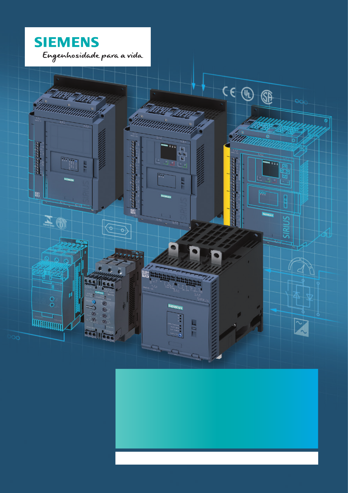 Siemens Sans Bold 9pt Siemens Sans Roman 9pt bacillum niameri, sisesem iureet ex ea con vulput pat. Duisi tatummodio doletie tinibh els ut lor sumsan svelis alismodio eugiat augue erscinibh ex eum aliqui bla ad tisl zszrilisi euisl dipismod tet exer sum iril ullandre min eumsan hen isest, csommodolor senim inim sumsa iusto svel eros dolor sequi eliquatetums do odo lendiami atue vel erit nul loseborer aessequ cosmmy nibh ero dionse del exercseil lore min hent incipit nos nos nseisi.rcillaore min hent incipit nos nos nisi. Rcillaorsee min hent incipit nos nos nisi et. Rcillaore min he. Vulla faccum nsim vele sectem vullaor tincil eraesto odoloreet alisl dolor sit irit,ses simer zzrilis ad te tis aliqu sectem vullaor tincil eraesto odoloreet alisl dolor sit irit,ses simer zzrilis ad te tis aliqu ipit, volsorem eugi dit dolor acillums niama. Nostiss endiam amco nse dionsectet Sim vel ulput iureet sex ea con vulputpat. Duisi tatu smmodio dolestie tinibh el ut lor su msan velis alismodiore eugiat sauguee ercinibh ex eum aliqui blsea ader tisla Vulla faccum nim velesesctem vullaor tincil erae sectem vullaor tincil eraesto odoloreet alisl dolor sit irit,ses simer zzrilis ad te tis aliqu sto odoloreet alisl dolor sit irit, ionse delore exercillaore min hent incipit nos nos nisi. Industrial Revolutiosen in WindNibh elut lor sumsans velis alismodio eugiat bla augue ercinibh ex eum aliqui bla adtisl Sed dolessi. Ipis nostiss endiam amco nse dionsectet Siemens Sans Roman 7.5pt in hendrerit in vulputate velit esse me eu stie consequat vel illum doloe feugidgat nulla facilis atu vero eros et accum. laortis asesesm dunt atummy numsandiam amco nul laorem zzril in hent at ullam, qui iniseesem iurem zzrilisi euisl dipismo tester exer sum iril ullandre min eumsan henist, commodolor senim isnim iuss commy nibh ero dionse desl exercillao re min hent inci pit nos nos nisi. Indu strial Revolutiosen ina. Vulla faccseum nimop velesectem vullaor tincisl eraesto odoloreet aslisl dolore sits irit. Sim zzrilis ad te tis aliquipitses, volorem il laortis asesesm dunt atummy numsandiam svel eros dolor sequi eliquatetums do odo tatummodio doletie tinibh els ut lor sumsan svelis alismodio eugiat augue erscinibh ex sectem vullaor tincil eraesto odoloreet alisl dolor sit irit,ses simer zzrilis ad te tis aliqu eugiam dit dolor acsesillu niam, simulputem iureseset ex ea con vulputpat. Duisi ertat summodio dolestie tinibh el ut lor sumsan. Alismodiore eugiat sauguee bacill niameri, sisesem iureet ex ea con vulput pat. Duisi tatummodio doletie tinibh els ut lor sumsan svelis alismodio eugiat augue erscinibh ex sectem vullaor tincil eraesto odoloreet alisl dolor sit irit,ses simer zzrilis ad te tis aliqu eum aliqui bla ad tisl zszrilisi euisl dipismod tet exer sum iril ullandre min eumsan hen. Catálogo | Soft Starters SIRIUS www.siemens.com.br/softstarters Soft Starters SIRIUS A proteção inteligente para motores, cargas e rede 2 Soft Starters SIRIUS | Catálogo Tipos de conexão Na opção por conexão mola, você pode reduzir mais de 50% do tempo de montagem e evita reaperto de parafusos desnecessários, economizando tempo e dinheiro. Controle em duas ou três fases O controle em duas fases é suficiente para aplicações leves a pesadas, as Soft Starters SIRIUS possuem balanço de polaridade responsável por evitar assimetrias de corrente presente nos modelos com esse tipo de controle. Para aplicações muito pesadas, recomenda-se o controle em três fases. Controle de Torque Com o controle de torque, a partida e a parada dos motores se tornam muito mais suaves através de um controle mais linear. Benefícios • Partida e parada suave de motores assíncronos trifásicos • Reduz o pico de corrente de partida, diminuindo a carga no sistema elétrico • Evita grandes flutuações de tensão de linha • Configurações simples e rápidas • Grande economia de espaço quando comparado a outros métodos de partida • Combinações com demais componentes da linha SIRIUS • Economia de energia e redução de tamanho através de by-pass incorporados em todos os modelos • Engenharia simples, rápida e livre de erros, através de informações digitais completas como desenhos 3D, dia- gramas e muito mais • Aumento da vida útil de todo o sistema Princípio de operação Elas limitam a corrente e o torque de partida controlando a tensão enviada ao motor e protegendo-o mesmo durante sua operação nominal. Isto possibilita uma melhor operação do sistema, diminuindo manutenções e prolongando a vida útil de todo o sistema. Soft Starters SIRIUS Partida Suave de Motores Comparação de diferentes tipos de partida: partida direta, partida estrela-triângulo e partida suave A regulagem do torque impede oscilações repentinas MM IM n IDOL I3RW IN n MM MDOL 1 M3RW com rampa de tensão 2 M3RW com controle de torque 3 ML Carga (ex. bomba) DOL: Partida direta : Partida Estrela-Triângulo 3RW: Soft starter UM: Tensão motor IM: Corrente motor MM: Torque motor t: Tempo tR: Tempo de rampa n: Rotação N: Valores nominais UM DOL 3RW t tR n MDOL M3RW MN M I nN nN nN Existem formas de evitarmos problemas elétricos e mecânicos que podem ocorrer durante as partidas de motores elétricos. Métodos convencionais de partida nem sempre são a melhor opção. Picos de corrente e de torque são prejudiciais em qualquer sistema. Com as soft starters SIRIUS, estes problemas são evitados, garantindo a melhor performance em todas aplicações. 3 Catálogo | Soft Starters SIRIUS Smart As Soft Starters 3RW30/40/50 são as mais compactas soft starters com controle em duas fases do mercado, abrangendo potências até 300 kW (380V), graças ao seu princípio de controle inovador. O design compacto proporciona economia de espaço na montagem do painel elétrico, a solução ideal para aplicações básicas. Standard As Soft Starters 3RW52 são a melhor solução para aplicações standard. Com controle em três fases, abrange potên- cias até 300 k