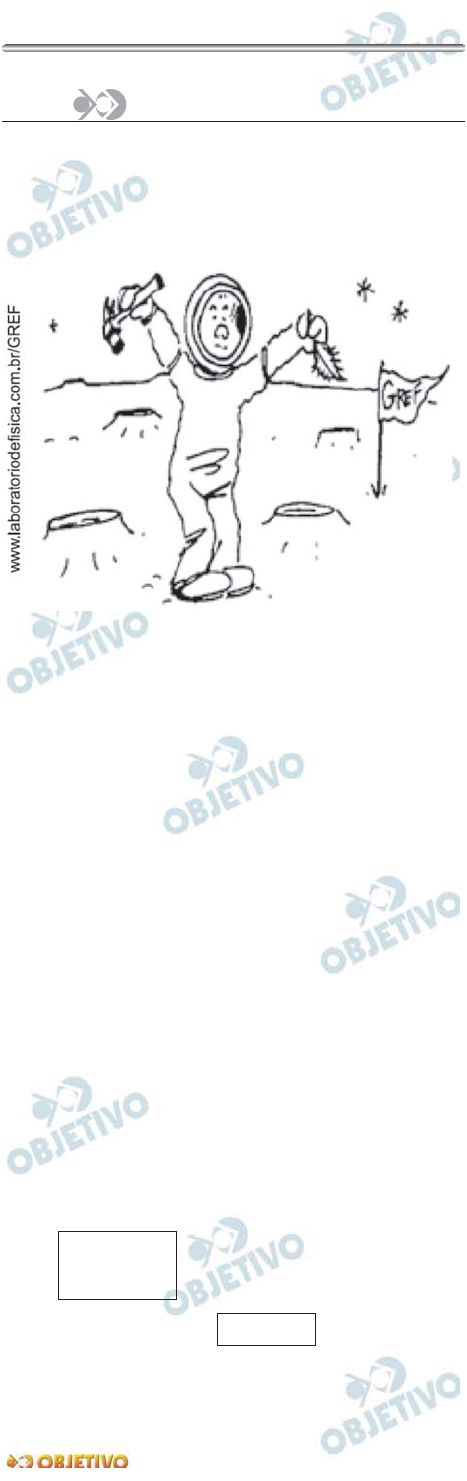 FFÍÍSSIICCAA 11 Em julho de 2009 comemoramos os 40 anos da primeira viagem tripulada à Lua. Suponha que você é um astronauta e que, chegando à superfície lunar, resolva fazer algumas brincadeiras para testar seus conhecimentos de Física. a) Você lança uma pequena bolinha, verticalmente para cima, com velocidade inicial v0 igual a 8 m/s. Calcule a altura máxima h atingida pela bolinha, medida a partir da altura do lançamento, e o intervalo de tempo Δt que ela demora para subir e descer, retornando à altura inicial. b) Na Terra, você havia soltado de uma mesma altura inicial um martelo e uma pena, tendo observado que o martelo alcançava primeiro o solo. Decide então fazer o mesmo experimento na superfície da Lua, imitando o astronauta David Randolph Scott durante a missão Apollo 15, em 1971. O resultado é o mesmo que o observado na Terra? Explique o porquê. Dados: • Considere a aceleração da gravidade na Lua como sendo 1,6 m/s2. • Nos seus cálculos mantenha somente 1 (uma) casa após a vírgula. Resolução a) 1) Cálculo da altura máxima: V2 = V0 2 + 2γΔs (MUV) ↑ � 0 = V0 2 + 2 (–g) h h = (m) ⇒ 2) Cálculo do tempo de voo: V = V0 + γ t (MUV) ↑ � h = 20m(8) 2 ––––– 2 . 1,6 V0 2 h = –––– 2g UUFFSSCCAARR ((22ºº DDiiaa )) –– DDEEZZEEMMBBRROO//22000099 –8 = 8 – 1,6T 1,6T = 16 b) Na Terra, existe a força de resistência do ar que afeta mais o movimento da pena (mais leve) e por isso o martelo atinge o solo antes. Como na Lua não há atmosfera, a pena e o mar - telo caem com aceleração igual à da gravidade lunar e atingem o solo no mesmo instante. Observação: No item (a), embora haja orientação para usar uma casa decimal após a vírgula, isto não foi feito, respei - tando-se a quantidade de algarismos signi ficativos. Poderíamos dar a resposta com notação científica: h = 2,0 . 101m e T = 1,0 . 101s T = 10s UUFFSSCCAARR ((22ºº DDiiaa )) –– DDEEZZEEMMBBRROO//22000099 12 Estima-se que hoje em dia o Brasil tenha cerca de 160 mi lhões de telefones celulares em operação. Esses aparelhos tão populares utilizam a radiação na frequência das micro-ondas para enviar e receber as informações das chamadas telefônicas. a) A empresa Darkness de telefonia opera a uma frequência de 850 MHz. Calcule o comprimento de onda λ utilizado pela operadora de telefonia, sabendo que as ondas eletromagnéticas se propagam com a velocidade da luz (c = 3,0 × 108 m/s). b) Considere um aparelho celular que emite 1 W de potência quando em funcionamento. Um grupo de pesquisadores deseja estudar o quanto esse aparelho celular provoca de aquecimento na cabeça dos seus usuários. Para tanto, realizam uma simulação num laboratório: enchem uma bexiga de festa, de massa desprezível, com um dado líquido, tal que o conjunto (bexiga+líquido) tenha massa de 2 kg. Em seguida, ligam o telefone celular, encostado no conjunto, pelo tempo total de 9 minutos. Faça uma estimativa da elevação da temperatura do conjunto, após esse intervalo de tempo, considerando que a potência emitida pelo aparelho celular seja absorvida pelo conjunto. Dado: O calor específico do líquido utilizado na simu - lação é de 3,6 J/(g · ºC). Resolução a) Pela relação fundamental da ondulatória, V = λf, tem-se: c = λf ⇒ 3,0 . 108 = λ . 850 . 106 Da qual: b) A energia eletromagnética emanada do telefone celular será transformada em energia térmica que provocará aquecimento da água. (I) P = ⇒ 1 = ⇒ (II) Q = Ee� ⇒ mcΔθ = Ee� 2 . 103 . 3,6 . Δθ = 5,4 . 102 ⇒ Respostas: a) Aproximadamente 35cm b) 7,5 . 10–2°C λ � 0,35m = 35cm Δθ = 0,075°C Ee� = 5,4 . 10 2J Ee� –––– 9. 60 Ee� –––– Δt UUFFSSCCAARR ((22ºº DDiiaa )) –– DDEEZZEEMMBBRROO//22000099 13 As lâmpadas incandescentes foram inventadas há cerca de 140 anos, apresentando hoje em dia praticamente as mesmas características físicas dos protótipos iniciais. Esses importantes dispositivos elétricos da vida moderna constituem-se de um filamento metálico envolto por uma cápsula de vidro. Quando o filamento é atravessado por uma corrente elétrica, se aquece e passa a brilhar. Para evitar o desgaste do filamento condutor, o interior da cápsula de vidro é preenchido com um gás inerte, como argônio ou criptônio. a) O gráfico apresenta o comportamento da resistividade do tungstênio em função da temperatura. Considere uma lâmpada incandescente cujo filamento de tungstênio, em funcionamento, possui uma seção transversal de 1,6 × 10–2 mm2 e comprimento de 2 m. Calcule qual a resistência elétrica R do filamento de tungstênio quando a lâmpada está operando a uma temperatura de 3 000°C. b) Faça uma estimativa da variação volumétrica do filamento de tungstênio quando a lâmpada é desligada e o filamento atinge a temperatura ambiente de 20°C. Explicite se o material sofreu contração ou dilatação. Dado: O coeficiente de dilatação volumétrica do tungs - tênio é 12 × 10–6 (ºC)–1. Resolução a) A resistência elétrica R do filamento de tungstênio é determinada pela 2.a Lei de Ohm: R = ρ O valor da resistividade (ρ) do filamento é obtido do gráfico. Assim, para uma temperatura de 3000°C, temos: ρ = 8,0 . 10–7Ωm Portanto, após transformar a área de 1,6 . 10–2mm2 para 1,6 . 10–8m2, vem: R = 8,0 . 10–7 (Ω)⇒ b) No resfriamento de 3000°C para 20°C, o filamento sofrerá uma contração térmica dada por: ΔV = V0 γ Δθ Assim: ΔV = 2 . 1,6 . 10–8 . 12 . 10–6 . (20 – 3000) (m3) 7,7 2850 2900 2950 3000 3050 3100 2150 7,8 7,9 8,0 8,1 8,2 8,3 8,4 R e s is ti v id a d e d e u m f ila m e n to d e t u n g s tê n io (1 0 .m ) � � -7 T (ºC) L ––– A R = 100Ω2––––––––– 1,6 . 10–8 UUFFSSCCAARR ((22ºº DDiiaa )) –– DDEEZZEEMMBBRROO//22000099 ΔV ≅ –1,1 . 10–9m3 O sinal negativo confirma a contração térmica. Respostas: a) 100 Ω b) 1,1 . 10–9m3
