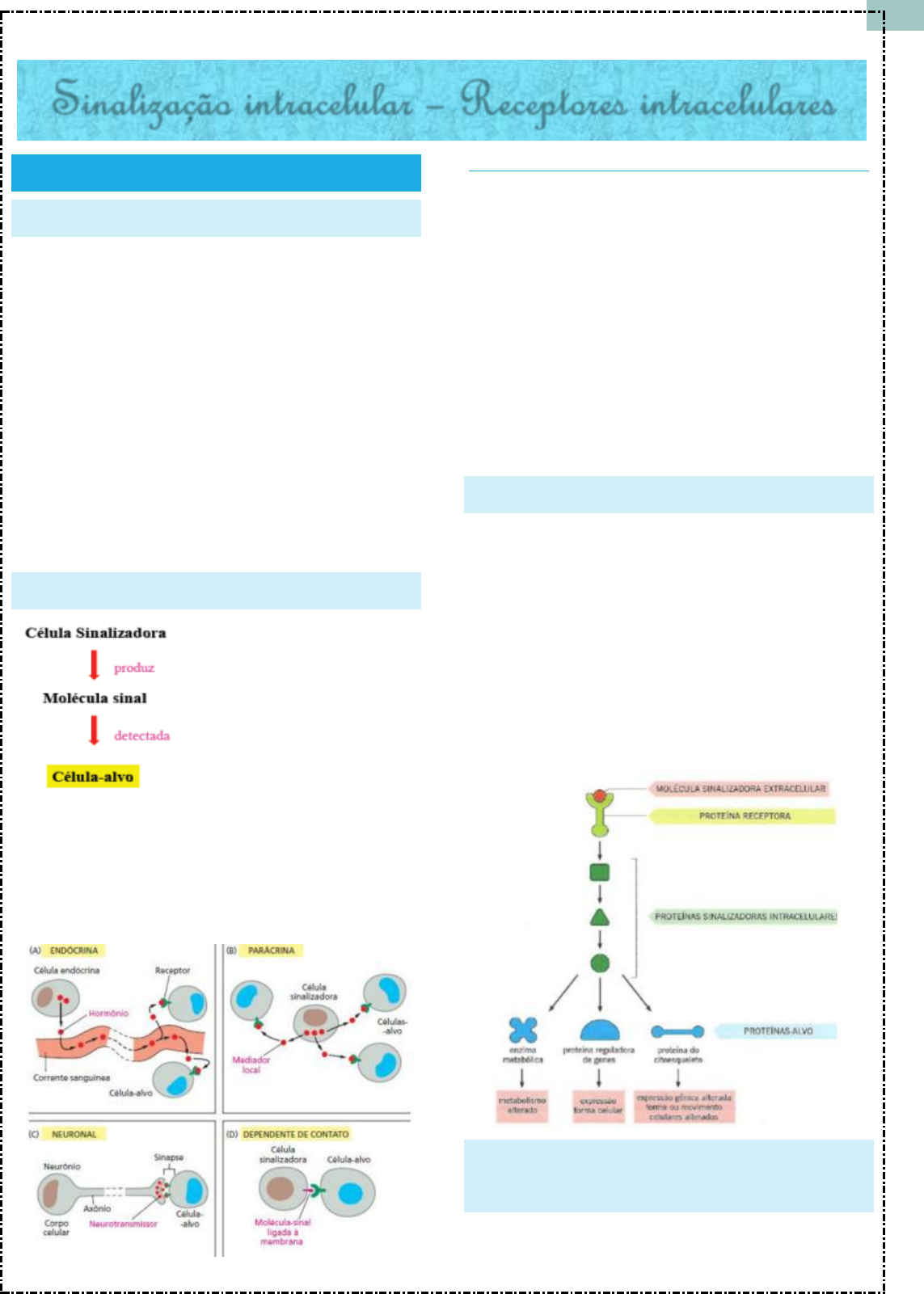 1 Beatriz Machado de Almeida BMC – Aula 6 Vias de sinalização do NO Prêmio Nobel da medicina A descoberta das funções do NO em 1980 surpreendeu a comunidade científica. O NO foi nomeado a "Molécula do Ano" em 1992 pela Science, foi fundada a Nitric Oxide Society e foi criada uma revista científica só para estudos relacionados com esta molécula. O Prêmio Nobel em Fisiologia e Medicina em 1998 foi atribuído a Ferid Murad, a Robert F. Furchgott e a Louis Ignarro pela descoberta das propriedades sinalizadoras do óxido nítrico. Estima-se que cerca de 3,000 artigos científicos são publicados por ano sobre o papel fisiológico do óxido nítrico. Comunicação entre as células A comunicação entre as células ocorre da seguinte forma: Existe uma célula sinalizadora que vai produzir uma molécula sinal e essa será reconhecida pela célula-alvo. Então a resposta da célula- alvo depende da molécula sinal. Nesta aula, a célula sinalizadora será a célula endotelial que produz o óxido nítrico (molécula sinal), sendo detectado pela célula da musculatura lisa (célula-alvo). TIPOS DE SINALIZAÇÃO • Endócrina: Sendo a célula sinalizadora a célula endócrina, que produz um hormônio (molécula sinal) e será reconhecida por uma célula-alvo distante. • Neuronal: Depende do neurônio. • De contato: A molécula sinal é expressa na membrana, por isso é necessário o contato. • Parácrina: A célula sinalizadora produz uma molécula sinal (chamado de mediador local) que é reconhecida por células-alvo que estão próximas. Resposta da célula Sinais extracelulares alteram a atividade de uma grande variedade de proteínas celulares e mudam o comportamento da célula. • A resposta da célula ao se ligar a uma molécula sinalizadora gera uma cascata de sinalização, onde uma molécula vai ativando as seguintes, até que a molécula final seja ativada, uma proteína quinase (PKA e PKC). • As proteínas quinases geram a resposta final. As cascatas de sinalização Possuem várias funções Transdução primária Transmissão. Modulação por outros fatores. Amplificação. Divergência para alvos múltiplos. Sinalização intracelular – Receptores intracelulares 2 Beatriz Machado de Almeida BMC – Aula 6 Os sinais extracelulares podem agir de modo lento ou rápido na mudança de comportamento da célula-alvo. Rápido (< segundos a minutos). Lento (minutos a horas). • A sinalização celular ocorre em nível do citosol, sendo rápida. • Quando a sinalização é para produção de alguma proteína o sinal precisa entrar e induzir a transcrição do DNA, sendo lenta. Moléculas sinalizadoras extracelulares pertencem, em geral, a duas classes • A grande maioria das moléculas sinalizadoras são do tipo A. • Essas moléculas se ligam a receptores de membrana (Ionotrópicos, enzimáticos e metabotrópicos). • Temos receptores dentro da celula, pois existem moléculas que atravessam livremente a membrana plasmática. Transdução de sinal a partir do GMPC • Guanilato ciclase é citosólica ou associada ao ANF – R (receptor para o fator natriurético atrial) • Forma um dímero e se liga ao NO • Importante para a contratilidade muscular, transdução de sinal visual e homeostase sanguínea. • A célula endotelial produz o NO após receber um sinal colinérgico (acetilcolina). • Receptores ionotrópicos e metabotrópicos possuem afinidade com a acetilcolina, sendo o metabotrópico presente na célula endotelial. Sinalização via óxido nítrico (NO) • O óxido nítrico é produzido pela célula endotelial, faz difusão simples e entra na musculatura lisa. Na musculatura lisa ele promove o relaxamento. • Na imagem: Temos o receptor muscarínico da acetilcolina que ativa uma via G, essa via ativa uma enzima de membrana que se chama PLC. Essa PLC degrada o fosfolipídio em DAG e IP3. O IP3 vai no reticulo plasmático rugoso, abre os canais de cálcio e entra no citosol. • O cálcio se liga a calmodolina, ativando uma enzima que se chama Sintase de ON (inativa), no qual produz o oxido nítrico a partir da arginina. • No músculo, o ON vai se ligar a um receptor (guanilil ciclase). Está enzima ativada pelo ON pega o GTP e converte em cGMP. Este ativa o PKG e promove o relaxamento da musculatura lisa. • Lembrando que o PKG atua para o cálcio não entrar na célula. São propostos vários mecanismos para explicar a atividade relaxante resultante de um aumento nos níveis de GMPc induzido pelo NO. MUSCULATURA LISA. Estes incluem: • Inibição da geração de IP3; • Aumento do sequestro de Ca2+citossólico; • Desfosforilação da cadeia leve da miosina; • Inibição do influxo de Ca2+; • Ativação de proteínas quinases; 3 Beatriz Machado de Almeida BMC – Aula 6 • Estimulação da Ca2+ - ATPase de membrana; • Abertura de canais para K+. • Para encerrar o sinal do relaxamento, precisamos retirar o sinal do cGMP. A enzima que degrada o cGMP e encerra esse ciclo é a fofodiesterase. NOS – Óxido nítrico - sintase: produz óxido nítrico a partir da desaminação do aminoácido arginina. Tipos: • eNOS: células endotelias (ativadapor Ca2+) • nNOS: células nervosas e musculares (ativada por Ca2+) • iNOS: macrófagos (ativado em resposta a uma infecção) Isoformas do óxido nítrico sintase Papel da fosfodiesterase • A fosfodiesterase quebra a ligação cíclica, transformando o GMP cíclico em GMP. Papel do sildenafil (viagra) É inibidor de fosfodiesterase, fazendo com que o cGPM permaneça na célula e o relaxamento continue melhorando assim a ereção. Fosfodiesterases • A PDE8 apesar de atuar no cGMP, a resposta ocorre apenas na retina, sendo assim descartada quando o foco seja a ereção. • A PDE5 é utilizada nos medicamentos para ereção, por atuar em inúmeros tecidos. Resumindo Ativação da produção de NO por ACH Temos o receptor muscarínico da acetilcolina que ativa uma via G, essa via ativa uma e