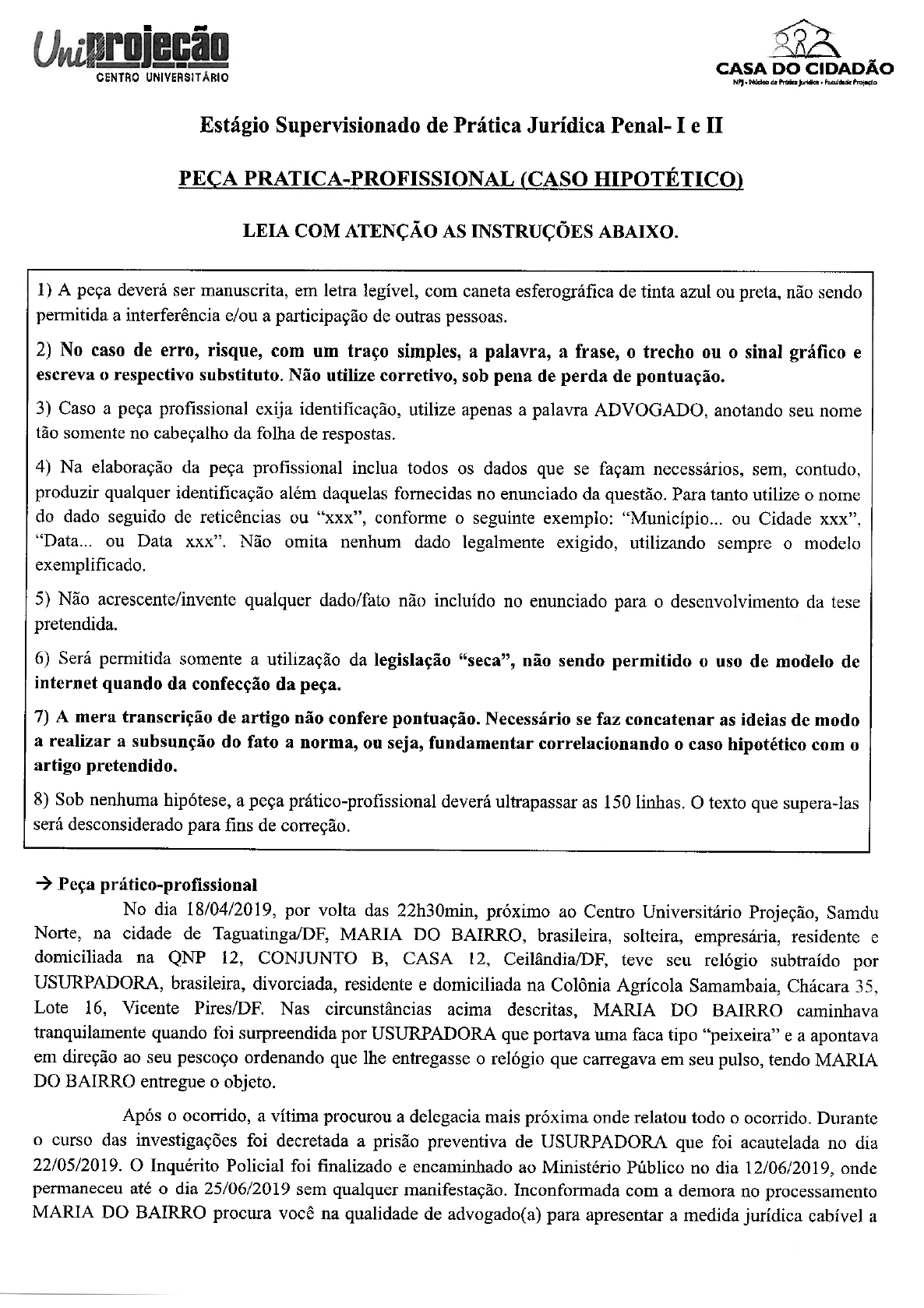 8) Sob nenhuma hipótese, a peça prático-proñssional deverá ultrapassar as 150 linhas. O texto que supera-las