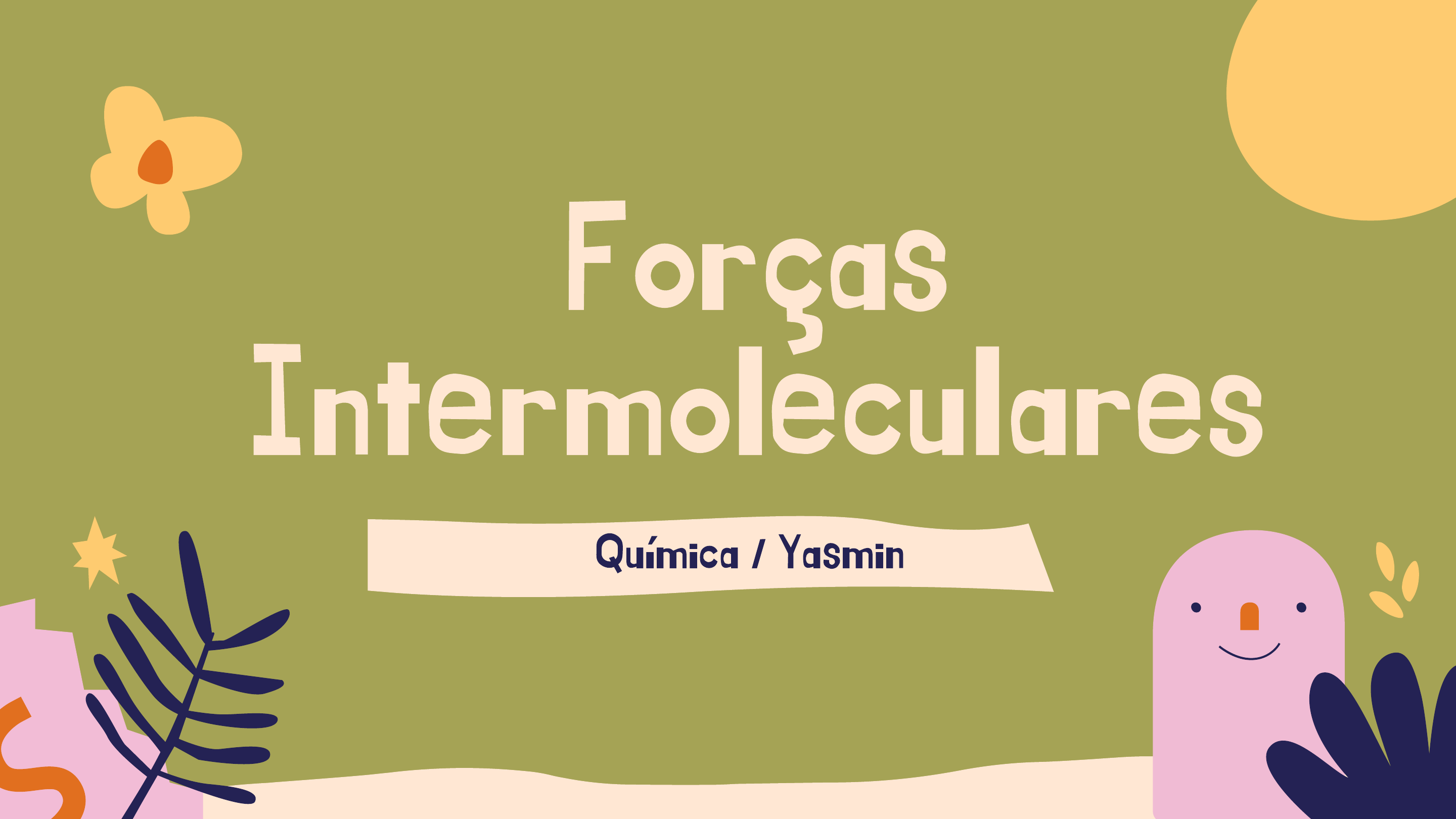 Forças Intermoleculares Química / Yasmin Forças Intermoleculares (ou força de Van der Waals) Força de atração ou repulsão entre as MOLÉCULAS! As forças intermoleculares são muito mais fracas que as forças intramoleculares! *Quando uma substância funde ou entra em ebulição, forças intermoleculares são quebradas (não as ligações covalentes) Forças dipolo induzido- dipolo induzido Chamada também de forças de dispersão de London. Ocorre entre moléculas APOLARES. Forças dipolo induzido- dipolo induzido Chamada também de forças de dispersão de London. Ocorre entre moléculas APOLARES. A maioria delas apresenta-se no estado gasoso em condições ambientes. Alguns exemplos são H2, O2, N2, F2, Cl2, CO2, CH4, C2H6. Forças dipolo induzido- dipolo induzido "Professor de química: as forças de dispersão de London (dipolo induzido) são as mais fracas das interações intermoleculares. " Largatixas: "F@da-se". Forças dipolo-dipolo Chamada também de dipolo permanente-dipolo permanente. Ocorre entre moléculas POLARES. Forças de hidrogênio Ocorre entre átomos de hidrogênio e Flúor, Nitrogênio ou oxigênio. Forças íon-dipolo Ocorre entre íons e moléculas polares . Forças íon-dipolo Ocorre entre íons e moléculas polares. Identificando forças intermoleculares Exercício (Fameca–SP) Compostos HF, NH3 e H2O apresentam elevados pontos de fusão e de ebulição quando comparados a H2S e HCl, por exemplo, devido: a) às forças de van der Waals; b) às forças de London; c) às ligações de hidrogênio; d) às interações eletrostáticas; e) às ligações iônicas. Exercício (UNIFESP) A geometria molecular e a polaridade das moléculas são conceitos importantes para predizer o tipo de força de interação entre elas. Dentre os compostos moleculares nitrogênio, dióxido de enxofre, amônia, sulfeto de hidrogênio e água, aqueles que apresentam o menor e o maior ponto de ebulição são, respectivamente, a) SO2 e H2S. b) N2 e H2O. c) NH3 e H2O. d) N2 e H2S. e) SO2 e NH3. Exercício Dadas as substâncias abaixo: I. Ácido clorídrico (HCI) II. Gás carbônico (CO2) III. Amônia (NH3) IV. Gás flúor (F2) V. Ácido sulfídrico (H2S) Assinale a opção que contém a ordem crescente correta para as suas temperaturas de ebulição. a) I < IV < III < II < V b) IV < II < V < I < III c) IV < II < I < V < III d) III < I < II < V < IV e) IV < V < II < I < III
