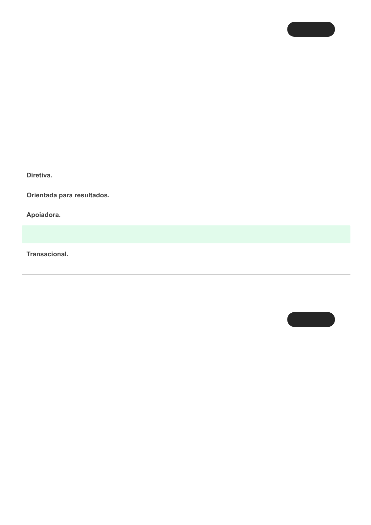 04/06/2021 Comentários https://sereduc.blackboard.com/ultra/courses/_52965_1/grades/assessment/_3550548_1/overview/attempt/_12594171_1/review/inline-feedback?… 1/8 Ocultar opções de resposta Pergunta 1 -- /1 “O verdadeiro método, quando se tem homens sob as nossas ordens, consiste em utilizar o avaro e o tolo, o sábio e o corajoso, e em dar a cada um a responsabilidade adequada”. Fonte: TZU, Sun. A Arte da Guerra. Porto Alegre: L&PM, 2002. Líderes são catalisadores e usam das melhores habilidades e conhecimentos dos membros de sua equipe, para atingir as expectativas de desempenho e formar um time coeso e de sucesso. No entanto, em algumas situações, é necessário um direcionamento mais firme e a centralização das decisões para que o trabalho seja executado no prazo estipulado. Considerando essas informações e o conteúdo estudado, estas são características do seguinte estilo de Liderança: Diretiva. Orientada para resultados. Apoiadora. Resposta corretaAutocrática. Transacional. Pergunta 2 -- /1 Leia o excerto a seguir: “Durante a minha vida, me dediquei à luta do povo africano. Lutei contra a dominação branca, e lutei contra a dominação negra. Eu defendi o ideal de uma sociedade democrática e livre, na qual todas as pessoas vivem juntas em harmonia e com oportunidades iguais. É um ideal para o qual espero viver e conseguir realizar. Mas, se preciso for, é um ideal para o qual estou disposto a morrer”. (Nelson Mandela) Fonte: Jose Antônio Lima. O mundo perde Mandela, símbolo da luta pela liberdade e igualdade. 05 dez. 2013. Disponível em: <https://www.viomundo.com.br/politica/nelson-mandela.html>. Acesso em: 22 fev. 2019. Nelson Mandela é um exemplo de liderança carismática, seu modelo de comportamento serviu de padrão para o time que o seguia, não somente por sua experiência e conhecimento, mas também pelo impacto que sua conduta causava neles. Considerando essas informações e o conteúdo estudado, este estilo de liderança possui 4 atributos próprios, que são: 04/06/2021 Comentários https://sereduc.blackboard.com/ultra/courses/_52965_1/grades/assessment/_3550548_1/overview/attempt/_12594171_1/review/inline-feedback?… 2/8 Ocultar opções de resposta Ocultar opções de resposta Empatia, comunicação assertiva, flexibilidade e ousadia. Altruísmo, ética, credibilidade e integridade. Benevolência, coragem, confiabilidade e criatividade. Resposta corretaArticulação, risco pessoal, atitudes inovadoras e sensibilidade. Honestidade, clareza de proposito, firmeza de caráter e força moral. Pergunta 3 -- /1 Leia o excerto a seguir: “Estresse é um termo que se vulgarizou nos últimos tempos. Queixa-se de estresse o homem que chega em casa depois de um dia de muito trabalho, de trânsito pesado e das filas do banco. Queixa-se a mulher que enfrentou uma maratona de atividades domésticas, profissionais e com os filhos. À noite, terminado o jantar, com as crianças recolhidas, os dois mal têm forças para trocar de roupa e cair na cama. A palavra estresse não cabe nesse contexto. O que eles sentem é cansaço, estão exaustos e uma noite de sono é um santo remédio para recompor as energias e revigorá-los para as tarefas do dia seguinte”. Fonte: Drauzio Varella. Estresse. Disponível em: <https://drauziovarella.uol.com.br/entrevistas-2/estresse/>. Acesso em: 01 fev. 2019. No ambiente organizacional, é possível implantar algumas práticas que auxiliam a diminuir os efeitos de um dia de trabalho, realmente, estressante. Estas ações podem envolver treinamentos, maior participação nas decisões, liberdade de expressão, expectativas mais claras ou mais complexidade nas tarefas. Considerando essas informações e o conteúdo estudado, pode-se afirmar que, além destas, pode-se citar outras ações como: Resposta corretameditação, aconselhamento, rodízio de cargos. mudança de área, transferência de unidade, menos burocracia. horários alternativos de trabalho e folgas extras. áreas de lazer, incentivo á leitura e ao autodesenvolvimento. 04/06/2021 Comentários https://sereduc.blackboard.com/ultra/courses/_52965_1/grades/assessment/_3550548_1/overview/attempt/_12594171_1/review/inline-feedback?… 3/8 Ocultar opções de resposta Pergunta 4 -- /1 Leia o excerto a seguir: “Em uma mesma empresa, dependendo das atividades desempenhadas e da motivação dos funcionários, diferentes estilos de liderança podem ser mais adequados. Vejamos o exemplo da fabricante de aeronaves Embraer. Seus engenheiros estão entre os profissionais mais capacitados do mundo e, como funcionários experientes, responsáveis e maduros, eles se sentem dispostos a realizar seu trabalho sob uma liderança que lhes proporciona liberdade de tomar decisões. No setor de pintura das aeronaves, por sua vez, os funcionários podem ser bem treinados, mas, ainda assim, mostrar desinteresse pelas atividades. Diante disso, uma liderança mais participativa e motivadora mostra-se necessária.” Fonte: ROBBINS, Stephen P.; JUDGE, Timothy A.; SOBRAL, Felipe. Comportamento Organizacional: teoria e prática no contexto brasileiro. 14ªed. São Paulo: Pearson Prentice Hall, 2010. No texto o autor cita que devemos usar diferentes formas de liderar para chegarmos ao resultado esperado. Traçando um paralelo com as teorias contingenciais de liderança, analise as afirmações a seguir. I. Estas teorias levam em consideração o ambiente, as tarefas e a equipe para a escolha do estilo de liderança. II. A fundamentação conceitual das teorias contingenciais está baseada nos traços de personalidade dos líderes. III. As contingências as quais as teorias se referem são as habilidades e as competências essenciais na liderança. IV. Uma destas teorias, a de Fiedler, afirma que devemos escolher o líder adequado à situação/equipe que ele vai liderar. V. A teoria situacional, de Hersey e Blanchard, se apoia no grau de maturidade das equipes a serem lideradas. I, II