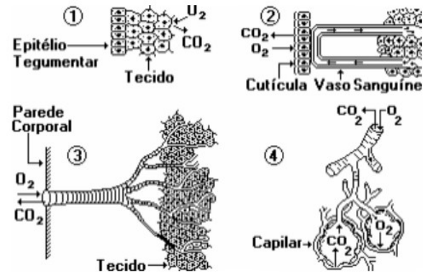 1. (UFMG) Observe os esquemas referentes a sistemas respiratórios animais. Com base nesses esquemas e em conhecimentos sobre o assunto, é incorreto afirmar-se que: a) 1 e 2 são comuns a vertebrados e invertebrados. b) 3 independe do sistema circulatório. c) 3 e 4 referem-se a animais que possuem mais disponibilidade de O‚ no ambiente. d) 4 pode pertencer a um animal com coração tetracavitário. e) O sistema branquial não se inclui entre os esquemas representados. 2. (UFSC – Adaptada) O esquema abaixo apresenta um modelo simplificado de nosso sistema respiratório. Assinale a(s) proposição(ões) CORRETA(S) sobre o mesmo e suas relações com os demais sistemas orgânicos. 01. Separadas pelo palato (“céu da boca”), as fossas nasais e a boca servem de entrada para o ar inspirado. 02. A traquéia é um tubo formado por anéis ósteocartilaginosos que lhe dão rigidez e boa sustentação. 04. A hematose ocorre nos alvéolos, com a troca do oxigênio atmosférico pelo gás carbônico sangüíneo. 08. Pessoas portadoras de fenda palatina produzem sons anasalados pois, quando falam, o ar sai tanto pela boca como pelo nariz. 16. O esquema apresenta apenas o pulmão direito visto ser ele o principal, tendo o esquerdo função secundária. 3. (VUNESP) … João, com o sobrenome de Limeira, agrediu e insultou a moça, irritado naturalmente com os seus desdéns. Martinha recolheu-se à casa. Nova agressão, à porta. Martinha, indignada, mas ainda prudente, disse ao importuno: “Não se aproxime, que eu lhe furo”. João Limeira aproximou-se, ela deu-lhe uma punhalada, que o matou instantaneamente. (Machado de Assis. O punhal de Martinha, 1894.) Perfurações no tórax, provocadas por objetos pontiagudos como facas e punhais, ainda que não atinjam qualquer órgão vital, se permanecerem abertas podem matar o sujeito por asfixia. Explique por que isso pode ocorrer. GABARITO 1. E Resolvendo passo-a-passo: A alternativa A está correta: os sistemas respiratórios 1 e 2 são do tipo cutâneo, sendo 1 uma forma direta com difusão célula a célula e 2 indireta com participação de vasos sanguíneos. Esses processos ocorrem tanto em invertebrados quanto vertebrados, podendo ser encontrados em platelmintos, nematelmintos, anelídeos e anfíbios adultos. A alternativa B está correta: o sistema representando é uma traqueia. Essa estrutura se abre na parede corporal através de um espiráculo e penetra no corpo do animal, levando os gases diretamente até os tecidos. Portanto, é independente do sistema circulatório. A alternativa C está correta: os sistemas 3 e 4 são adaptados para trocas gasosas em ambiente aéreo, onde a concentração de oxigênio é maior. O número 3 é uma traqueia e o 4 representa a estrutura de alvéolos pulmonares. A letra D está correta: a estrutura alveolar está presente em corações com 4 cavidades (2 átrios e 2 ventrículos), como presente em aves e mamíferos. A alternativa E está incorreta: as brânquias são estruturas delgadas, altamente vascularizadas e adaptadas para trocas gasosas em ambiente aquático. A água entra por difusão, da água para os capilares sanguíneos, de forma semelhante ao que ocorre no sistema 2. 2. 13 (01, 04 e 08) Resolvendo passo-a-passo: 01. Correta. As cavidades nasais e a boca são os locais de entrada do ar que se dirige ao nosso sistema respiratório. O ar que entra pelas fossas nasais é filtrado, umedecido e aquecido, antes de ir para a traquéia. Cílios que revestem o epitélio das fossas nasais retêm partículas de sujeira e microorganismos que existem no ar. 02. Incorreta. A traqueia é constituída de tecido muscular liso, reforçada com peças cartilaginosas em forma de “c” em seu comprimento. 04. Correta. Os alvéolos são pequenas bolsas abertas de um dos lados e com uma parede altamente vascularizada. É nela que ocorre a hematose pulmonar (troca do oxigênio atmosférico pelo gás carbônico sanguíneo). 08. Correta. Para o ar e os sons não escaparem pelo nariz, o palato mole e a faringe se movimentam, como uma “porta” que abre e fecha. Na maioria dos sons que produzimos, a “porta” fica fechada, e assim o ar e o som saem somente pela boca. Graças à fenda palatina, o som que deveria sair somente pela boca sai também pelo nariz, aumentando a nasalidade da fala. 16. Incorreta. Os dois pulmões possuem alta importância respiratória. 3. Perfurações no tórax podem causar morte por asfixia, pois igualam a pressão torácica à pressão atmosférica. Para que os movimentos respiratórios ocorram, deve haver diferença de pressão externa e interna.