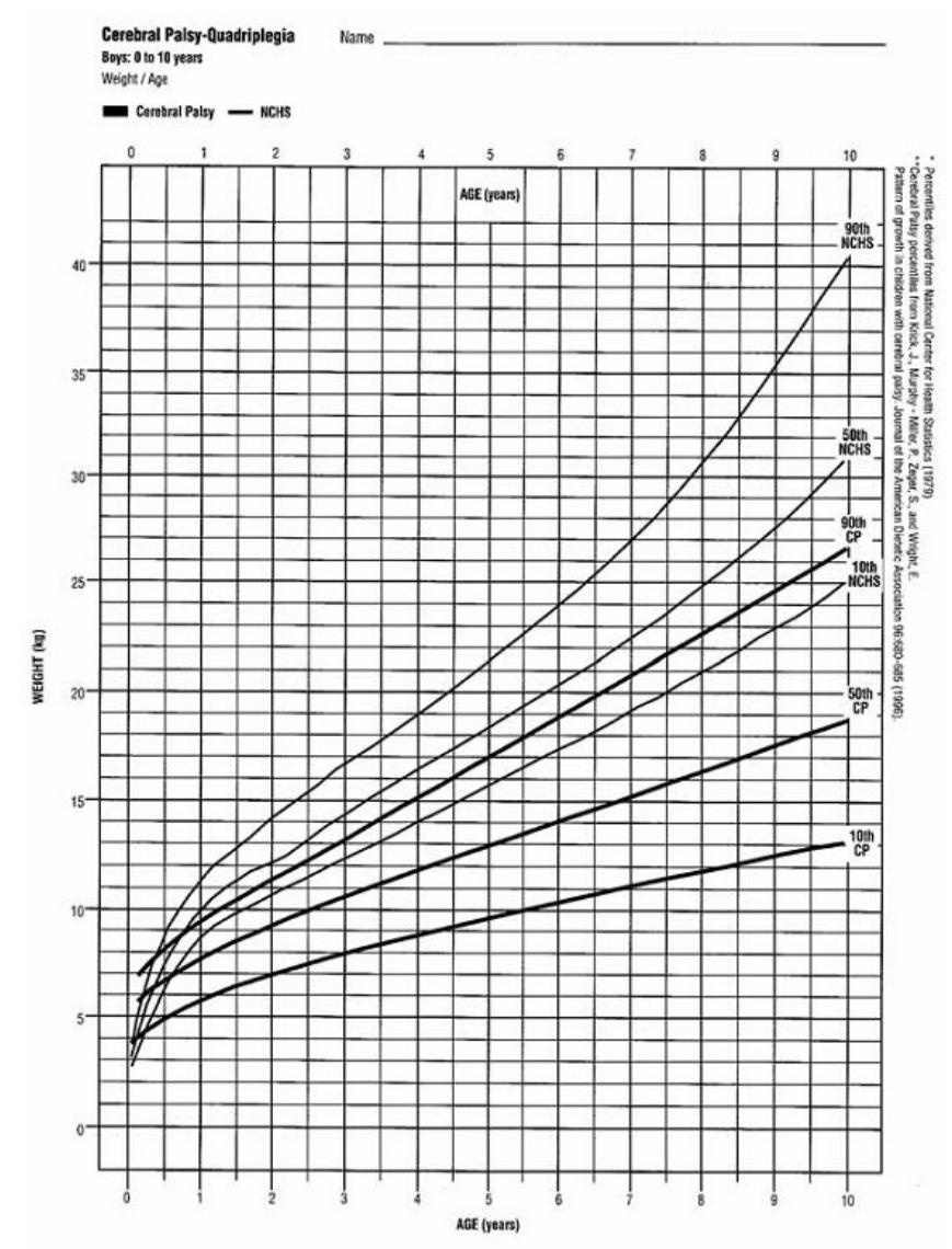 ANEXOS Anexo 1: Curvas de crescimento específicas para Neuropatas (Krick, 1996) Anexo 1.1: Peso por idade em meninos entre 0 e 10 anos com paralisia cerebral sobreposto ao padrão do NCHS. Anexo 1.2: Peso por estatura em meninos entre 0 e 10 anos com paralisia cerebral sobreposto ao padrão do NCHS. Anexo 1.3: Estatura por idade em meninos entre 0 e 10 anos com paralisia cerebral sobreposto ao padrão do NCHS. Anexo 1.4: Peso por idade em meninas entre 0 e 10 anos com paralisia cerebral sobreposto ao padrão do NCHS. Anexo 1.5: Peso por estatura em meninas entre 0 e 10 anos com paralisia cerebral sobreposto ao padrão do NCHS. Anexo 1.6: Estatura por idade em meninas entre 0 e 10 anos com paralisia cerebral sobreposto ao padrão do NCHS. Anexo 3: Curvas de crescimento específicas para Neuropatas (DAY, 2007) Anexo 3.1: Peso por idade em meninos do Grupo 1, entre 2 e 20 anos com paralisia cerebral (linha sólida) sobreposto ao padrão do NCHS (linha pontilhada) Anexo 3.2: Altura por idade em meninos do Grupo 1, entre 2 e 20 anos com paralisia cerebral (linha sólida) sobreposto ao padrão do NCHS (linha pontilhada) Anexo 3.3: IMC por idade em meninos do Grupo 1, entre 2 e 20 anos com paralisia cerebral (linha sólida) sobreposto ao padrão do NCHS (linha pontilhada) Anexo 3.4: Peso por idade em meninos do Grupo 2, entre 2 e 20 anos com paralisia cerebral (linha sólida) sobreposto ao padrão do NCHS (linha pontilhada) Anexo 3.5: Altura por idade em meninos do Grupo 2, entre 2 e 20 anos com paralisia cerebral (linha sólida) sobreposto ao padrão do NCHS (linha pontilhada) Anexo 3.6: IMC por idade em meninos do Grupo 2, entre 2 e 20 anos com paralisia cerebral (linha sólida) sobreposto ao padrão do NCHS (linha pontilhada) Anexo 3.7: Peso por idade em meninos do Grupo 3, entre 2 e 20 anos com paralisia cerebral (linha sólida) sobreposto ao padrão do NCHS (linha pontilhada) Anexo 3.8: Altura por idade em meninos do Grupo 3, entre 2 e 20 anos com paralisia cerebral (linha sólida) sobreposto ao padrão do NCHS (linha pontilhada) Anexo 3.9: IMC por idade em meninos, entre 2 e 20 anos com paralisia cerebral do grupo 3 (linha sólida) sobreposto ao padrão do NCHS (linha pontilhada) Anexo 3.10: Peso por idade em meninos, entre 2 e 20 anos com paralisia cerebral do grupo 4 (linha sólida) sobreposto ao padrão do NCHS (linha pontilhada) Anexo 3.11: Altura por idade em meninos, entre 2 e 20 anos com paralisia cerebral do grupo 4 (linha sólida) sobreposto ao padrão do NCHS (linha pontilhada) Anexo 3.12: IMC por idade em meninos, entre 2 e 20 anos com paralisia cerebral do grupo 4 (linha sólida) sobreposto ao padrão do NCHS (linha pontilhada) Anexo 3.13: Peso por idade em meninos, entre 2 e 20 anos com paralisia cerebral do grupo 5 (linha sólida) sobreposto ao padrão do NCHS (linha pontilhada) Anexo 3.14: Altura por idade em meninos, entre 2 e 20 anos com paralisia cerebral do grupo 5 (linha sólida) sobreposto ao padrão do NCHS (linha pontilhada) Anexo 3.15: IMC por idade em meninos, entre 2 e 20 anos com paralisia cerebral do grupo 5 (linha sólida) sobreposto ao padrão do NCHS (linha pontilhada) Anexo 3.16: Peso por idade em meninas, entre 2 e 20 anos com paralisia cerebral do grupo 1 (linha sólida) sobreposto ao padrão do NCHS (linha pontilhada) Anexo 3.17: Altura por idade em meninas, entre 2 e 20 anos com paralisia cerebral do grupo 1 (linha sólida) sobreposto ao padrão do NCHS (linha pontilhada) Anexo 3.18: IMC por idade em meninas, entre 2 e 20 anos com paralisia cerebral do grupo 1 (linha sólida) sobreposto ao padrão do NCHS (linha pontilhada) Anexo 3.19: Peso por idade em meninas, entre 2 e 20 anos com paralisia cerebral do grupo 2 (linha sólida) sobreposto ao padrão do NCHS (linha pontilhada) Anexo 3.20: Altura por idade em meninas, entre 2 e 20 anos com paralisia cerebral do grupo 2 (linha sólida) sobreposto ao padrão do NCHS (linha pontilhada) Anexo 3.21: IMC por idade em meninas, entre 2 e 20 anos com paralisia cerebral do grupo 2 (linha sólida) sobreposto ao padrão do NCHS (linha pontilhada) Anexo 3.22: Peso por idade em meninas, entre 2 e 20 anos com paralisia cerebral do grupo 3 (linha sólida) sobreposto ao padrão do NCHS (linha pontilhada) Anexo 3.23: Altura por idade em meninas, entre 2 e 20 anos com paralisia cerebral do grupo 3 (linha sólida) sobreposto ao padrão do NCHS (linha pontilhada) Anexo 3.24: IMC por idade em meninas, entre 2 e 20 anos com paralisia cerebral do grupo 3 (linha sólida) sobreposto ao padrão do NCHS (linha pontilhada) Anexo 3.25: Peso por idade em meninas, entre 2 e 20 anos com paralisia cerebral do grupo 4 (linha sólida) sobreposto ao padrão do NCHS (linha pontilhada) Anexo 3.26: Altura por idade em meninas, entre 2 e 20 anos com paralisia cerebral do grupo 4 (linha sólida) sobreposto ao padrão do NCHS (linha pontilhada) Anexo 3.27: IMC por idade em meninas, entre 2 e 20 anos com paralisia cerebral do grupo 4 (linha sólida) sobreposto ao padrão do NCHS (linha pontilhada) Anexo 3.28: Peso por idade em meninas, entre 2 e 20 anos com paralisia cerebral do grupo 4 (linha sólida) sobreposto ao padrão do NCHS (linha pontilhada) Anexo 3.29: Altura por idade em meninas, entre 2 e 20 anos com paralisia cerebral do grupo 5 (linha sólida) sobreposto ao padrão do NCHS (linha pontilhada) Anexo 3.30: IMC por idade em meninas, entre 2 e 20 anos com paralisia cerebral do grupo 5 (linha sólida) sobreposto ao padrão do NCHS (linha pontilhada)