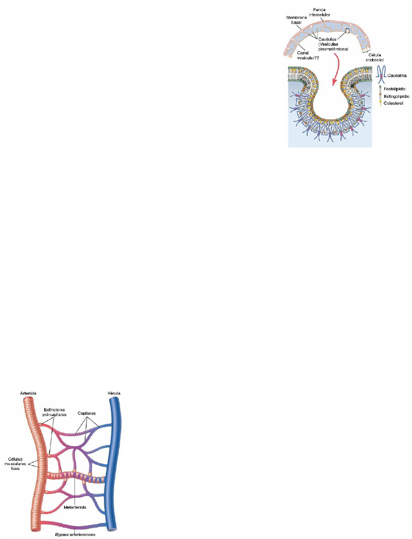 T2 – P5 – M1 1 – Caracterizar sistema capilar e microrregulação - Principais funções da microcirculação: transporte de nutrientes para os tecidos e a remoção de produtor da excreção celular. - As arteríolas vão controlar o fluxo sanguíneo para cada tecido e seu diâmetro será de acordo com as condições locais do tecido. - Capilares: paredes delgadas, formadas por camada única de células endoteliais muito permeáveis possibilitando a eficiente troca com os tecidos. Estrutura da microcirculação e do sistema capilar - as artérias se ramificam de 6 a 8 vezes antes de serem denominadas arteríolas, as quais possuem diâmetros de 10 a 15 micrômetros. - as arteríolas vão se ramificar de 2 a 5 vezes chegando a diâmetros de 5 a 9 micrômetros. - seu diâmetro pode ser alterado devido a alta musculatura das arteríolas. - Vênulas são maiores que as arteríolas; possuem revestimento muscular fraco, pressão menor que nas arteríolas. - Metarteríolas (arteríolas terminais) não tem revestimento muscular contínuo, as fibras lisas vão circundar os vasos de modo intermitente. - O capilar verdadeiro vai se originar as metarteríolas, e no ponto de origem uma fibra lisa circunda o capilar, estrutura que será chamada de esfíncter pré-capilar. Pode abrir ou fechar a entrada do capilar. - As metarteríolas e os esfíncteres pré-capilares tem contato muito íntimo com os tecidos os quais irrigam, o que permite que as concentrações de nutrientes e excreções vão influenciar os vasos no controle do fluxo sanguíneo local. - A parede capilar é composta por uma camada unicelular de células endoteliais e é circundada por membrana basal fina do lado externo. Expessura de 0,5 micrômetros. Fendas intercelulares permitem a difusão de hidrossolúveis; são revestidas por cadeias de proteínas que mantem as células endoteliais unidas mas permitem a difusão. Cavéolas: Nas células endoteliais existem muitas vesículas plasmalêmicas/ cavéolas formadas pela polimerização das caveolinas que se associam às moléculas de colesterol e esfingolipídios. Transporte de macromoléculas por endocitose e trascitose. Captam porções de plasma ou liquido extracelular; Podem formar os canais vesiculares Tipos especiais de poros - Cérebro: junções oclusivas entre as células endoteliais; permite a passagem restrita a moléculas pequenas como água, oxigênio e dióxido de carbono. - Fígado: fendas entre as células endoteliais muito abertas; passagem da maior parte das substâncias dissolvidas no plasma. - Membranas capilares gastrointestinais: poros de tamanho intermediário entre os musculares e os hepáticos. - Glomérulos capilares renais: pequenas aberturas (fenestrações) atravessam pelo meio das células endoteliais possibilitando passagem de maior quantidade de pequenas moléculas sem que precisem passar pelas fendas para de sejam filtradas. Vasomotilidade / fluxo de sangue nos capilares - O fluxo nos capilares é intermitente devido a sua vasomotilidade (contração intermitentes das metarteríolas e esfíncteres pré-capilares). - essa vasomotilidade é controlada pela concentração de oxigênio nos tecidos, quando baixa o período intermitente ocorre mais frequente e com maior duração em cada período permitindo o transporte de mais oxigênio para o tecido. - Devido à alta quantidade de capilares nos tecidos, o funcionamento intermitente é analisado de forma geral, a partir de uma média do funcionamento de todos os capilares. Fluxo médio, pressão média e transferência média de substâncias Trocas entre o sangue e o líquido intersticial - Difusão através da membrana capilar é o meio mais importante de transferência entre o plasma e o liq. Intersticial. Conforme o sangue vai fluindo pelo lúmen capilar, ocorre uma enorme difusão de moléculas de água e partículas dissolvidas para dentro e fora do capilar provocando a mistura do plasma e liq. Intersticial. Essa difusão resulta da movimentação térmica das moléculas de água e das substâncias dissolvidas no líquido. Se movem de modo aleatório em relação às direções. - Substâncias lipossolúveis podem se difundir diretamente através das membranas do capilar sem ter que passar pelos poros incluindo oxigênio e dióxido de carbono. - Substâncias hidrossolúveis e não lipossolúveis não podem cruzar a membrana lipidica das células endoteliais, incluindo moléc.de água, íons sódios, íons cloreto e glicose. Sua difusão vai ocorrer através dos poros intercelulares, com velocidade de movimentação térmica muito grande mesmo que com pouca área para difundir. A permeabilidade dos poros capilares para diferentes substâncias varia de acordo com o diâmetro das moléculas. (Permeabilidade relativa) Podem haver grandes diferenças de permeabilidades entre os vários tecidos do corpo. Efeito da diferença de concentração sobre a intensidade efetiva da difusão através da membrana capilar - a intensidade efetiva de difusão de uma substância através de qualquer membrana é proporcional à diferença de concentração entre os dois lados da membrana. ( o CO2 tem concentração maior nos tecidos que no sangue, quando em excesso ele se move para o sangue de modo que seja eliminado dos tecidos) A intensidade da difusão pelas membranas capilares da maioria das substâncias importantes são tão grandes que pequenas diferenças de concentração são suficientes para provocar o transporte adequado entre plasma e liquido intersticial. 2 . Definir Choque. - O choque circulatório significa fluxo sanguíneo inadequado generalizado pelo corpo, na extensão em que os tecidos corporais são danificados, principalmente por suprimento deficiente de oxigênio e de outros nutrientes para as células teciduais. Débito cardíaco inadequado O próprio sistema cardiovascular começa a se deteriorar de modo que o choque esteja propenso a ficar cada vez pior. Distribuição inadequada de nutrientes p