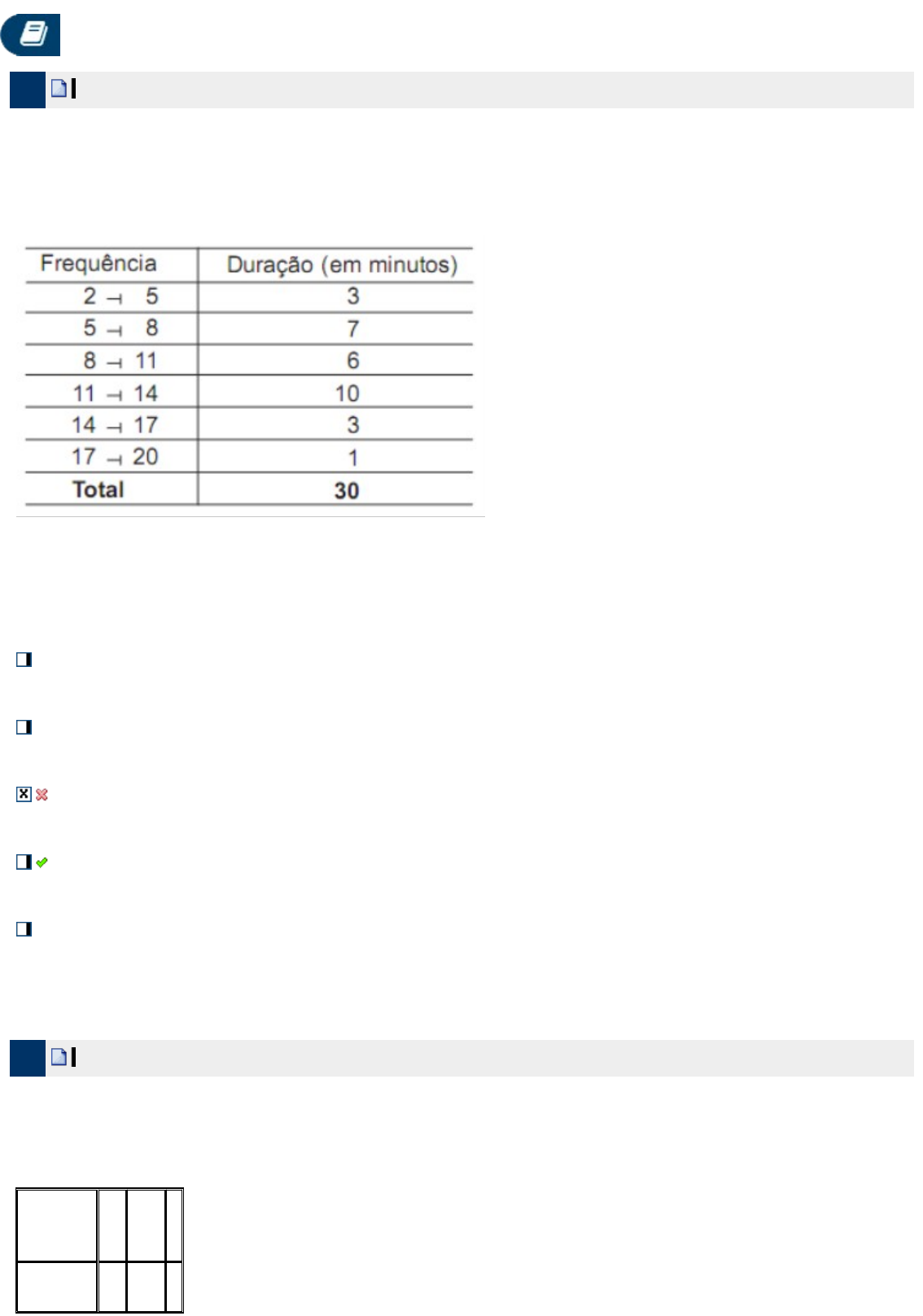 A tabela a seguir apresenta a distribuição de frequências associada à duração de chamadas telefônicas, em minutos, em uma determinada região.