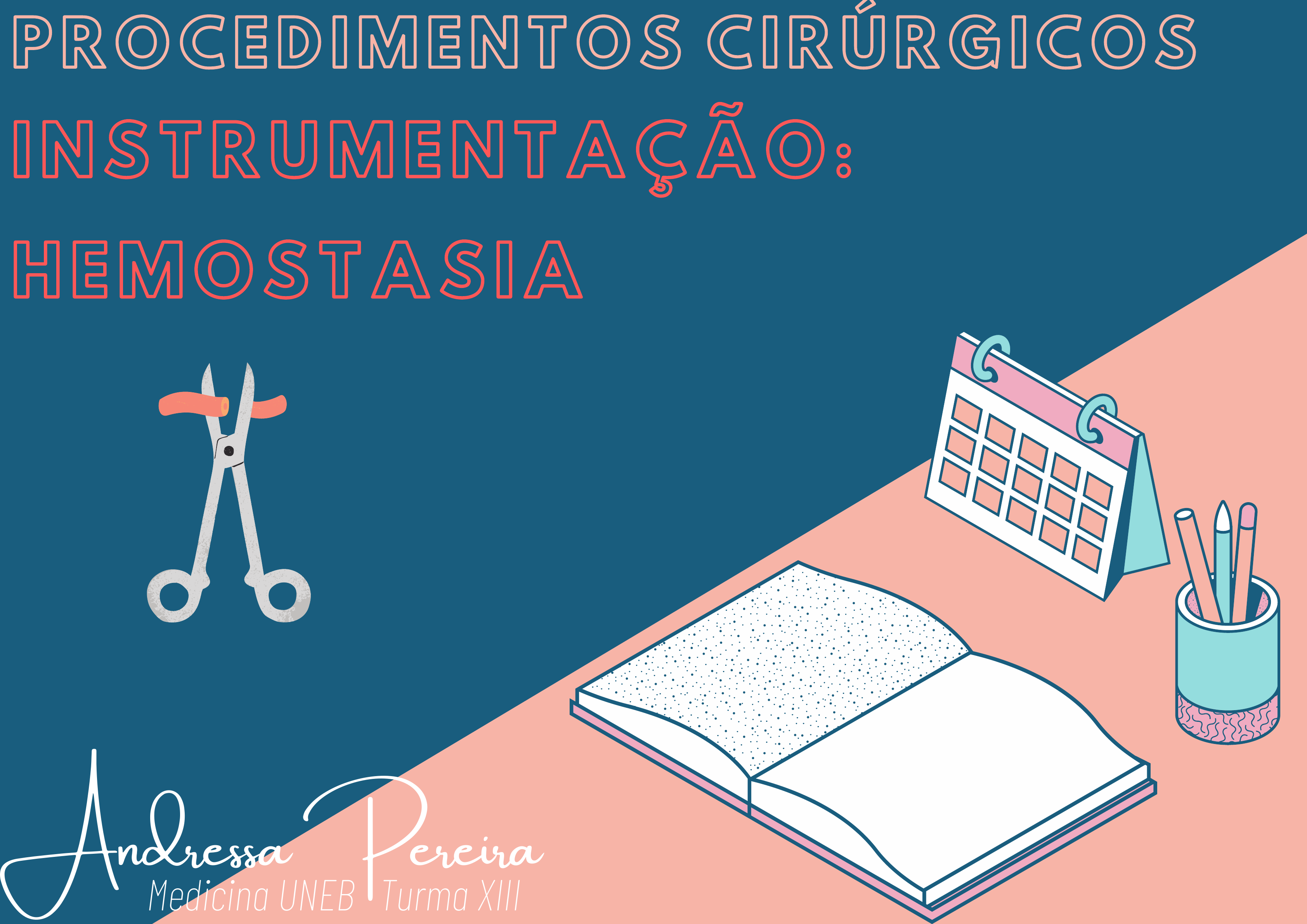 I N S T R U M E N T A Ç Ã O : H E M O S T A S I A P R O C E D I M E N T O S C I R Ú R G I C O S Andressa Pereira Medicina UNEB Turma XIII Hemostasia temporária: é executada no campo operatório (cruenta) ou a distância do mesmo (incruenta). Pode ocorrer por pinçamento, garroteamento, ação farmacológica e parada circulatória com hipotermia ou oclusão endovascular . Hemostasia definitiva: é quase sempre cruenta e interrompe para sempre a circulação do vaso. Pode ocorrer por ligadura, cauterização, sutura, obturação e tamponamento . Hemostasia preventiva: é realizado, antecipadamente, o pinçamento, à montante e à jusante da secção vascular. Hemostasia corretiva: é realizada após a lesão vascular, com o pinçamento, à montante e à jusante da secção vascular. Ela compõe as manobras que têm como objetivo impedir ou coibir a hemorragia. Pinças atraumáticas → não produzem danos na parede vascular, respeitando a integridade endotelial. Amarração dos vasos com fios cirúrgicos (ligadura), eletrocautério, raios laser, grampos metálicos, pinças traumáticas (logo substituídas por ligadura ou eletrocoagulação). Fonte: Goffi, 4ª Ed.