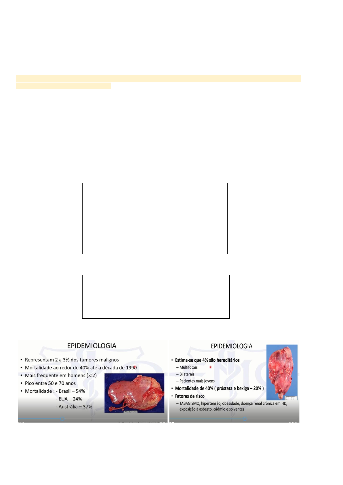 A epidemiologia do tumor renal é isto, é isso que a gente tem que ter em mente. Acomete mais de homens