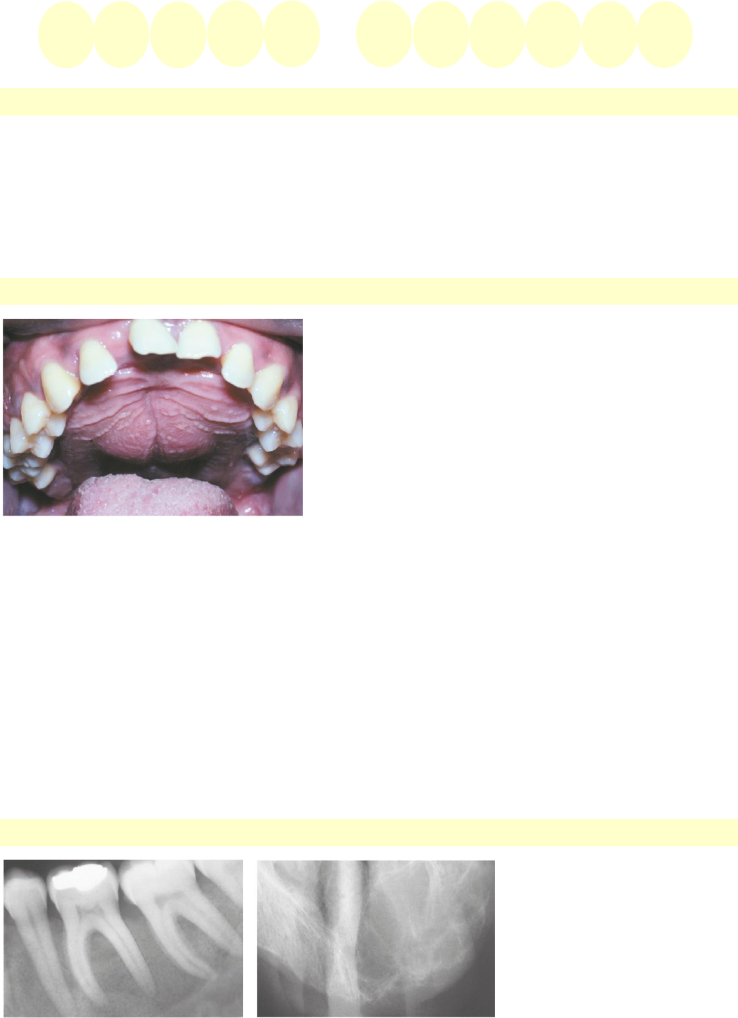 O que é: Um tumor que ocorre por produção em excesso do hormônio paratireoidiano (PTH); O PTH é produzido pelas glândulas paratireoides em resposta à diminuição dos níveis séricos de cálcio; Primário (produção descontrolada de PTH) e secundário (produção continuada de PTH – paciente com doença renal crônica e osteodistrofia renal) Características Clínicas: Seu nome se da pela cor do tecido, devido à presença de hemorragia abundante e deposição de hemossiderina; Afetam mandíbula, clavículas, costelas e pelve; Geralmente ocorre em pacientes com mais de 60 anos; Maior acometimento em mandíbula; É caracterizado por uma expansão óssea indolor e que pode ocasionar o afastamento dos dentes; Pacientes podem relatar perdas ósseas, roncos abdominais e cálculos renais; Exames laboratoriais mostraram o PTH aumentado, cálcio diminuído, fosfatase alcalina aumentada e fósforo diminuído; Características Radiográficas: Apresenta-se como áreas radiolúcidas uni ou multiloculares; Pode causar perda da lâmina dura dos dentes; T U M R M O A R R O M Pode possuir aparência de vidro fosco; Podem ser solitárias, mas frequentemente são múltiplas, e lesões de longa duração podem gerar expansão cortical. Características Histopatológicas: É histopatologicamente idêntico à lesão central de células gigantes; Proliferação excessiva de tecido de granulação, que serve como pano de fundo para numerosas células gigantes multinucleadas do tipo osteoclasto. Tratamento: Hiperparatireoidismo primário: O tecido deve ser removido cirurgicamente para diminuir os níveis de PTH até atingir a normalidade; Hiperparatireoidismo secundário: Restrição do fosfato na dieta, uso de agentes de ligação de fosfato e o tratamento farmacológico com um metabólito ativo de vitamina D (calcitriol) e um agente calciomimético (cinacalcet); A exposição a sais de alumínio, que inibem a mineralização óssea, também deve ser eliminada; Os pacientes que não respondem à terapia médica podem necessitar de paratireoidectomia (remoção das Paratireoides) e tratamento renal.