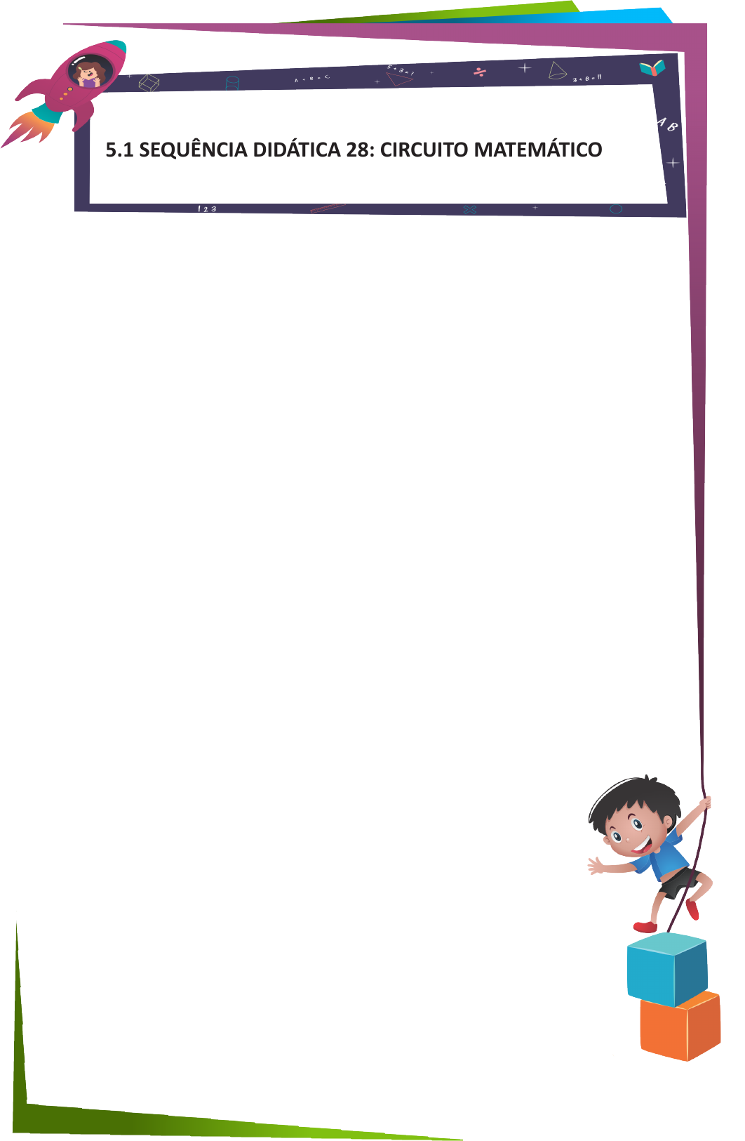 137 5.1 SEQUÊNCIA DIDÁTICA 28: CIRCUITO MATEMÁTICO Professor Paulo Marcos Ferreira Andrade prof.paulomarcos13@gmail.com Objetivo do Jogo Criar um cenário que relacione o jogo e o conteúdo numa dinâmica de movimento e ações significativas para a criança de 05 anos de idade, proporcionado a integração com os colegas e assimilação de conceitos matemáticos sem desconectá-los da ludicidade. Objetivo de Aprendizagem contido na BNCC - INTENCIONALIDADE PEDAGÓGICA A brincadeira faz parte do mundo infantil e se constitui aspecto indissociável das ações que envolvem este público. Pensar um cenário de intencionalidades pedagógicas para o desenvolvimento de habilidades com crianças pequenas exige um alinhamento entre o que se que ensinar e forma com que elas aprendem e veem o mundo. Deste modo os jogos e as brincadeiras trazem para o contexto de ensino a aprendizagem o encantamento natural e imagético do mundo infantil. A escola como espaço formal e privilegiado para formação do cidadão colabora de forma efetiva para que as ações da educação infantil não percam este vinculo tão necessário com o movimento das brincadeiras (FREIRE 1989). De acordo com Freire (1989, p. 67): Se a brincadeira é tão prazerosa e transmite conhecimentos importantes para o processo de formação desse cidadão, visto que vem carregado de um contexto histórico, não há porque deixa-la do lado de "fora" da escola. Neste contexto, o circuito matemático na educação infantil potencializa a da aprendizagem conectada ao contexto dos jogos e das brincadeiras, ou seja, o desenvolvimento de habilidades por meio uma linguagem que não seja estranha às crianças. Sendo desta forma possível articular em um único contexto atividades que promovam as habilidades (EI03ET01), (EI03ET05) e (EI03ET07) pertencentes ao campo de experiência Espaços, Tempos, Quantidades, Relações e Transformações. Neste caminho, a sequência didática, ora proposta estabelece as seguintes habilidades como ponto da articulação: (EI03ET01) estabelecer relações de comparação entre objetos, observando suas propriedades. (EI03ET05) classificar objetos e figuras, de acordo com suas semelhanças e diferenças. (EI03ET07) relacionar números às suas respectivas quantidades e identificar o antes, o depois e o entre em uma sequência. (BRASIL, 2017, p. 49-50) 138 Diante do exposto compreende-se que brincar seja lazer, prazeroso, mas é simultaneamente fonte do conhecimento e é esta dualidade que leva o professor a considerar a brincadeira como parte integrante da atividade pedagógica em contextos e modalidades diversas (VASCONCELLOS 1998). Não duvida de que a brincadeira intencional contribua para assimilação dos papéis sociais e compreensão das relações afetivas que ocorre em seu meio no interior da escola, como para a construção do conhecimento. Organização da Classe Para a realização do circuito matemático é importante que o professor organize a turma em dois grupos com mesma quantidade de componentes, preferencialmente que sejam grupos mistos compostos por meninos e meninas. Constrói-se dois circuitos pois os alunos serão divididos em dois grupos. Dinâmica Metodológica Duração das Atividades: 6 aulas de 60 minutos – 3 momentos de 2 horas. O professor pode organizar a ação da seguinte forma: • 1ª momento - Roda de conversa - dialogar com as crianças sobre a atividade que será realizada. É importante a reflexão de que embora não haja prêmios, trata-se de uma competição e ganha o grupo que tiver o melhor desempenho na realização das tarefas. Aceitar o sim e o não, ganhar e perder, esperar a vez, respeitara vez do colega, obedecer aos comandos são aspectos indispensáveis a formação do caráter humano, de forma que este seja um diálogo necessário • 2ª momento - apresentação do circuito matemático - ande com as crianças no local do circuito e mostre cada passo que dever dado e as ações a serem realizadas em cada etapa. A orientação é se faça uma fila única e o professor entre no circuito mostrando na prática como se faz e os alunos o seguem fazendo da mesma forma, (se for uma turma grande faça em blocos, dividindo a turma). • 3ª momento - explicando as regras - mostre para as crianças as regras de cada etapa, e que somente seja possível passar para próxima se a anterior for concluída. • 4ª momento - iniciando o circuito matemático - Recursos e Materiais. Necessários • 12 bambolês; • 12 bandeirinhas numeradas (números aleatórios de 1 a 10); • 20 pratos descartáveis grandes 21cm com desenhos de bolinhas em seu interior. As bolinhas podem ser feitas com pincel atômico; • Imagens: Pé direito, pé esquerdo, mão direita, mão esquerda (quantidade opcional); • Peças de lego coloridas (em bastante quantidade e cores) Orientação das Crianças Participantes em relação as Regras do Jogo/ Brincadeira Ao propor este circuito partimos do pressuposto que as regras devem ser de acordo com as necessidades e especificas de cada grupo. É interessante que elas sejam criadas e inseridas no contexto por meio de uma reflexão com os participantes do processo. Em tende-se que esta ação ajude na 139 construção da autonomia do caráter infantil. Todavia existes algumas regras básicas que compõem o circuito matemático: 1ª Regra: a criança deve completar todas as etapas do circuito, mesmo que o ouro competidor já tenha terminado. 2ª Regra: quando o competidor errar na primeira etapa do circuito que envolve os pés e as mãos, ele deve reiniciar até cumprir de forma satisfatória; 3ª Regra: nas etapas que envolvem manipulação de objetos os competidores não podem pegar que estejam na mão do outro colega, somente poderá usar as peças que estejam disponíveis do recipiente; 4ª Regra: a pontuação deve ser por tarefa concluída, ou seja, cada ação tem um valor. Assim que a pontuação da equipe será contada até o momento em que algu