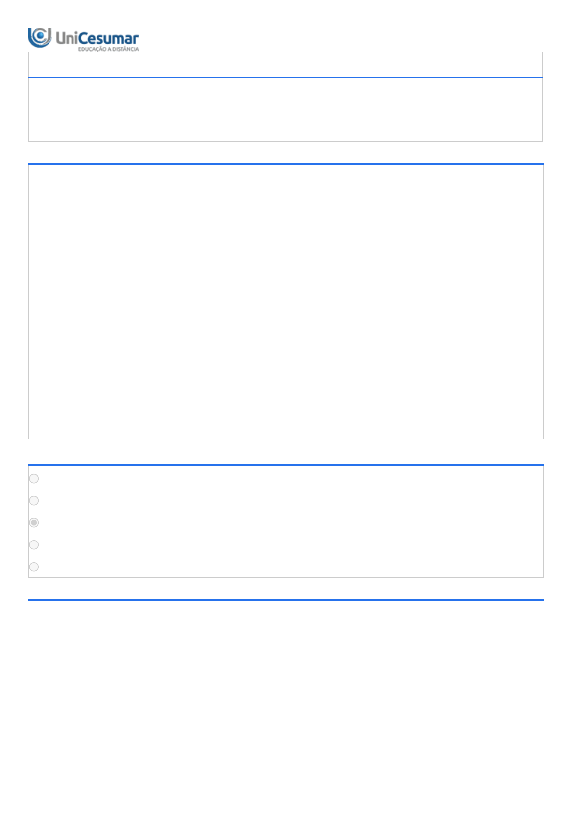 09/07/2021 Unicesumar - Ensino a Distância 1/6 ATIVIDADE 3 - CCONT - CONTROLADORIA - 2021B Período:21/06/2021 08:00 a 09/07/2021 23:59 (Horário de Brasília) Status:ABERTO Nota máxima:1,50 Gabarito:Gabarito será liberado no dia 10/07/2021 00:00 (Horário de Brasília) Nota obtida: 1ª QUESTÃO O conselho fiscal integra a Governança Corporativa da organização com a atribuição de fiscalizar o conselho de administração. Ressalta-se que o conselho fiscal não substitui o comitê de auditoria, pois o último é responsável pelo controle das funções delegadas pelo conselho de administração, enquanto o primeiro fiscaliza e, por lei, não se subordina ao conselho de administração. Ao fiscalizar este, o objetivo do conselho fiscal é preservar o valor da organização. ALMEIDA, Rodrigo Gaspar de. Controladoria. Maringá: UniCesumar, 2019. Considerando as informações apresentadas sobre as funções do Conselho Fiscal, avalie as afirmações a seguir como V para verdadeiras e F para falsas. ( ) Opinar sobre o relatório anual da administração. ( ) Opinar a respeito de modificação do capital social, emissão de debêntures ou bônus de subscrição, planos de investimento ou orçamentos de capital, distribuição de dividendos, transformação, incorporação, fusão ou cisão. ( ) Denunciar erros, fraudes ou crimes que descobrir, além de sugerir providências úteis à organização. ( ) Analisar, ao menos anualmente, as demonstrações financeiras elaboradas pela organização. As afirmações I, II, III e IV são, respectivamente: ALTERNATIVAS V, V, V, V. V, V, F, V. V, V, F, F. V, V, V, F. V, F, F, F. 2ª QUESTÃO 09/07/2021 Unicesumar - Ensino a Distância 2/6 O orçamento de receita identifica o desempenho esperado para as vendas de cada produto, sendo uma das principais etapas do planejamento orçamentário, pois, influencia de forma significativa nos demais orçamentos. Considere a seguinte situação: A indústria Sucesso absoluto estimou um volume de venda para o ano de 2021 em 10.000 unidades de seu único produto. A empresa projeta um preço de venda unitário de R$ 3,00, impostos incidentes sobre as vendas de 20% e ainda uma previsão de devolução em 5% ao mês. Com base no planejamento Estratégico a empresa necessita elaborar seu orçamento de vendas. Para efeito de projeção do Orçamento a Controladoria considerou as seguintes estimativas de vendas para o primeiro trimestre: Janeiro – Previsão de Vendas de 10% do volume anual Fevereiro – Previsão de Vendas de 15% do volume anual Março – Previsão de Vendas de 10% do volume anual Elaborado pela professora, 2021. Considerando apenas os dados apresentados e de acordo com o Orçamento de Vendas, a Receita Líquida prevista para o 1º. trimestre de 2021 é de: ALTERNATIVAS R$ 3.500,00 R$ 8.400,00 R$ 7.980,00 R$ 10.500,00 R$ 6.850,00 3ª QUESTÃO O desempenho das organizações é influenciado por aspectos internos e externos, no qual a formulação dos objetivos ou estratégias deve considerar tais fatores, os quais podem ser controláveis, ou não, pelas organizações. ALMEIDA, Rodrigo Gaspar. Controladoria. Maringá-Pr: Unicesumar, 2019 . Uma vez que um bom planejamento estratégico precisa considerar tais fatores, aponte qual afirmativa contém apenas fatores externos a organização: ALTERNATIVAS Capacitação dos funcionários, crise econômica, qualidade do produto. Oferta e demanda do produto, novos concorrentes, crise econômica. Legislação, funcionários desmotivados, oferta e demanda de produtos. Produtos diferenciados, crise econômica, taxas de juros. Falta de mão de obra especializada, qualidade do produto, legislação. 4ª QUESTÃO 09/07/2021 Unicesumar - Ensino a Distância 3/6 De acordo com Assaf Neto (2002) o fluxo de caixa, relaciona as entradas e saidas de recursos financeiros em um determinado periodo, auxiliando a organização a prever sobra ou falta de recursos no caixa da empresa. ASSAF NETO, A.; SILVA, C.A.T. – Administração do Capital de Giro. 3. ed. – São Paulo: Atlas, 2002. Diante deste pressuposto, considere que a empresa Sonhos Dourados, produtora de escovas de cabelo, elaborou seu orçamento para o próximo ano fiscal ficando assim a distribuição das Vendas Unitárias orçadas para o primeiro trimestre: Janeiro: 6.000 unidades a R$ 5,00 Fevereiro: 6.200 unidades a R$ 5,60 Março: 6.500 unidades a R$ 6,00 Para vender a quantidade estimada de unidades, a empresa deve conceder créditos a seus clientes, estimando 50% das vendas à vista e o restante a prazo sendo 30/60 dias da venda. Com bases nestas informações, podemos afirmar que o valor a receber no mês de fevereiro, será de: ALTERNATIVAS R$ 32.360,00 R$ 22.500,00 R$ 17.250,00 R$ 17.360,00 R$ 24.860,00 5ª QUESTÃO Segundo Atkinson et al. (2011) Payback, ou “retorno do investimento” é um indicador que calcula o prazo de recuperação do capital investido. ATKINSON et al Contabilidade Gerencial 3 ed. – São Paulo : Atlas, 2011. Diante do pressuposto, qual o Payback simples de um investimento em um novo equipamento que custará 65.000,00 se as entradas esperadas de caixa forem de $ 10.000 por ano no período de 20 anos. ALTERNATIVAS 6 anos 3,25 anos 6,5 anos 3 anos 4,2 anos 6ª QUESTÃO 09/07/2021 Unicesumar - Ensino a Distância 4/6 Os riscos podem se materializar de diversas maneiras em uma organização, isso implica na existência de diferentes tipos de riscos, os quais precisam ser monitorados pela organização. Segundo Martins, Santos e Dias Filho (2004), os riscos podem ser: (I) de propriedade, (II) processo ou (III) comportamentais. MARTIN, N. C.; SANTOS, L. R.; DIAS FILHO, J. M. Governança empresarial, riscos e controles internos: a emergência de um novo modelo de controladoria. Revista Contabilidade e Finanças, São Paulo, v. 15, n. 34, p. 7-22, jan./abr. 2004. Disponível em: <https://www.scielo.br/pdf/rcf/v15n34/v15n34a01.pdf>. Acesso em: 30 ago. 2018. Considerando o enunciado e o