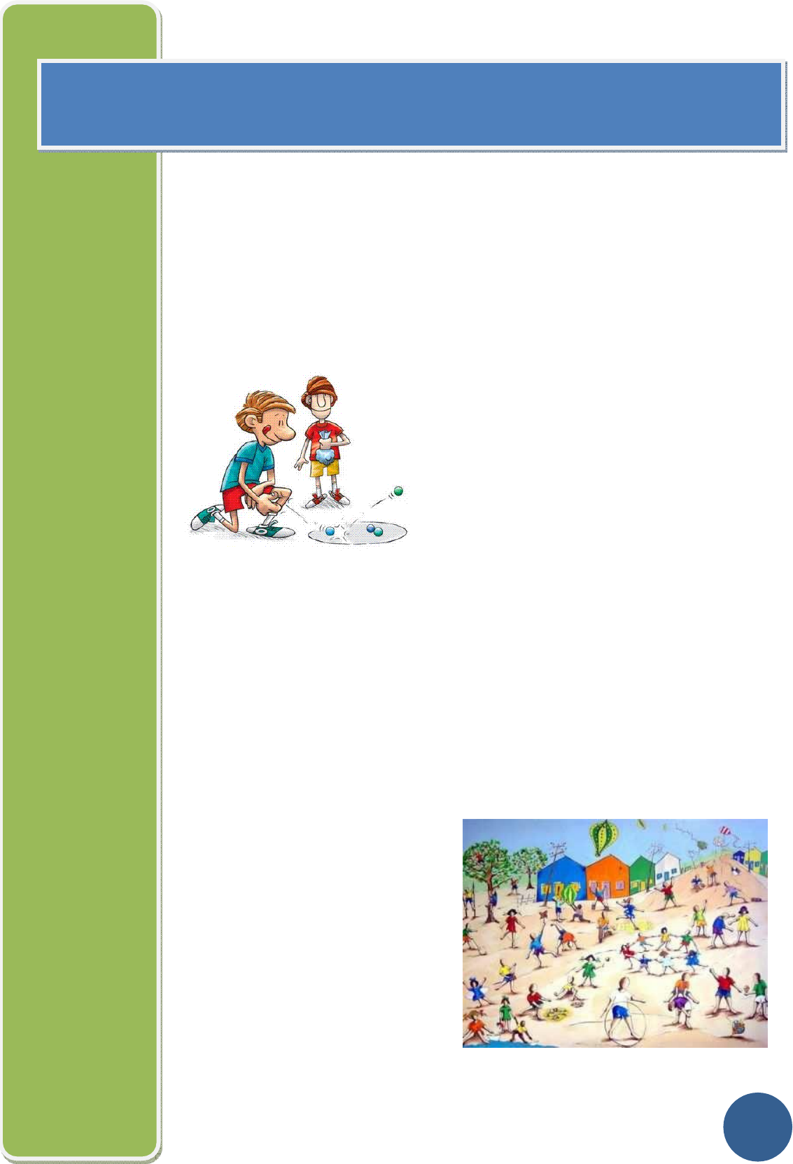 30 Falar sobre o jogo, enquanto manifestação da cultura corporal significa traçar o que o jogo foi desde sua constituição até a atualidade, para refletir sobre as possibilidades de recriá-lo por meio de uma intervenção consciente. Quando pronunciamos a palavra jogo, cada um pode entendê-la de modo diferente. Além disso, existe uma associação muito forte do seu conceito com o termo brincadeira, pelo fato de a palavra jogo se originar do vocábulo latino “iocus”, que significa diversão, brincadeira. A arqueologia registra a presença dos jogos na humanidade desde 2600 a.C, fazendo este parte da vida do homem mesmo que de forma intuitiva, onde os povos desta época retratavam coisas do seu cotidiano. Na Pré-história os jogos estão presentes como forma de lazer e de representar atividades rotineiras, além de servir como instrumento para passar herança cultural e conhecimentos entre as gerações. Na Idade Média os jogos foram proibidos pela Igreja de serem praticados na escola, já que o culto ao corpo visto na Grécia diferentemente nessa época era considerado uma heresia podendo ser punido de maneira cruel. Os jogos propiciam o desenvolvimento da imaginação, o espírito de colaboração, a socialização e ajudam a criança a compreender melhor o mundo. Atualmente, devido ao progresso e às mudanças dele decorrentes, as brincadeiras e jogos infantis populares estão sendo substituídos pela televisão, pelos jogos eletrônicos e pelo computador. A evolução urbana também tem contribuído para a extinção dessas atividades. O fato de trocar a moradia em casas por prédios de apartamentos e o processo de insegurança generalizada no País, estão fazendo com que as calçadas deixem de ser um local de divertimento infantil. Há algum tempo, era muito comum nas cidades, principalmente nos pequenos municípios do interior do Nordeste brasileiro, as crianças brincarem e jogarem na frente das suas casas, nas calçadas ou em praças e ruas tranqüilas. Existe uma grande quantidade de jogos e brincadeiras populares conhecidas, que fizeram e ainda fazem a alegria de muitas crianças brasileiras: queimada, pique- bandeira, cabo-de-guerra, bola de gude, esconde-esconde, boca-de- CAPÍTULO 5 – JOGOS E BRINCADEIRAS forno, tá pronto seu lobo?, academia ou amarelinha, passarás, rica e pobre, esconde a peia, adedonha ou stop, quebra-panela, o coelho sai, sobra um, concentração. Hoje ainda se vê com mais frequência as “peladas” de futebol, jogadas nas ruas mais tranquilas, de pouco movimento, em terrenos baldios, nas areias das praias, gramados de jardins públicos e até em algumas praças. Qualquer espaço público vazio e uma bola servem para a prática da pelada, também chamada de “racha”. É um jogo informal, sem normas muito rígidas, onde não se respeitam as regras do futebol. Vale tudo, menos colocar a mão na bola. Normalmente, não há goleiros. Nesse caso, as balizas são bem estreitas para dificultar o gol. Classificação dos jogos Brincadeiras: Ação que se desenvolve no ato de jogar. Aprendizado cultural que se expressa de diversas formas. A brincadeira é um estado existencial das pessoas em diversas situações das suas vidas. Manifesta-se nos jogos, brinquedos em forma de objetos, cultura popular, reuniões de amigos, montagem ou confecção de brinquedos entre outros. Jogos Simbólicos: A função desse tipo de atividade lúdica "consiste em satisfazer o eu por meio de uma transformação do real em função dos desejos", ou seja, tem como função assimilar a realidade. A criança tende a reproduzir nesses jogos as relações predominantes no seu meio ambiente e assimilar dessa maneira a realidade e uma maneira de se auto-expressar. Brincadeiras ou jogos de faz- deconta, de papeis ou de representações. Jogos Esportivizados: [...] contêm alguns fundamentos de modalidades esportivas em que as regras são alteradas e/ou criadas de outra forma. Basquetão, futebol de cadeira, futebol em duplas, tênisbol, câmbio, 10 passes, volençol, etc. Jogos Populares: São aqueles conhecidos também como jogos de rua ou jogos tradicionais, que não exigem recursos materiais mais sofisticados, pois sua gênese está na cultura popular. Queimado, amarelinha, rouba bandeira, boca- de - forno, mãe da rua, chuta lata, manchete, tacobol, etc. Jogos de Salão: São aqueles em que o jogador depreende menos energia por parte da movimentação corporal, realizado em ambientes mais fechados (salas), usando-se tabuleiros e pequenas peças para representação dos jogadores, em que suas regras são pré- determinadas. Na atualidade muitos desses jogos são pré-fabricados/industrializados. Dama, xadrez, ludo dominó, pega-vareta, palavras cruzadas, baralho, desapareceu alguém, transformação de palavras, etc. Jogos Cooperativos: Os jogos cooperativos são jogos de compartilhar, unir essas, despertar a coragem para assumir riscos, tendo pouca preocupação com o fracasso e o sucesso em si mesmos. Eles reforçam a confiança pessoal e interpessoal, uma vez que, ganhar e perder são apenas referências para o contínuo aperfeiçoamento de todos. Dessa forma os jogos cooperativos resultam no envolvimento total, em 31 sentimentos de aceitação e vontade de continuar jogando. Amigos de jó, estamos todos no mesmo saco, cesta de frutas, dominó cooperativo, etc Alguns jogos e brincadeiras infantis populares Visando contribuir para o registro da memória desses jogos e brincadeiras populares, apresenta-se, a seguir, um pequeno resumo com informações sobre cada um: Amarelinha Desse jogo pode participar qualquer número de crianças. Risca-se no chão, com carvão, giz, ou se for na areia, com um pedaço de pau ou telha, uma figura que parece um boneco com uma perna só, de braços abertos, ou um avião, como também é conhecido em algumas partes do Brasil. As quadras da academia terminam com o céu (um círculo). São mais sete casas numeradas. A criança que grit