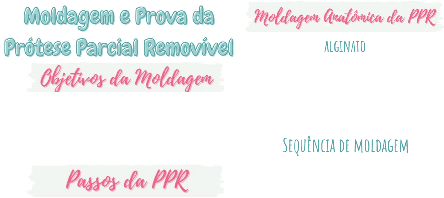 • Moldar os nichos e todo preparo de boca realizado (planos guias). • Boa adaptação da armação metálica; • Assentamento adequado da sela; • Longevidade da PPR. • Adequação do meio bucal; • Moldagem anatômica (obtendo o estudo e possibilitando o delineamento); • Preparo de boca (nicho e plano guia); • Moldagem funcional, desenho da armação para confeccionar a estrutura metálica e enviar ao laboratório. • Apresenta vantagens por ser um material de fácil manipulação, adequado tempo de trabalho de acordo com a temperatura da água, boa fidelidade de cópia, menor deformação dos tecidos do rebordo, baixo custo, fácil limpeza e não mancha a roupa do paciente. • Apresenta desvantagens como crítica estabilidade dimensional e pouca retenção em moldeiras lisas. • Levar o alginato com o dedo ou com seringa sobre áreas críticas que possam gerar bolhas, principalmente nos nichos e conectores menores; • Carregar a moldeira de estoque e posicionar na arcada, procurando não fazer excessiva compressão sobre os tecidos moles; • Aguardar tempo de presa do alginato (em torno de 2 minutos); • Remover a moldeira em um movimento único para evitar distorções. Em seguida, lavar em água corrente, faz a desinfecção com hipoclorito de sódio e seca. • Vazar imediatamente o gesso, de preferência gesso especial por necessitar de uma resistência maior e melhor cópia dos detalhes. • Após a presa do gesso, remover o modelo e enviar ao protético o modelo de trabalho junto com o modelo de estudo, onde encontra- se desenhada a estrutura da PPR. • Observar o assentamento total dos apoios sobre os nichos. Em caso de desadaptação, ajustar a estrutura utilizando líquidos marcadores para ter conhecimento da interferência e realizar o ajuste. • As áreas com frequente interferência são: apoios e conector menor, próximo ao apoio cervical dos dentes. São áreas difíceis de serem moldadas. • Quando inserir deve observar se o grampo não está causando injúrias ao tecidos e apertamento. Se estiver apertado, não deve ajustar as pontas dos grampos, devem ter contato íntimo com os dentes. • Após assentada a estrutura, fazer um registro oclusal verificando que não haja interferência da estrutura na oclusão, tanto em Máxima Intercuspidação Habitual ou Relação Cêntrica, como nos movimentos de protrusão e lateralidade. • Fazer o registro oclusal utilizando a pasta zinco-enólica sobre o rolete de cera. Aliviar o rolete de cera até que fique com aproximadamente 1 ou 2 mm de espaço dos dentes antagonistas. Sobre o rolete aplicamos pequena quantidade de pasta zinco- enólica preparada, e pedimos para o paciente ocluir. Após a presa enviamos ao laboratório para montagem dos dentes. • O objetivo deste registro é marcar apenas as pontas de cúspides dos dentes antagonistas. Quanto mais superfície dentária for impressa na pasta zinco-enólica, maior a dificuldade de adaptação do modelo sobre o registro, e maior a possibilidade de distorção. • Escolha da cor dos dentes a serem montados e da gengiva. • PPRs com muitos dentes a serem substituídos, onde perde- se o referencial de altura e posição dos dentes, devem ter um tratamento semelhante a uma prótese total nesta fase de rolete de cera. Devemos portanto, determinar a dimensão vertical (se for o caso), e marcar sobre o rolete a linha média, linha do sorriso, curvatura ântero- posterior. • Ausência de dente na região anterior: deve-se verificar suporte labial, comprimento do incisivo, linha média e linha de canino. • Ausência de dente na região posterior: MIH (morder) ou registrar a relação cêntrica (levar o queixo para trás) - MIH: consegue uma estabilidade oclusal, ou seja, dentes posteriores mantendo a dimensão vertical. - RC: ausência de dentes posteriores mantendo a dimensão vertical, pedir ao paciente para deglutir. • O modelo funcional é aquele obtido a partir de um modelo corrigido em que o molde dos dentes é realizado com um material que captura suas posições anatômicas e o molde dos tecidos moles é realizado com o material em sua forma funcional. • Material utilizado: alginato ou silicona. • Maior reprodução de detalhes; • Boa estabilidade dimensional; • Difícil manipulação, exige um tempo maior e instrumentos específicos. • Alto custo em relação ao alginato. Porém, tem-se uma montagem mais fidedigna. • Moldagem de PPR dentossuportadas- moldagem anatômica de Classe III e IV de Kennedy requerem mais detalhes porque as forças oclusais são dirigidas ao longo eixo dos dentes pilares. • Prótese dentomucosuportada, ou seja, com extremidade livre classe I ou II de Kennedy. Como a mucosa participa da distribuição das cargas da prótese, é necessário a realização da moldagem funcional devido a participação do rebordo. Uso da técnica de moldagem fisiológica pode ser determinada pelos seguintes testes: • Adição de uma base de resina acrílica (base de registro) à estrutura metálica; • Posicione a estrutura metálica com a base de registro na boca do paciente e exerça pressão digital sobre a(s) base(s). • Se, ao ser(em) comprimida(s) a(s) base(s), os retentores indiretos ou a barra lingual se deslocam dos dentes, deve-se utilizar a técnica da dupla moldagem, onde a região anterior é moldada por último. • Manipulação do material de moldagem (ex. silicona); • Aplicação do adesivo e material de moldagem dentro da prótese (sela) e leva em posição à boca do paciente, tracionamento da musculatura, pede para o paciente fazer movimentos da língua e oclusão dos dentes; • Após a presa do material, remove a armação metálica junto com a moldagem funcional; • Não é necessário vazar o gesso, pois a silicona tem uma boa estabilidade dimensiona; • Envia para o laboratório, que devolve a prótese acrilizada; • Após a presa do material, na moldagem funcional, deve-se remover a prótese d