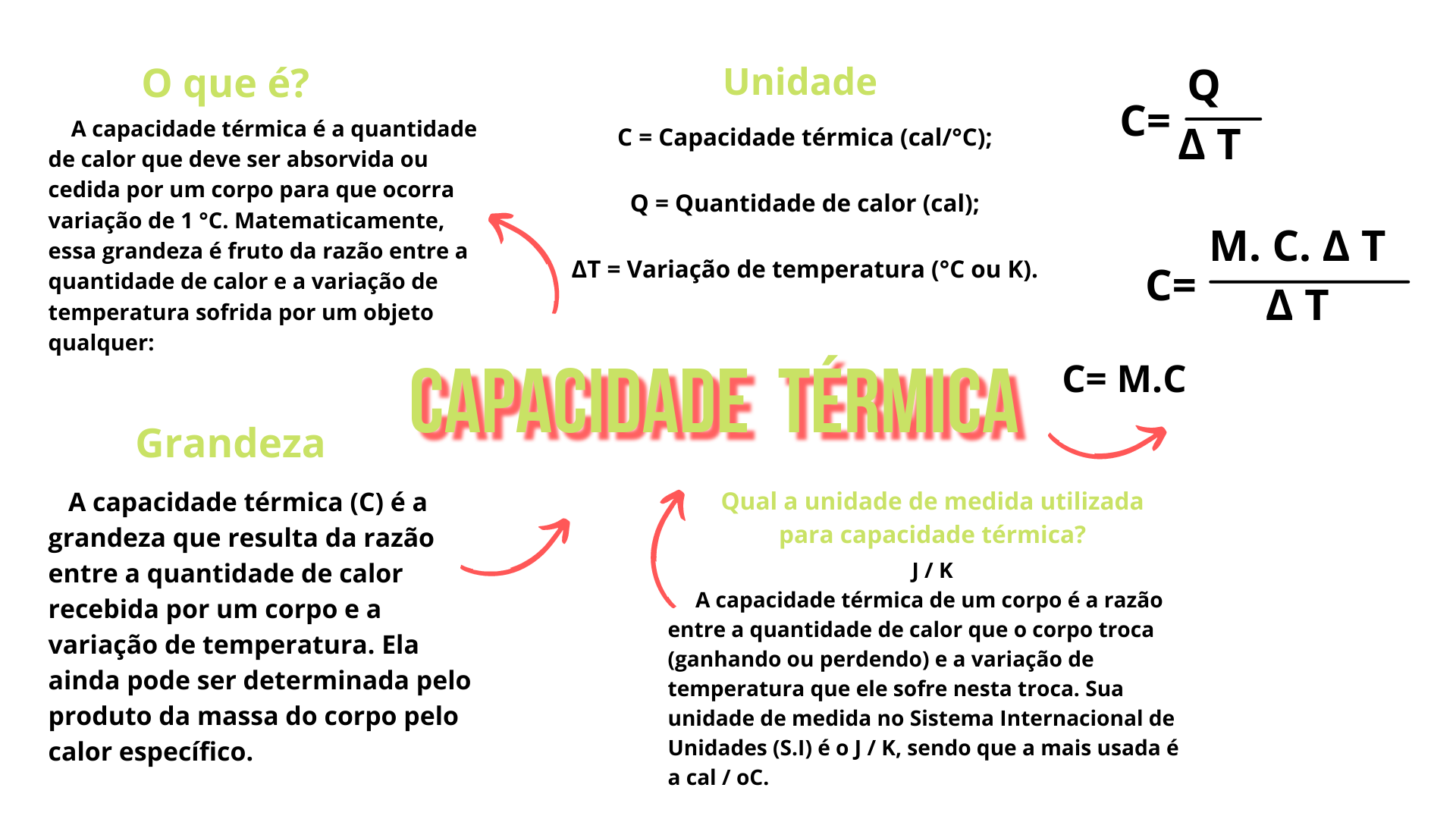 A ) A capacidade térmica é a quantidade de calor necessária para que 1 g da substância eleve a sua temperatura em 1 °C. B ) A capacidade térmica ...