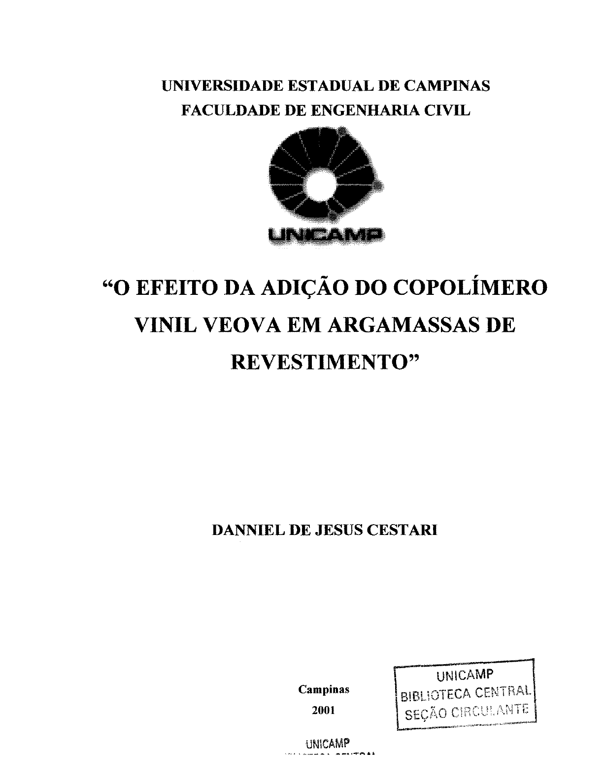argamassas !eves. Dissertaqiio (mestrado). Universidade Estadnal de Campinas, UNICAMP.