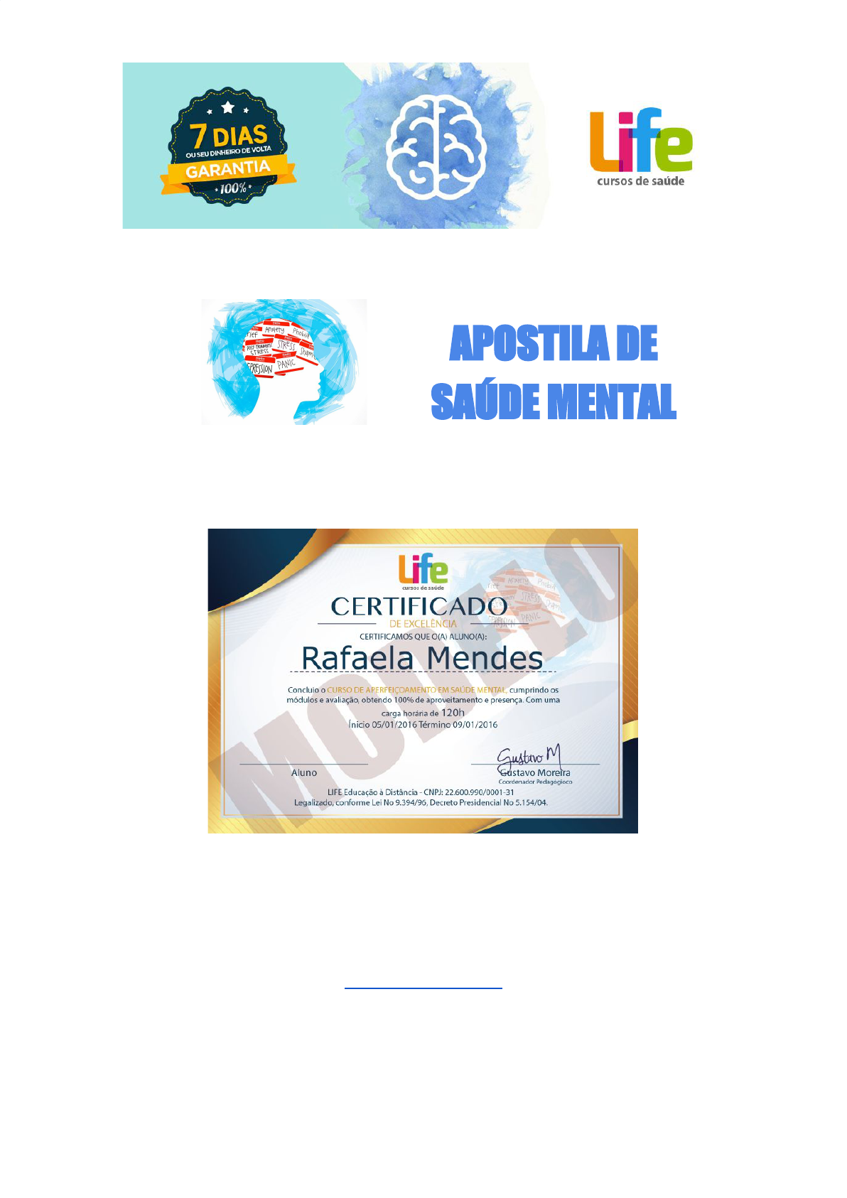 APOSTILA DE SAÚDE MENTAL ESTUDE A APOSTILA PARA REALIZAR A AVALIAÇÃO E GERAR SEU CERTIFICADO DE 120H. VOCÊ PODE ADQUIRIR SEU CERTIFICADO AGORA! clique no link para adquirir o certificado http://bit.ly/2U9n5ky 1 1. UMA INTRODUÇÃO À HISTÓRIA DA PSIQUIATRIA A palavra Psiquiatria deriva do Grego e quer dizer "arte de curar a alma", sendo o ramo da medicina que se dedica ao diagnóstico, tratamento, reabilitação e prevenção das doenças mentais. A esquizofrenia, doença de Alzheimer e transtornos de humor são exemplos de afecções mentais graves, enquanto os transtornos de personalidade são tidos como de menor magnitude de severidade, entretanto, não dispendem de tratamentos e de devida atenção. É necessário entender a diferença e a importância da psiquiatria e psicologia. Enquanto a psiquiatria trata da anormalidade mental, a psicologia possui como foco a o funcionamento psicológico normal. Além disso, a psicologia é de responsabilidade de profissionais psicólogos, enquanto a psiquiatria é de cunho médico. A humanidade convive com a loucura há séculos e, antes de se tornar um tema essencialmente médico, o louco habitou o imaginário popular de diversas formas. De motivo de chacota e escárnio a possuído pelo demônio, até marginalizado por não se enquadrar nos preceitos morais vigentes, o louco é um enigma que ameaça os saberes constituídos sobre o homem. Na época da Renascença, a separação dos loucos se dava pelo seu banimento dos muros das cidades européias e o seu confinamento era um confinamento errante: eram condenados a andar de cidade em cidade ou colocados em navios que, na inquietude do mar, vagavam sem destino, chegando, ocasionalmente, a algum porto. No entanto, desde a Idade Média, os loucos são confinados em grandes asilos e hospitais destinados a toda sorte de indesejáveis – inválidos, portadores de doenças venéreas, mendigos e libertinos. Nessas instituições, os mais violentos eram acorrentados; a alguns era permitido sair para mendigar. No século XVIII, Phillippe Pinel, considerado o pai da psiquiatria, propõe uma nova forma de tratamento aos loucos, libertando-os das correntes e 2 transferindo-os aos manicômios, destinados somente aos doentes mentais. Várias experiências e tratamentos são desenvolvidos e difundidos pela Europa. O tratamento nos manicômios, defendido por Pinel, baseia-se principalmente na reeducação dos alienados, no respeito às normas e no desencorajamento das condutas inconvenientes. Para Pinel, a função disciplinadora do médico e do manicômio deve ser exercida com firmeza, porém com gentileza. Isso denota o caráter essencialmente moral com o qual a loucura passa a ser revestida. No entanto, com o passar do tempo, o tratamento moral de Pinel vai se modificando e esvazia-se das idéias originais do método. Permanecem as idéias corretivas do comportamento e dos hábitos dos doentes, porém como recursos de imposição da ordem e da disciplina institucional. No século XIX, o tratamento ao doente mental incluía medidas físicas como duchas, banhos frios, chicotadas, máquinas giratórias e sangrias. Aos poucos, com o avanço das teorias organicistas, o que era considerado como doença moral passa a ser compreendido também como uma doença orgânica. No entanto, as técnicas de tratamento empregadas pelos organicistas eram as mesmas empregadas pelos adeptos do tratamento moral, o que significa que, mesmo com uma outra compreensão sobre a loucura, decorrente de descobertas experimentais da neurofisiologia e da neuroanatomia, a submissão do louco permanece e adentra o século XX. A partir da segunda metade do século XX, impulsionada principalmente por Franco Basaglia, psiquiatra italiano, inicia-se uma radical crítica e transformação do saber, do tratamento e das instituições psiquiátricas. Esse movimento inicia-se na Itália, mas tem repercussões em todo o mundo e muito particularmente no Brasil. Nesse sentido é que se inicia o movimento da Luta Antimanicomial que nasce profundamente marcado pela idéia de defesa dos direitos humanos e de resgate da cidadania dos que carregam transtornos mentais. Aliado a essa luta, nasce o movimento da Reforma Psiquiátrica que, mais do que denunciar os manicômios como instituições de violências, propõe a construção de uma rede de serviços e estratégias territoriais e comunitárias, profundamente solidárias, inclusivas e libertárias. 3 2. PSIQUIATRIA NO BRASIL A psiquiatria surge com a chegada da Família Real ao Brasil. Com o objetivo de colocar ordem na urbanização e disciplinar a sociedade a partir de embasamento nos conceitos da psiquiatria européia que destratava o “louco” e intervia no tratamento do doente mental com seu isolamento, tratando-o no hospital psiquiátrico. No final da década de 70 com a mobilização dos profissionais da saúde mental e dos familiares de pacientes com transtornos mentais, surge o movimento de reforma psiquiátrica. Esse movimento se inscreve no contexto de redemocratização do país e na mobilização político-social que ocorre na época. Importantes acontecimentos como a intervenção e o fechamento da Clínica Anchieta, em Santos/SP, e a revisão legislativa proposta pelo então Deputado Paulo Delgado por meio do projeto de lei nº 3.657, ambos ocorridos em 1989, impulsionam a Reforma Psiquiátrica Brasileira. Em 1990, o Brasil torna-se signatário da Declaração de Caracas a qual propõe a reestruturação da assistência psiquiátrica, e, em 2001, é aprovada a Lei Federal 10.216 que dispõe sobre a proteção e os direitos das pessoas portadoras de transtornos mentais e redireciona o modelo assistencial em saúde mental. Dessa lei origina-se a Política de Saúde Mental a qual, basicamente, visa garantir o cuidado ao paciente com transtorno mental em serviços substitutivos aos hospitais psiquiátricos, superando assim a lógica das internações de longa permanência que tratam o pa