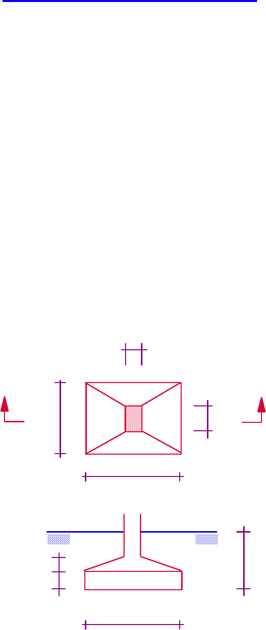 EXECUÇÃO DE SAPATAS 1) PLANTAS NECESSÁRIAS • Locação e cargas nos pilares • Forma e armação das sapatas • Forma e armação dos pilares 2) ETAPAS E QUANTITATIVOS 2.1) Escavação • Deve atingir 5 cm abaixo da cota de assentamento da sapata. • Deve ser deixada uma folga de 30 a 70 cm entre os bordos da sapata e da escavação. • Talude de escavação de 1 (h) : 2 (v). Lx Px Df A A AA PLANTA PyLy Lx H2 H1 Dimensões da Sapata 30 a 70 cm 30 a 70 cm 30 a 70 cm 30 a 70 cm 1 2 (Df + 5) / 2 (Df + 5) / 2 Df + 5 A A AA PLANTA Dimensões da Escavação • Volume de escavação (Vesc): A a H Volume de Tronco de Pirâmide ( )[ ]AaAaHV ⋅++⋅= 3 No caso da sapata (admitindo-se uma folga de 50 cm entre os bordos da escavação e da sapata), tem-se: H = Df + 5 cm a = [ Lx + 100 ] . [ Ly + 100 ] A = [ Lx + 100 + Df + 5 ] . [ Ly + 100 + Df + 5 ] 2.2) Lançamento do Concreto Magro • Concreto não estrutural (fck = 9 MPa), que serve como lastro para a escavação. • Deve ser deixada uma folga mínima de 10 cm a partir do bordo da sapata. • Espessura usual de 5 cm. 5 10 10 CONCRETO MAGRO Concreto Magro • Volume de concreto magro (Vmag): ( ) ( )[ ]20205 +⋅+⋅= LyLxVmag 2.3) Forma e Armação da Sapata • A forma deverá estar apoiada no lastro de concreto magro. • Só é utilizada forma no trecho inferior da sapata. • Devem ser usados espaçadores (“cocadas”), para se garantir um recobrimento mínimo de 2,5 cm. • Taxa de armadura da sapata é normalmente de 50 a 60 kg/m3 de concreto. ARMADURA DO PILAR FORMA DA SAPATA ESPAÇADORES ARMADURA DA SAPATA FORMA DO PILAR 2,5 Forma e Armação da Sapata • Área de forma da sapata (Asap): ( )[ ]LyLxHAsap +⋅⋅= 21 • Área de forma do pescoço do pilar (Apes): [ ] ( )[ ]PyPxHHDfApes +⋅⋅+−= 2)( 21 2.4) Concretagem • A sapata deve ser concretada seguindo-se as especificações do projeto (fck, cura, etc). • Volume de concreto da sapata (Vsap): ( )[ ] ⋅⋅⋅⋅⋅⋅⋅⋅+⋅⋅= )()()( 3 2 1 PyPxLyLxPyPxLyLx HLyLxHVsap • Volume de concreto do pescoço do pilar (Vpes): [ ] [ ]PyPxHHDfVpes ⋅⋅+−= )( 21 2.5) Reaterro • Deve ser feito após a retirada da forma da sapata e do pescoço. • Normalmente é utilizado o próprio material escavado compactado. • Deve ser considerado o empolamento do material (em geral de 20 a 30%). REATERRO COMPACTADO Reaterro da Cava • Volume de reaterro (Vrea): ( )[ ] 20,1⋅++−= VpesVsapVmagVescVrea