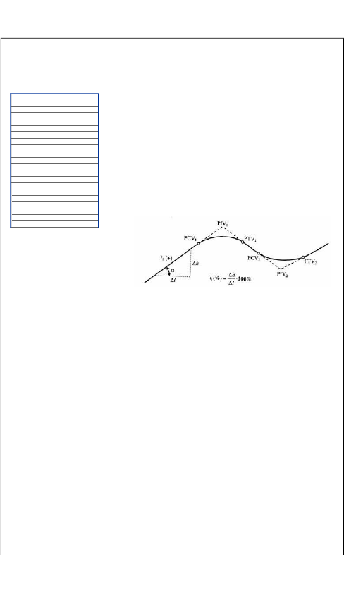Noções de Topografia Para Projetos Rodoviarios Capitulos 01 - Requisitos 02 - Etaqpas 03 - Traçado 04 - Trafego e Clssificação 05 - Geometria 06 - Caracteristicas Técnicas 07 - Distancia Visibilidade 08 - Concordancias Horizontais 09 - Locação Curva Circular 10 - Superelevação 11 - Curvas com Transição 12 - Locação Curvas com Espiral 13 - Super Largura 14 - Greide 15a - Ex. Parabola Comp. Minimo 15b - Ex. Parabola Simples 15c - Ex. Parabola Composta 16 - Nota de Serviço 17 - Area Seção Transversal 18 - Volumes 19 - Sobre Parabarabolas Final Capitulo 14 PROJETO EM PERFIL, PROJETO VERTICAL OU GREIDE DE UMA ESTRADA DE RODAGEM 14.1. INTRODUÇÃO O projeto de uma estrada em perfil é constituído de greides retos, concordados dois a dois por curvas verticais. Os greides retos são definidos pela sua declividade, que é a tangente do ângulo que fazem com a horizontal. Na prática, a declividade é expressa em porcentagem. Nos greides ascendentes, os valores das rampas (i) são considerados positivos e nos greides descendentes, negativos, conforme indicado na Fig. 14. 1. Para fazer esta convenção é necessário dar um sentido ao perfil, que é geralmente o mesmo do estaqueamento. Fig. 14. 1: Perfil de projeto de uma estrada À interseção dos greides retos dá-se a denominação de PIV (ponto de interseção vertical). Os pontos de tangência são denominados de PCV (ponto de curvatura vertical) e PTV (ponto de tangência vertical), por analogia com a curva circular do projeto em planta. O perfil da futura estrada deve ser escolhido de tal forma que permita aos veículos que percorrerem a estrada uma razoável uniformidade de operação. A escolha do perfil ideal está intimamente ligada ao custo da estrada, especialmente ao custo da terraplenagem. Condições geológicas e geotécnicas das áreas atravessadas pela estrada terão grande influência na escolha do perfil, pois, tanto na execução dos cortes como dos aterros, condições desfavoráveis do solo natural podem exigir a execução de serviços especiais de alto custo, como escavações em rocha, obras especiais de drenagem, estabilização de taludes e outros. Assim, muitas vezes a diminuição da altura de um corte ou de um aterro pode reduzir sensivelmente o custo de um determinado trecho de estrada. Nem sempre essas reduções são possíveis, devido às características técnicas mínimas exigidas, à existência de pontos obrigados como concordância com outras estradas, aos gabaritos de obras civis, às cotas mínimas de aterro necessárias à colocação do leito da estrada acima dos níveis de enchente, etc. Como exemplo, lembramos os serviços complementares necessários à redução de recalques ou à garantia de estabilidade de aterros construídos sobre solos moles, à estabilização de taludes de cortes altos, à execução de cortes em rocha, etc. Todos esses serviços são dispendiosos em relação ao custo da terraplenagem. Da mesma forma que no projeto em planta, é sempre desejável que o perfil seja razoavelmente homogêneo, a fim de permitir uma operação uniforme, isto é, que as rampas não tenham grande variação de inclinação e que as curvas de concordância vertical não tenham raios muito diferentes. Entretanto, a existência de variações acentuadas na topografia da região atravessada obriga, muitas vezes, a execução de trechos de perfil com características técnicas bem Página 1 de 5Capitulo 14 28/06/2008http://www.topografiageral.com/Curso/capitulo%2014.php diferentes. Para o projeto do perfil longitudinal da estrada (greide da estrada) é necessário que, inicialmente seja levantado o perfil do terreno sobre o eixo do traçado escolhido. Na fase de Exploração (ou Anteprojeto), a escala horizontal 1:10.000 é suficiente. Como as diferenças de altitude são pequenas em relação às distâncias horizontais, sempre é adotada uma escala vertical dez vezes maior que a horizontal, a fim de possibilitar uma boa visualização do perfil. Assim, quando for adotada escala horizontal 1:10.000, a escala vertical deverá ser 1:1000. Na fase de Projeto Definitivo (ou Locação), é importante um nivelamento do eixo com maior precisão. Normalmente é empregada a escala horizontal 1:2.000 e a escala vertical 1:200. Como pode ser visualizado na Fig. 14. 1, o greide da estrada é composto por uma seqüência de rampas, concordadas entre si por curvas verticais. O projetista deve, sempre que possível, usar rampas suaves e curvas verticais de raios grandes, de forma a permitir que os veículos possam percorrer a estrada com velocidade uniforme. Projetos desse tipo são possíveis em regiões de topografia pouco acidentada. Conforme o terreno vai ficando mais acidentado, o uso de rampas suaves e curvas de grandes raios começa a exigir um aumento do movimento de terra (maiores cortes e aterros) e, conseqüentemente, maiores custos. Nesses casos, a escolha do greide é uma decisão entre melhores condições técnicas (com maior custo) ou rampas mais acentuadas e curvas de menor raio (com um custo menor). Em termos mais práticos, podemos dizer que o perfil de uma estrada é um gráfico cartesiano no qual representamos, em abscissas, o estaqueamento do eixo da estrada e, em ordenadas, as cotas do terreno e do projeto, além de outros elementos que completam as informações necessárias à construção da estrada. Um exemplo de projeto de perfil longitudinal é apresentado na Fig. 14. 2. Página 2 de 5Capitulo 14 28/06/2008http://www.topografiageral.com/Curso/capitulo%2014.php Fig. 14. 2: Exemplo de perfil longitudinal 14.2. RAMPAS 14.2.1.COMPORTAMENTO DOS VEÍCULOS NAS RAMPAS • Veículos de passageiros: conseguem vencer rampas de 4% a 5% com perda de velocidade muito pequena. Em rampas de até 3%, o comportamento desses veículos é praticamente o mesmo que nos trechos em nível. • Caminhões: a perda de velocidade em rampas é bem maior do que a dos veículos de passageiros. Nas ram