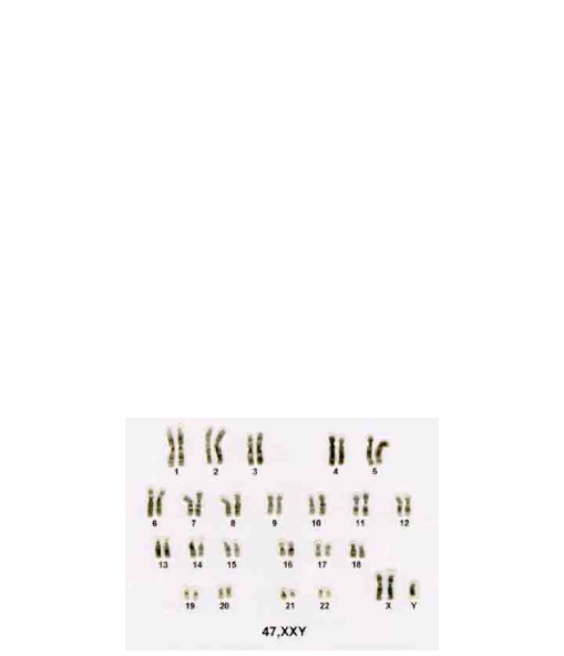 1 SÍNDROME DE KLINEFELTER São indivíduos do sexo masculino que apresentam cromatina sexual e cariótipo geralmente 47,XXY. Eles constituem um dentre 700 a 800 recém-nascidos do sexo masculino, tratando-se, portanto; de uma das condições intersexuais mais comuns. Outros cariótipos menos comuns são 48 XXYY; 48,XXXY; 49,XXXYY e 49,XXXXY que, respectivamente, exibem 1, 2. e 3 corpúsculos de Barr. Embora possam ter ereção e ejaculação. são estéreis, pois seus testículos são pequenos e não produzem espermatozóides devido à atro fia dos canais seminíferos. Outras características multas vezes presentes são: estatura elevada corpo eunucóide, pênis pequeno, pouca pilosidade no púbis e ginecomastia (crescimento das mamas). Além dessas alterações do sexo fenotípico os pacientes com Síndrome de Klinefelter apresentam uma evidente diminuição do nível Intelectual, sendo esta tanto mais profunda quanto maior for o grau da polissomia. Ao contrario do que ocorre na Síndrome de Turner, os pacientes Klinefelter apresentam problemas no desenvolvimento da personalidade, que é Imatura e dependente, provavelmente em decorrência de sua inteligência verbal diminuída. As dificuldades de relacionamento interpessoal incluem, por vezes, alterações no processo de Identificação psicossexual, envolvendo casos de transvestismo, homossexualismo e transexualismo. Fisicamente são quase indistinguíveis dos homens com cariótipo 46,XX, que foram mencionados no capítulo 8. Até 1960 a prova definitiva para o diagnóstico era fornecida pelo exame histológico dos testículos que, mesmo após a puberdade, revela ausência de células germinativas nos canais seminíferos; raros são os casos de Klinefelter férteis que, evidentemente, apresentam alguns espermatozóides normais. Atualmente a Identificação dos Klinefelter é assegurada pelo cariótipo e pela pesquisa da cromatina sexual. 2 Os pacientes são altos e magros, com membros inferiores relativamente longos. Após a puberdade os sinais de hipogonadismo se tornam óbvios. Os testículos permanecem pequenos e os caracteres sexuais secundários continuam subdesenvolvidos. Fonte: www.biomania.com.br 3 SÍNDROME DE KLINEFELTER A Síndrome de Klinefelter foi descrita pela primeira vez pelo doutor Harry Klinefelter, e é a causa mais frequente de hipogonadismo e infertilidade em indivíduos do sexo masculino. As vítimas da Síndrome de Klinefelter, pessoas do sexo masculino, têm um cromossomo X adicional (47,XXY), estatura elevada, algum desenvolvimento do tecido mamário e testículos pequenos. Incidência, Etiologia e Diagnóstico A incidência é de 1,18 em 1000 nascimentos. Destes, 80% têm o cariótipo 47,XXY; 10% são mosaicos (46,XY ou 47,XXY) e os restantes têm múltiplos cromossomas X ou Y. Mais de 10% dos homens com infertilidade e 3% daqueles com cancro da mama têm a síndrome de Klinefelter. Apesar de ser ainda desconhecido o mecanismo subjacente, a presença de um cromossoma X adicional interfere com a produção de testosterona. Este défice por sua vez reflecte-se no fenótipo destes indivíduos. Sendo algumas das características morfológicas comuns a outras situações, essas devem ser excluídas, mas o cariótipo permite um diagnóstico fidedigno. Apenas 18% dos casos de síndrome de Klinefelter têm outras anomalias, a maioria das quais diagnosticadas depois da puberdade. Evolução e sintomas É de esperar que indivíduos com a síndrome de Klinefelter tenham uma esperança média de vida normal, no entanto há a referir um aumento considerável de acidentes vasculares cerebrais (6 vezes superior à população geral), assim como na incidência do cancro (1,6%). O atraso da linguagem (51%), o atraso motor (27%) e problemas escolares (44%) complicam o desenvolvimento destas crianças e em alguns estudos estão descritos comportamentos anti-socias e psiquiátricos. Outros apontam para uma boa adaptação social e no trabalho. Outra complicação é o défice auditivo, no entanto não está descrito um aumento da frequência de infecções respiratórias na infância, ao contrário das doenças auto-imunes (diabetes mellitus; doenças do colagéneo). Tratamento e Prevenção das Complicações Esta síndrome raramente é diagnosticada no recém-nascido face à ausência de sinais específicos. O diagnóstico precoce permite a intervenção atempada, seja ela psicológica ou farmacológica. O rastreio de problemas visuais e auditivos, assim como a avaliação do desenvolvimento, devem ser realizados periodicamente. As anomalias constatadas devem ser seguidas em consultas de especialidade. Muitas vezes decteta-se a anormalia apenas quando problemas comportamentais, desenvolvimento pubertal anómalo ou infertilidade aparecem. A puberdade apresenta problemas particulares secundários aos problemas genitais já referidos. Para uma melhor resposta, o tratamento com testosterona deve ser iniciado pelos 11-12 anos de idade. Está demonstrada a sua eficácia numa percentagem importante de doentes, tanto em aspectos psicossociais como físicos. Por estes motivos estas crianças e adultos jovens devem ser acompanhados numa consulta de endocrinologia. Esta anomalia genética está associada à idade materna avançada. Num casal com um filho com a síndrome de Klinefelter, o risco de recorrência é igual ou inferior a 1%. O estudo familiar é habitualmente desnecessário, salvo em raras situações. Nem sempre a infertilidade é a regra. Caso se encontrem indivíduos férteis, deve ser oferecido o diagnóstico pré-natal a fim de excluir alterações cromossómicas uma vez que existe um risco acrescido das mesmas Fonte: pt.wikipedia.org 4 SÍNDROME DE KLINEFELTER Este síndrome descrito em 1942 por Klinefelter é a causa mais frequente de hipogonadismo e infertilidade em indivíduos do sexo masculino. Estes têm um cromossoma X adicional (47,XXY), estatura elevada, algum desenvolvimento do tecido mamário e testículos peq