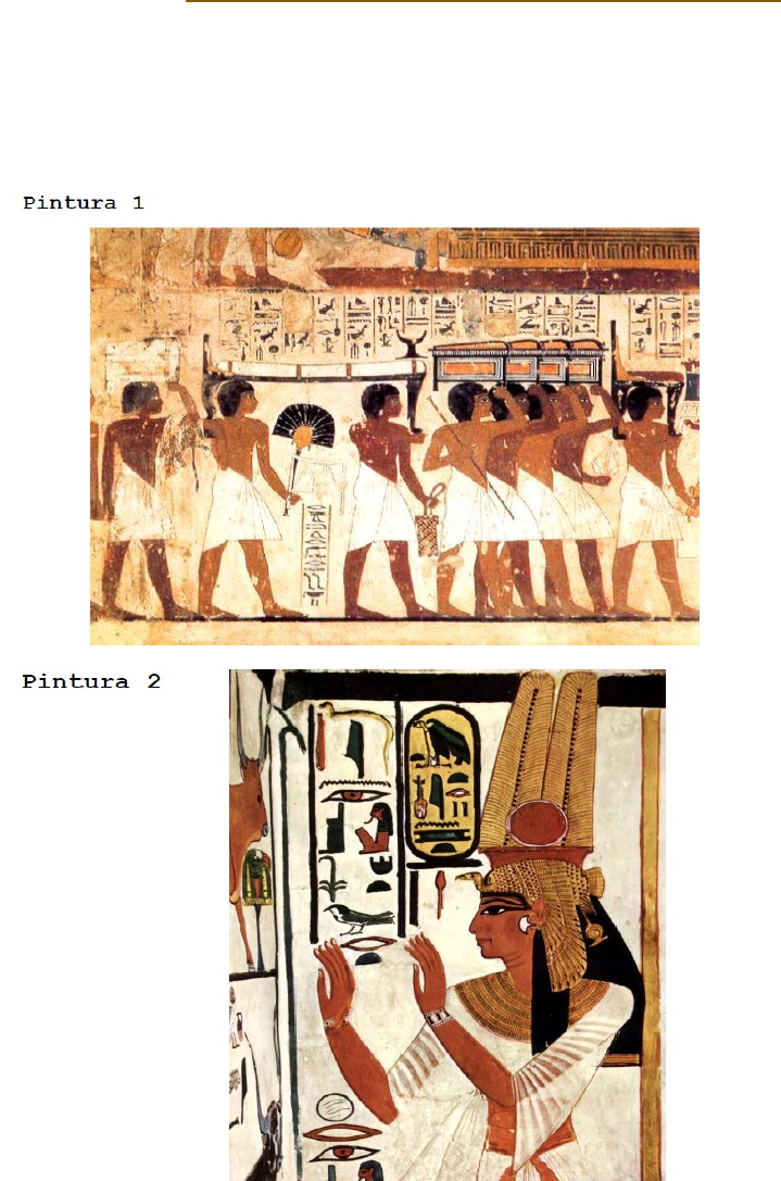 Colégio Pedro Virgínio Professor: Jadson Silva Turma: 7° Ano Componente Curricular: Artes Atividade de Revisão da II Unidade Observe as imagens de pinturas egípcias abaixo, analise bem todas as características e responda no caderno as questões a seguir: 1. Em que superfície você acha que essas pinturas foram feitas? 2. Descreva as cenas representadas nas duas pinturas: 3. Quais características da arte egípcia presentes no texto do material impresso você consegue identificar nessas pinturas? 4. Quais diferenças você observa entre as pinturas egípcias e as pinturas rupestres?