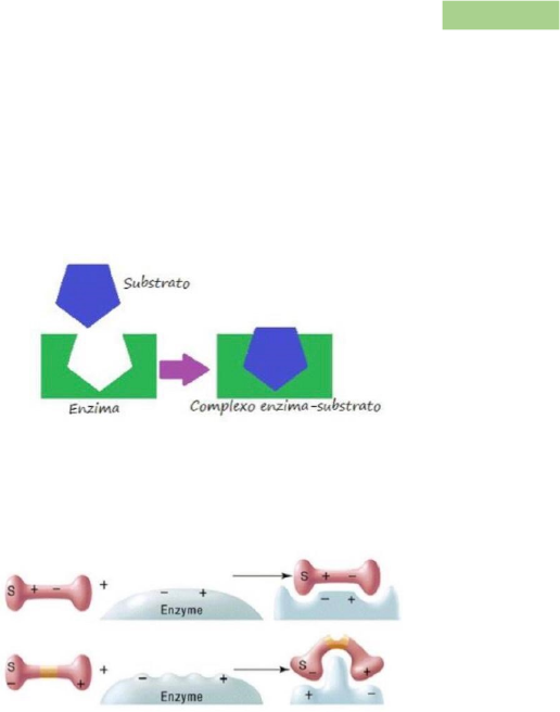 Mari Tatsch- Bioquímica I 2 Enzimas A manutenção da vida depende das reações químicas e para satisfazer as necessidades do organismo as reações precisam ser muito rápidas; Catalizadores eficientes e específicos= enzimas; Enzimas atuam de forma coordenada para realizar as reações que mantém as funções do organismo e a obtenção de energia; Viabilizar a atividade das células, quebrando moléculas ou juntando as para formar novos compostos. Com exceção de um pequeno grupo de moléculas de RNA com propriedades catalíticas, chamadas de RIBOZIMAS, todas as enzimas são PROTEÍNAS. Doenças relacionadas a saturação da enzima: quando ocorre o fornecimento de mais substrato à célula que quantidade de enzimas que a célula tem pra catalisar o substrato; Quando a enzima estiver ocupada, ela é incapaz de catalisar outro substrato. Nomenclatura Existem 3 métodos para nomenclatura enzimática: Nome Recomendado: usa o sufixo "ase" para caracterizar a enzima ex: Urease, Hexoquinase, Peptidase etc. Nome Usual: consagrado pelo uso ex: Tripsina, Pepsina, Ptialina (catalisam a quebra de proteínas específicas); Nome Sistemático: mais complexo, dá informações precisas sobre a função metabólica da enzima ex: ATP-Glicose-Fosfo-Transferase (Transferir fosfato da glicose para o ATP). Características Apresentam alto grau de especificidade; São altamente eficientes, acelerando a velocidade das reações (até mais de um milhão de vezes); São econômicas, reduzindo a energia de ativação; Longas cadeias de aminoácidos; Atuam sob condições favoráveis de pH, temperatura, polaridade do solvente e força iônica; Após desenvolver a reação a enzima se mantém inalterada e pronta para realizar outra reação; São sensíveis quanto as condições do meio. Exemplo: Ciclo de Krebs- reação em cadeia de catalisação pelas enzimas. Especificidade Uma enzima vai se ligar a só uma substância ou somente a um grupo restrito muito pequeno de substâncias; Importante par a função da enzima ou regulação de reações enzimáticas; Ocorre pelas interações de uma região da enzima e dos substratos- essa própria reação já gera energia; Permite um “encaixe” perfeito que orienta a posição e estabiliza os substratos = determina qual a reação química ocorrerá; O nível de especificidade pode variar, mas sempre estará presente; Relacionada diretamente com o formato tridimensional das enzimas; Resulta de múltiplas ligações fracas entre a enzima e o substrato. Modelo chave-fechadura: encaixe tridimensional entre enzima e substrato; Modelo de ajuste induzido (especificidade relativa): consiste no fato de não haver uma complementariedade pré-formada; Sítio ativo Região da molécula enzimática que participa da reação com o substrato; Pequena porção da enzima; Formado por uma fenda que permite a interação de resíduos de aa distantes com os substratos; As interações que ocorrem entre sítio ativo e substrato são não covalentes, sendo, portanto, fracas; Essas ligações geram energia livre de baixa intensidade. SÍTIO ATIVO= C + P Sitio catalítico: onde ocorre a ligação; Sitio de posicionamento: encaixe das cadeias laterais. Centro alostérico É uma região da proteína que não faz parte do centro ativo, mas que ao se modificar, modifica a forma do centro ativo; Nem toda a enzima possui centro alostérico; Ele fecha o sítio ativo, modifica a forma tridimensional da enzima; -Efetores alostéricos positivos: sua ligação à enzima melhora a atuação da enzima; - Efetores alostéricos negativos: sua ligação diminui a atividade da enzima- eliminação de fármacos. Cofator O cofator só precisa estar presente para formar o produto, mas não é ligado a nada. São grupos não proteicos ou íons metálicos que se ligam de forma fraca à enzima; Um cofator não é a mesma coisa que grupo prostético, pois faz parte da estrutura da enzima; Sem sua presença, a enzima não é funcional- apoenzima; Coenzima: é um elemento não proteico ex: vitaminas B2 e B5; Cofator: íons metálicos- minerais ex: Cu, Fe, Mg, Ca. Coenzimas Maioria deriva de vitaminas hidrossolúveis; Classificam-se em: transportadoras de hidrogênio e transportadoras de grupos químicos. Reações enzimáticas Para ocorrer uma reação enzimática, depende da variação da energia livre entre reagentes e produtos (espontâneo) ou da entrada de energia (não espontâneo); Reação exergônica: o substrato tem mais energia que os produtos (espontânea); Energia livre sobrando; Libera energia, geralmente calor. Reação endergônica: o substrato tem menos energia que o produto (não é espontânea); Precisa de acréscimo de energia; Consome energia. Ex: glicose em glicogênio, ajuda de catalizadores. Energia de ativação: moléculas para reagirem necessitam serem elevadas a um determinado nível de energia. Papel das enzimas As enzimas atuam sobre a velocidade das reações, mas não determinam a ocorrência de uma reação; Sem enzima: precisa de muita energia livre para alcançar a energia de ativação; Com enzima: vai acelerar a reação reduzindo a energia necessária. As reações químicas são complexas, é necessárias várias etapas de formação da reação em sequência. Com isso, as enzimas aceleram, organizam e controlam a sequência das reações. As enzimas também recuperam energia de outras reações para usar em uma reação endergônica; Coenzimas ajudam as enzimas a captarem energia. Cinética enzimática Velocidade da reação catalisada pela enzima; A velocidade é medida pela quantidade do desaparecimento do substrato; Alguns fatores podem alterar a velocidade de reação tornando mais rápida ou lenta; O estudo desses fatores permite definir como a atividade de determinada enzima é afetada pelo meio em que está inserida; Atividade enzimática: capacidade de transformar o substrato em produto dentro de uma unidade de tempo; Vai medir o quão uma enzima é eficiente, su