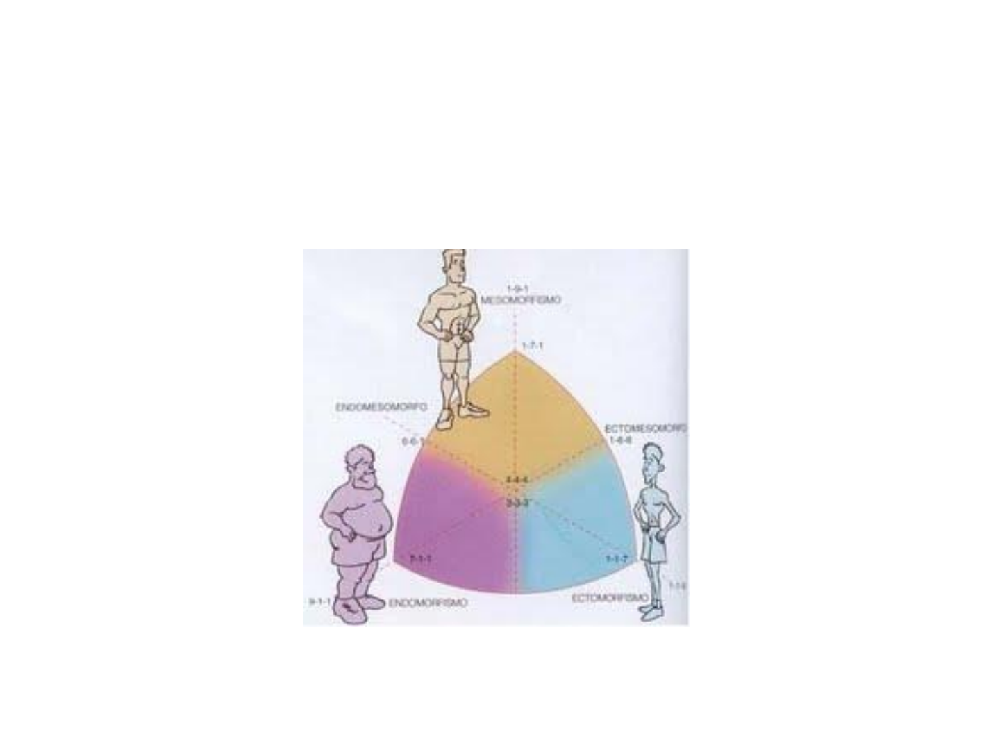Somatotipo Fonte: Material do prof. Sandro de Souza Somatotipo • Tipo de classificação dos seres humanos em função da constituição física (Morfológica) • Três componentes primários (Sheldon, 1940) – Endomorfia • Arredondamento das curvas corporais – Mesomorfia • Grande relevo muscular aparente – Ectomorfia • Linearidade corporal PRESENTE PRINCIPAL APLICAÇÃO ESPORTE Somatotipo • Não há indivíduos que possuam uma classificação única, mas sim um componente com maior ou menor tendência sobre o outro. • Heath & Carter (1975) desenvolveram um modelo para avaliação de homens e mulheres que compreendia valores entre ½ e 12. A ordem de classificação segue sempre com o primeiro valor referente a endomorfia, o segundo à mesomorfia e o último valor, referente a ectomorfia. Endomorfia PASSO 1: Aferir as dobras tricipital, subescapular e suprailíaca Passo 2: Realizar o somatório Σ = TRI + SUBESC + SUPILI Passo 3: Realizar a correção de proporcionalidade: Passo 4: Mesomorfia PASSO 1: Aferir estatura, diâmetro do úmero, diâmetro do fêmur, circunferência de braço e e circunferência de perna Passo 2: Corrigir o valor da circunferência de braço e de perna subtraindo o valor das dobras cutâneas tricipital/10 e de perna/10 Passo 3: Diâmetros Ectomorfia Passo 1: Passo 2: Resumo • Dobras – Tricipital – Subescapular – Supra ilíaca – Perna • Diâmetros – Úmero – Fêmur • Perímetros – Braço – Perna • Massa corporal • Estatura MEDIDAS ANTROPOMÉTRICAS Somatotipo - Esporte ESPORTE ENDO MESO ECTO Eixo X Eixo Y Basquete A 2,4 5,0 3,0 0,6 4,6 Basquete P 2,8 3,9 3,7 0,9 1,3 Futebol A 2,1 4,9 2,7 0,6 5,0 Futebol MC 2,5 5,0 2,5 0,0 5,0 Judô ↑ pes 2,5 6,3 1,9 -0,6 8,2 Salto Alt 1,6 3,7 4,2 2,6 1,6 Lanç Martelo 4,4 7,2 0,5 -3,9 9,5 Ciclismo 1,9 4,7 2,9 1,0 4,6 Martinez-Sanz (2011) Masculino Somatocarta X Y X= Ectomorfia - Endomorfia Y= (2* Mesomorfia) - (Ectomorfia + Endomorfia) Somatocarta X Y X= Ectomorfia - Endomorfia Y= (2* Mesomorfia) - (Ectomorfia + Endomorfia) X = 1,4 – 4 = -2,6 Y = (5 x 2) – (1,4 + 4) = Y = 4,6 Somatotipo - Esporte Palacios (2001) Somatotipo - Esporte Palacios (2001)