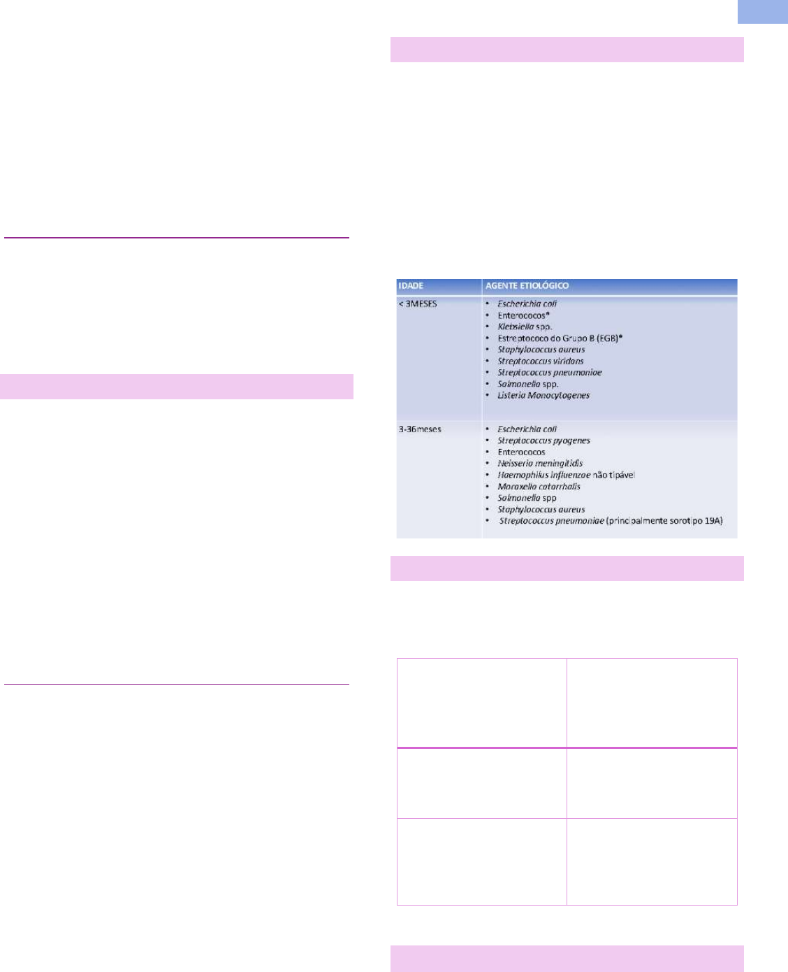 1 5º SEMESTRE 2021.2 – UNIFTC PEDIATRIA JULIANA OLIVEIRA FEBRE SEM SINAIS LOCALIZATÓRIOS ➔ Definição: É uma febre que dura menos que 7 dias, e que após história clínica e exame físicos detalhados, não se tem um foco estabelecido. ATENÇÃO É importante entender que FSSL é diferente de febre prolongada de origem obscura, à qual é caracterizada por ser uma febre que tem duração mínima de 3 semanas, onde já foi feita toda a história clínica, avaliação e exames inicias sem conseguir defini-la. EPIDEMIOLOGIA ▪ A maioria das doenças que cursam com febre e mais nada vão ser chamadas de doença viral benigna autolimitada a famosa “virose”. ▪ 20% dos casos de febre não se identifica um foco. ▪ 80% se identifica como otite, quadro de IVAS associado. ▪ 25% dos neonatos apresentam FSSL. ▪ 6 a 15% de 29 dias a 3 meses. ▪ 5 a 7% de 3 a 36 meses de idade tem FSSL. Mas qual o problema? O problema é que a criança que apresenta FSSL pode ter uma doença bacteriana grave, logo, é primordial afastar essa doença. FEBREFOBIA Consiste no medo que os pacientes e alguns profissionais de saúde tem da febre, no entanto, é preciso ver a febre como um aviso de que algo está acontecendo no corpo, podendo ser algo de etiologia inflamatória, infecciosa, etc. Os quadros de febre causam nos cuidadores a necessidade de controlar aquela temperatura, sem enxergar o papel benigno da febre que é a ativação da cascata inflamatória e a resposta a uma doença infecciosa em razão disso existe um uso abusivo de antipiréticos e prescrições médicas que tangenciam evidência científica. A febre por si só não tem orientação para fazer controle da temperatura, apenas se vier acompanhada de um outro fator como p.ex. choro prolongado, sono agitado, grau de irritabilidade. Atualmente não é mais indicado que se utilize compressas ou banhos gelados para fazer resfriamento com a intenção de diminuir a febre. Deve-se fazer o uso do antipirético quando se tem: Febre + algum outro sintoma. PRINCIPAIS AG. ETIOLÓGICOS: Para os RN de até 28 dias tem-se dois grupos de maior importância como os enterococos e os estreptococos do grupo B. As vacinas reduziram a ocorrência de FSSL principalmente por conta da cobertura vacinal. Há uma prevalência da streptococcus pneumoniae sorotipo 19 A na faixa de 3 a 36 meses em razão da ausência de vacinas que façam a sua cobertura, p.ex. não está inclusa no pneumococo 10. TRIANGULO PEDIÁTRICO Isso deve ser feito quando a criança entra na sala, deve-se averiguar se há sinais de adoecimento visualmente presentes. Aparência geral Aparência Interatividade Consolabilidade Olhar Choro/fala Respiração Sons anormais Posição anormal Retrações Aparência da pele Palidez Moteamento (rendilhamentos) Cianose HISTÓRIA CLINICA ➔ Cronologia da febre: Quando começou, qual a temperatura mais alta, qual medicamento utilizou, quando foi a última medicação? teve contato com alguém doente? tem algum sintoma associado? Tá espirrando? Tá tossindo? O xixi está diferente? Tá chorando para fazer xixi? Como está o cartão vacinal? 2 5º SEMESTRE 2021.2 – UNIFTC PEDIATRIA JULIANA OLIVEIRA (averiguar, mas quando ñ for possível deve-se colocar “referido completo” ou “referindo incompleto”) Para se dizer que a vacinação para pneumococo, meningite ou haemophilus completo, é necessário que se tenha pelo menos 2 doses e para isso a criança precisa estar no 5º mês EXAME FÍSICO Deve ser feito de maneira completa, procurando linfonodos, olhar ouvido, nariz, garganta, AR, ACV, sinais de alteração neurológica, abdome, marcha, sinais sugestivos de meningite. Se diante da história clínica + exame físico não encontrar nada que justifique a febre, estamos diante de uma FSSL. Quando alguma mãe chegar e referir que “o dente da criança está nascendo”, deve-se alertá-la que o nascimento do dente não está associado a picos febris, ou seja, temp superior a 37,5ºC, logo, o nascimento do dente não é considerado como uma causa de febre. A criança que foi vacinada com vírus atenuado, normalmente a febre vem algumas horas após a aplicação, no caso da vacina com vírus vivo a febre tende a aparecer a partir do 3º ou 4º dia com picos febris. O QUE É IMPORTANTE AFASTAR? É importante afastar as doenças bacterianas graves, sendo essas as quatro principais a serem afastadas. ▪ ITU: - É a mais frequente das FSSL principalmente nos lactentes. - Chama-se bastante atenção para a ITU, pois, quando não tratada adequadamente pode ocasionar lesão renal, por isso, deve-se investigar bem na FSSL se há queixas nesse sentido. Não se deve indicar sumário de urina para todo mundo, depende da faixa etária. Há um fator de risco maior para ITU em meninos brancos que não fizeram correção da fimose apresentando febre superior a 39ºC e não se tem outro foco, pensa-se em ITU e também em meninas brancas menores de 12 meses que fazem a temp acima de 39ºC e não tem nenhum outro foco infeccioso, também se deve pensar em ITU. Solicita-se sumário de urina e urocultura. ▪ Bacteremia oculta: Faz-se história clínica, exame físico, exames complementares, hemograma, sumário de urina, raio x de tórax e ao fazer a cultura tem-se uma hemocultura positiva. Logo, não se tem um foco, mas tem uma hemocultura positiva. ▪ Meningite: - Avalia-se a criança para indicar ou não a coleta de líquor para pesquisa de meningite, feito rotineiramente pela criança RN febril é hospitalizada e para ela é solicitado hemograma, hemocultura, sumário de urina, urocultura, rx de tórax e líquor, ou seja, para o RN é obrigatório a solicitação de líquor, no entanto, acima disso (29 e 90 dias) é baseado em uma estratificação de risco, sendo alto ou baixo risco para doença bacteriana grave e superior à 3 meses deve-se ter algum sinal de meningite como rigidez de nuca, irritabilidade. Crianças com a fontanela aberta não fazem rigide