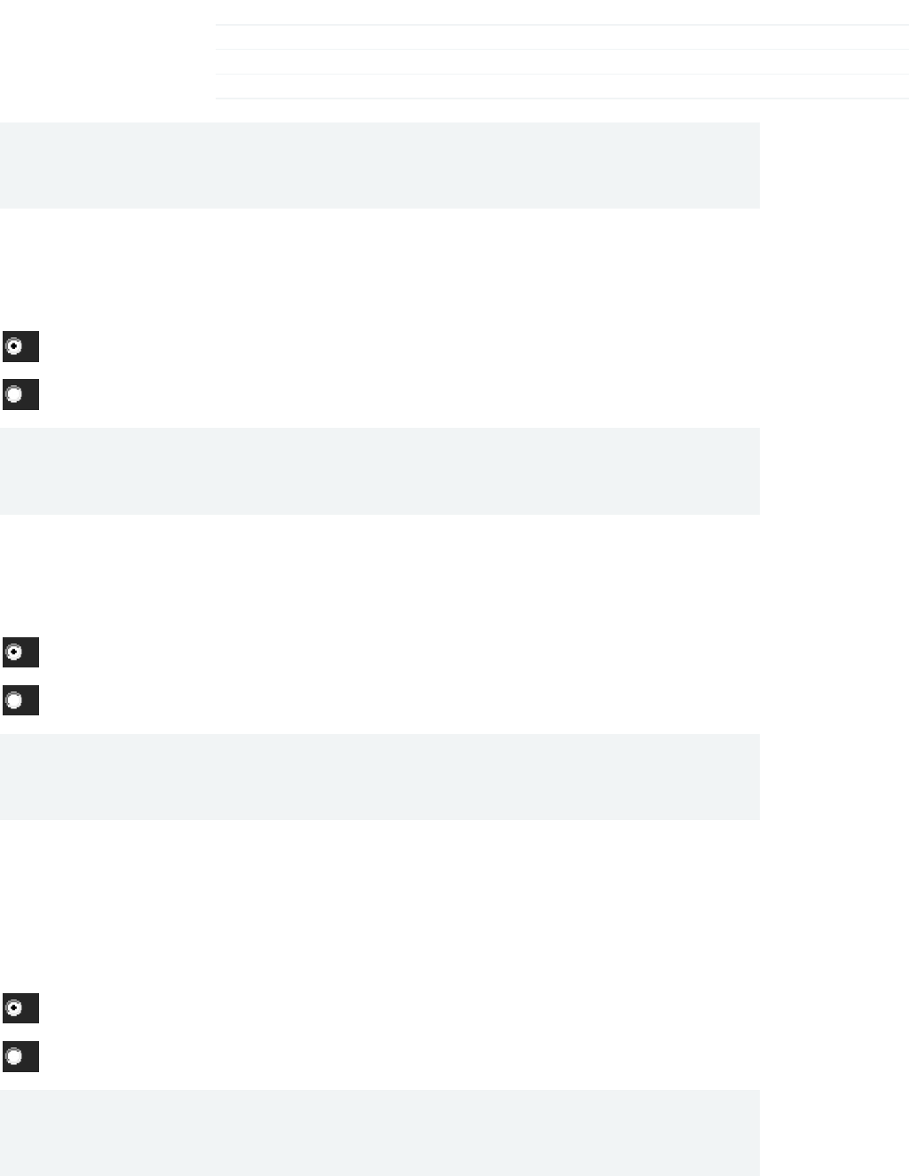 Iniciado em quarta, 18 Ago 2021, 14:57 Estado Finalizada Concluída em quarta, 18 Ago 2021, 14:59 Tempo empregado 2 minutos 40 segundos Avaliar 10,00 de um máximo de 10,00(100%) Questão 1 Correto Atingiu 2,00 de 2,00 Texto da questão O orçamento flexível nos oferece a oportunidade de conhecer os custos de produção dado vários níveis de atividades. Escolha uma opção: Verdadeiro Falso Questão 2 Correto Atingiu 2,00 de 2,00 Texto da questão O orçamento flexível possibilita a correção dos custos, unidades a serem produzidas, preços bem como o desempenho completo da empresa. Escolha uma opção: Verdadeiro Falso Questão 3 Correto Atingiu 2,00 de 2,00 Texto da questão Podemos obter o orçamento flexível em três etapas básicas, são elas: identificar a quantia real de produção; calcular o orçamento flexível para receitas com base no preço de venda orçado e a quantia real de produção e calcular o orçamento flexível para os custos com base no custo variável. Escolha uma opção: Verdadeiro Falso Questão 4 Correto Atingiu 2,00 de 2,00 Texto da questão O orçamento flexível é uma ferramenta extremamente importante para as empresas na medida em que possibilita conhecer a posteriori (após o ocorrido) seu desempenho, seja ele favorável ou desfavorável. Escolha uma opção: Verdadeiro Falso Questão 5 Correto Atingiu 2,00 de 2,00 Texto da questão A vantagem do orçamento flexível sobre o orçamento estático é que enquanto o primeiro possibilita avaliar o desempenho da empresa dados os níveis de produção, o segundo não nos oferece tal possibilidade. Escolha uma opção: Verdadeiro Falso