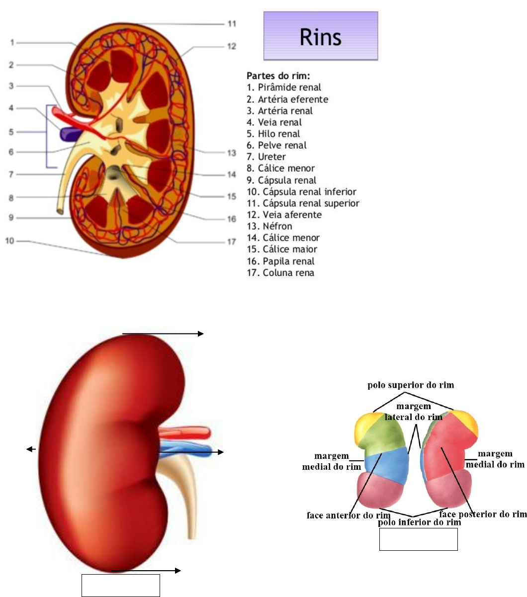 ANATOMIA RENAL Anatomia Externa do Rim Margem Medial Margem Lateral Rim esquerdo Polo Superior Polo Inferior Rim direito Face Anterior Artéria Renal Veia Renal Pelve Renal Ureter Córtex Renal Pirâmide Renal Coluna Renal (parte do córtex que está entre as pirâmides) Hilo Renal Medula Renal Papila Renal Os cálices renais menores se juntam e formam os cálices renais maiores, os quais se juntam e formam a pelve renal, e a sua continuação é o ureter. Ureter