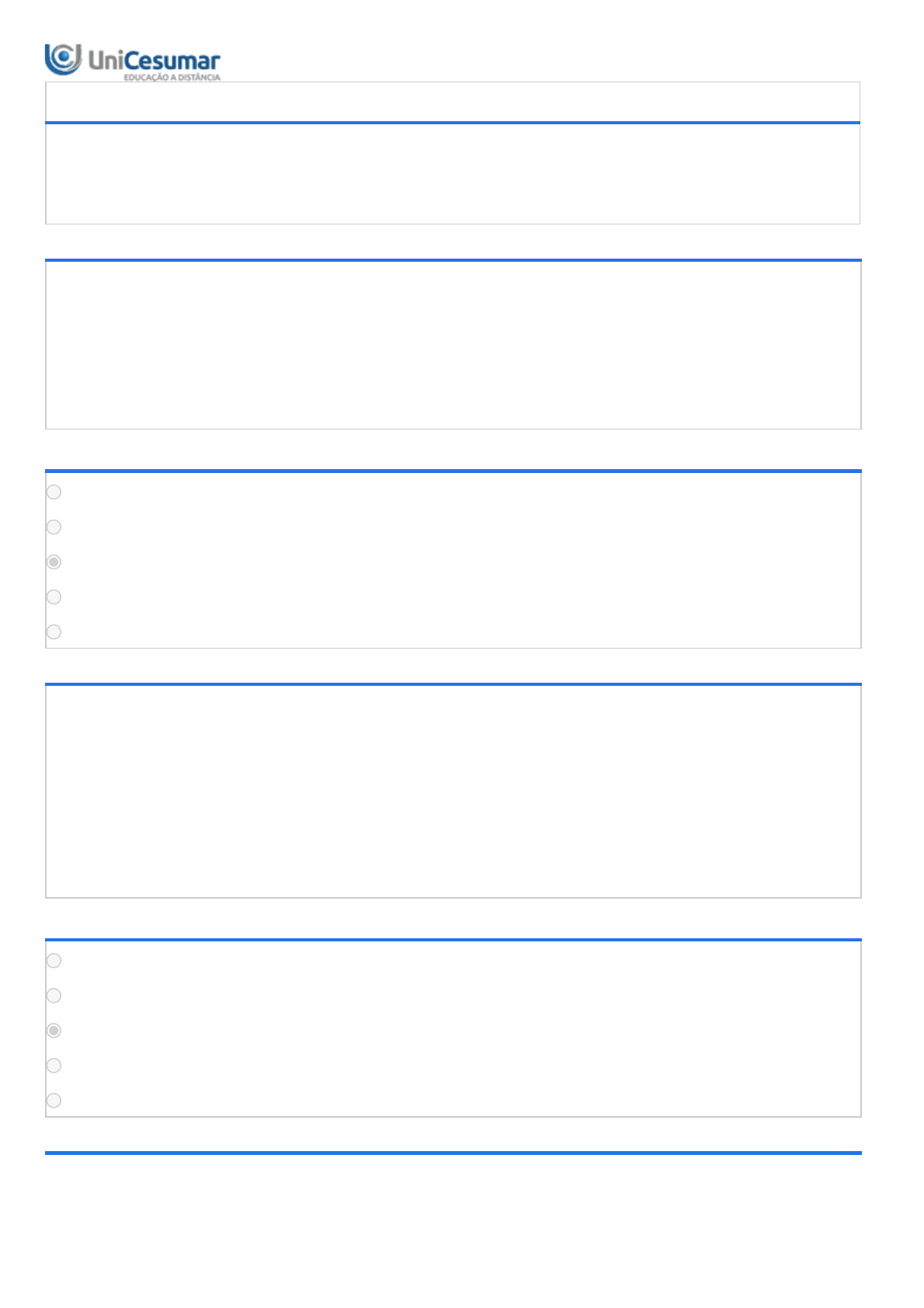 05/06/2021 Unicesumar - Ensino a Distância 1/4 NIVELAMENTO - AE3 - Nivelamento de Anatomia - 52/2021 Período:03/05/2021 08:00 a 27/06/2021 23:59 (Horário de Brasília) Status:ABERTO Nota máxima:0,50 Gabarito:Gabarito será liberado no dia 28/06/2021 00:00 (Horário de Brasília) Nota obtida: 1ª QUESTÃO Depois de mastigado e misturado à saliva, o alimento se transforma em um bolo alimentar, que é empurrado pela língua para a orofaringe (após passar pelo istmo das fauces). Posteriormente, este alimento atinge um tubo fibromuscular que liga a faringe ao estômago. ALMEIDA, Felipe Natali. Nivelamento Anatomia.Maringá - PR.:UniCesumar, 2017. Assinale a alternativa que representa o tubo fibromoscular, de acordo com a descrição acima: ALTERNATIVAS Ileo. Jejuno. Esôfago. Duodeno. Apêndice cecal. 2ª QUESTÃO A função principal do sistema digestório é realizar a digestão dos alimentos. O sistema digestório pode ser dividido em dois grandes grupos de estruturas: o sistema tubular e as glândulas anexas. O intestino delgado que faz parte desse sistema é um tubo com pouco mais de 6m de comprimento por 4 cm de diâmetro e pode ser dividido em três regiões. ALMEIDA, Felipe Natali. Nivelamento Anatomia.Maringá - PR.:UniCesumar, 2017. Sobre estas regiões, assinale a alternativa que contemple corretamente o nome das três regiões e a sequência correta de seu surgimento no intestino delgado: ALTERNATIVAS Ileo, jejuno e duodeno. Duodeno, ileo e jejuno. Duodeno, jejuno e ileo. Colo ascendente, colo transverso e colo descendente. Colo descendente, colo transverso e colo ascendente. 3ª QUESTÃO 05/06/2021 Unicesumar - Ensino a Distância 2/4 O diencéfalo é subdividido em 4 regiões: tálamo, hipotálamo, epitálamo e subtálamo. Dentre estas regiões, uma delas é o principal centro integrador das atividades dos órgãos viscerais, sendo um dos principais responsáveis pela homeostase corporal. Também faz ligação entre o sistema nervoso e o sistema endócrino, atuando na ativação de diversas glândulas endócrinas. E adição controla a temperatura corporal, regula o apetite e o balanço de água no corpo e está envolvido na emoção e no comportamento sexual. ALMEIDA, Felipe Natali. Nivelamento Anatomia. Maringá - PR.:UniCesumar, 2017. Diante do exposto acima, assinale, a seguir, a alternativa que representa a região responsável por essas funções: ALTERNATIVAS Tálamo e Epitálamo. Hipotálamo. Subtálamo. Epitálamo. Tálamo. 4ª QUESTÃO “Glândulas anexas, que não apresentam contato direto com o alimento consumido, são fundamentais para uma digestão adequada”. ALMEIDA, Felipe Natali. Nivelamento Anatomia.Maringá - PR.:UniCesumar, 2017. Analise a figura abaixo e assinale a alternativa que representa, na sequência correta, as duas glândulas anexas. ALTERNATIVAS 05/06/2021 Unicesumar - Ensino a Distância 3/4 1: Pâncreas; 2: Vesícula biliar. 1: Vesícula biliar; 2: Pâncreas. 1: Glândula salivar; 2: Pâncreas. 1: Vesícula biliar; 2: Glândula salivar. 1: Glândula salivar; 2: Glândula biliar. 5ª QUESTÃO Localizado entre o encéfalo e a medula espinal, e ventralmente (em frente) ao cerebelo está uma estrutura do sistema nervoso central que é subdividida em três partes: bulbo, ponte e mesencéfalo. ALMEIDA, Felipe Natali. Nivelamento Anatomia. Maringá- PR.:UniCesumar, 2017. Sabendo disso, assinale a alternativa, a seguir, que representa a denominação anatômica desta estrutura: ALTERNATIVAS Lobo límbico. Tronco cerebral. Córtex cerebral. Medula cerebral. Raiz da medula. 6ª QUESTÃO Adaptado de: ALMEIDA, Felipe Natali. Nivelamento Anatomia.Maringá- PR.:UniCesumar, 2017. Após analisar a imagem acima, assinale a alternativa que nomeia a respectiva glândula endócrina: ALTERNATIVAS 05/06/2021 Unicesumar - Ensino a Distância 4/4 Hipotálamo. Adrenal. Tireóide. Hipófise. Gonadas.