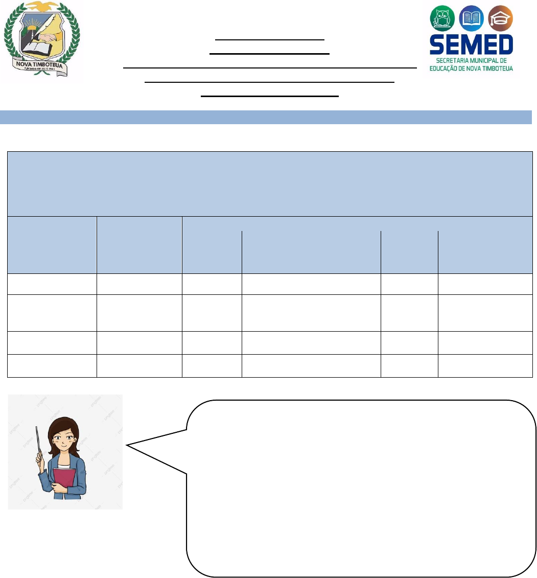 ESTADO DO PARÁ PODER EXECUTIVO PREFEITURA MUNICIPAL DE NOVA TIMBOTEUA SECRETARIA MUNICIPAL DE EDUCAÇÃO CNPJ: 18.742.354/0001-77 LINGUAGENS / 9º ANO PLANILHA DE CORREÇÃO DO CADERNO Nº 04 VAMOS CONVERSAR UM POUQUINHO SOBRE ESSE TEMA: Na área de linguagens, a comunicação se faz presente de diversas maneiras, mas vamos estudá-la a partir do foco LINGUAGEM E SUAS FORMAS COMUNICATIVAS. As formas de linguagem se manifestam em diferentes circunstâncias comunicativas, sejam elas verbais ou não verbais, como por exemplo, os textos humorísticos, as placas de trânsito, as charges, os cartuns, as histórias em quadrinhos, as quais exploram essa dualidade: verbal associada a não verbal. Outro exemplo de manifestação da linguagem que muito trabalha essa dualidade são os gêneros NOME DO(A) ALUNO(A): ________________________________________________________________________________________________________________ TURMA: 9º TURNO:__________________________ DATA: ________________________ CADERNO Nº 04 ÁREA DE CONHECIMENTO: LINGUAGENS PROFESSOR NOME COMPONENTE CURRICULAR RESULTADO GERAL CADERNO PONTUAÇA O ATIVIDADES (PORT; PROJ. LEITURA; INTER. ON-LINE) NOTA FINAL ASSINATURA L. PORTUGUESA EDUCAÇÃO FÍSICA ARTE LÍNGUA INGLESA Olá, querido aluno, querida aluna! Chegamos ao nosso quarto caderno. Aqui abordaremos o tema “COMUNICAÇÃO”, presentes nas diversas áreas do conhecimento. Veremos agora como podemos perceber a comunicação no campo da Língua Portuguesa, da Arte, da Educação Física e da Língua Inglesa. Vamos lá! jornalísticos e publicitários, como por exemplo o gênero anúncio publicitário, o qual estudaremos a partir de agora em Língua Portuguesa. NO CAMPO DA LÍNGUA PORTUGUESA: Objetivo de aprendizagem: 1.1. Analisar os elementos linguísticos e não linguísticos presentes nos textos nos diversos contextos sociais fazendo uso dos mesmos na elaboração de textos diversos. Habilidade: (EF69LP17) Perceber e analisar os recursos estilísticos e semióticos dos gêneros jornalísticos e publicitários, os aspectos relativos ao tratamento da informação em notícias, como a ordenação dos eventos, as escolhas lexicais, o efeito de imparcialidade do relato, a morfologia do verbo, em textos noticiosos e argumentativos, reconhecendo marcas de pessoa, número, tempo, modo, a distribuição dos verbos nos gêneros textuais (por exemplo, as formas de pretérito em relatos; as formas de presente e futuro em gêneros argumentativos; as formas de imperativo em gêneros publicitários), o uso de recursos persuasivos em textos argumentativos diversos (como a elaboração do título, escolhas lexicais, construções metafóricas, a explicitação ou a ocultação de fontes de informação) e as estratégias de persuasão e apelo ao consumo com os recursos linguístico- discursivos utilizados (tempo verbal, jogos de palavras, metáforas, imagens). O QUE É UM ANÚNCIO PUBLICITÁRIO? Disponível em: https://www.google.com/search?rlz=1C1GCEU_pt-BRBR841BR841&sxsrf, acesso em :20 de abr. de 2020. O anúncio publicitário é um gênero que tem como finalidade convencer o leitor sobre uma ideia, a boa qualidade de um produto ou marca, e até mesmo interferir no comportamento de quem recebe a mensagem. São várias as características de um anúncio, entre elas: linguagem simples, linguagem verbal e não verbal, textos curtos (frase curta que se torna a identificação daquele produto), uso de imagens, cores e fotografias, verbo no imperativo, vícios de linguagens, ironia, muita criatividade e humor. Essas são algumas das formas usadas para conseguir atingir a intencionalidade do anunciante, que é persuadir o seu público-alvo. https://www.google.com/search?rlz=1C1GCEU_pt-BRBR841BR841&sxsrf AGORA, É A SUA VEZ: Leia com muita atenção o anúncio abaixo para responder a questão 01: QUESTÃO 01 (EF69LP17): Observe que no anúncio acima aparece a frase “MUDANÇAS CLIMÁTICAS E AQUECIMENTO GLOBAL”, em letras maiúsculas, um recurso usado para chamar atenção do leitor. Marque com um X as imagens que tratam do mesmo tema: A) ( ) B) ( ) C) ( ) D) ( ) QUESTÃO 02 (EF69LP17): Que tal agora você construir o seu próprio anúncio publicitário? Com a ajuda de um familiar, preencha os espaços em branco. Observe o exemplo abaixo: ____________________________________________________________ TÍTULO ____________________________________________________________ ____________________________________________________________ SLOGAN (Frase a respeito do que está sendo anunciado, de fácil memorização) _____________________________ LOGOTIPO (Nome do anunciante: marca/empresa/instituição)
