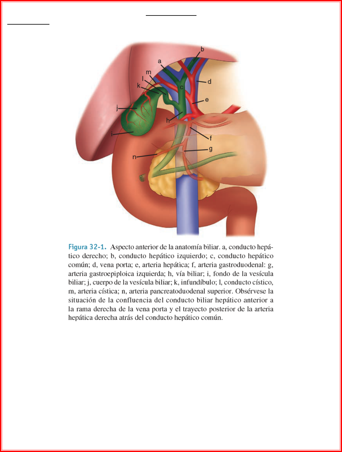 VESÍCULA BILIAR Vesícula Biliar 1. Que es a. Un saco en forma de pera que se encuentra en una fosa en la superficie inferior del hígado b. De 7 a 10 cm de largo c. De 30 a 50 ml de capacidad de almacenamiento 2. División anatómica a. Fondo b. Cuerpo c. Infundíbulo d. Cuello 3. Vascularización a. Oxigenación i. Arteria cística, rama de la arteria hepática derecha (90%) b. Retorno venoso i. Venas que desembocan en el Hígado VESÍCULA BILIAR @ohnestern MedicalStudent.Blog 4. Conductos biliares a. Características anatómicas i. Están recubiertos por una mucosa cilíndrica con varias glándulas mucosas en el colédoco b. Clasificación i. Conducto hepático derecho ii. Conducto hepático izquierdo iii. Conducto hepático común iv. Conducto cístico 1. Variaciones a. A. Unión baja entre el conducto cístico y el conducto hepático común. b. B. Conducto cístico adherido al conducto hepático común. c. C. Unión alta entre los conductos cístico y hepático común. d. D. Drenaje del conducto cístico en el conducto hepático derecho. e. E. Conducto cístico largo que se une al conducto hepático común detrás del duodeno. f. F. Ausencia de conducto cístico. g. G. Conducto cístico con cruzamiento posterior respecto del conducto hepático común y unión a él en la parte anterior. h. H. Conducto cístico anterior en relación con el conducto hepático común y se une a éste en la parte posterior. VESÍCULA BILIAR @ohnestern MedicalStudent.Blog v. Conducto colédoco 1. Que es a. Es un conducto biliar que se desemboca en una porción del duodeno a través de una estructura muscular, el esfínter de Oddi. 2. Proporción anatómica a. De 7 a 11 cm de longitud b. De 5 a 10 mm de diámetro c. No hay capa muscular definida c. Vascularización i. Arteria gastroduodenal ii. Arteria hepática derecha 5. Fisiología a. Bilis i. Composición 1. General a. Agua b. Electrólitos c. Sales biliares d. Proteínas e. Lípidos (sintetizados por el hígado) i. Colesterol ii. Fosfolípidos f. Pigmentos biliares g. Sodio h. Potasio i. Calcio j. Cloro k. El pH es alcalino VESÍCULA BILIAR @ohnestern MedicalStudent.Blog 2. Solutos orgánicos a. Bilirrubina b. Sales biliares c. Fosfolípidos d. Colesterol ii. Producción 1. Es producida en el hígado 2. Su promedio de producción es de 500 a 1000 ml por día iii. Reabsorción 1. Cerca de 95% de la bilis es reabsorbida por el intestino y vuelve al hígado 2. Cerca de 5% se excreta en las heces b. Función i. Absorción 1. Almacenar bilis ii. Secreción 1. Regular flujo de bilis c. Esfínter de Oddi i. Regula el flujo de bilis (y jugo pancreático) ii. Evita regurgitación del contenido del intestino 6. Estudios diagnósticos a. Pruebas sanguíneas b. Ecografía c. Colocistografía oral d. Gammagrafía biliar con radionúclidos e. Tomografía computarizada f. Colangiografía transhepática percutánea g. Imagen de resonancia magnética h. Colangiopancreatografía retrógrada endoscópica i. Ecografía endoscópica 7. Patologías a. Enfermedad por cálculos biliares i. Prevalencia e incidencia 1. Enfermedad bien común 2. Solamente 3% de las personas que tienen cálculos biliares son evolucionan para sintomático 3. Factores de riesgo a. Obesidad b. Embarazo c. Factores dietéticos d. Enfermedad de Crohn e. Resección ileal terminal f. Operación gástrica g. Esferocitosis hereditaria h. Enfermedad de células falciformes y talesemia 4. Tres veces más probable de ocurrir en mujeres ii. Evolución 1. Generalmente, asintomático. 2. Si sintomático genera a. Cólico biliar por obstrucción del conducto cístico VESÍCULA BILIAR @ohnestern MedicalStudent.Blog 3. La enfermedad de cálculos biliares puede empeorar si hay a. Colecistitis aguda b. Coledocolitiasis con o sin conlangitis c. Pancreatitis por cálculo biliar d. Fístula colecistocoledociana e. Fístula colecistoduodenal f. Colecistoentérica g. Carcinoma de la vesícula biliar iii. Formación de cálculos biliares 1. Ocurre por insolubilidad de elementos sólidos a. Cálculos de colesterol b. Cálculos de pigmento iv. Colecistitis crónica (Cólico biliar) 1. Que es a. Es cuando un cálculo obstruye el conducto cístico 2. Cuadro clínico a. Dolor súbito e intenso en epigastrio o cuadrante superior derecho con ligera sensibilidad eb ka exploración física b. Irradia a la i. Espalda ii. Entre las escápulas c. Náuseas d. Vómitos e. Dolor episódico 3. Estudio diagnóstico a. Para hacer el diagnóstico correcto es necesario tener en cuenta b. Síntomas típicos c. Imágenes i. Ecografía (standart) ii. Radiografías iii. Tumografía Computarizada 4. Tratamiento a. Cirugía i. Colecistectomía laparoscópica electiva b. Mientras espera la cirugía i. Evitar grasas en la dieta ii. Comidas abundantes v. Colecistitis aguda 1. Patogenia a. En 90 a 95% ocurre por causa de cálculos biliares b. En <1% ocurre por causa de tumores 2. Manifestaciones clínicas a. Por vuelta de 80% de los pacientes que tienen Colecistits Aguda tuvieron Colecistitis Crónica (Cólico biliar) b. Síntomas típicos i. Dolor en 1. Cuadrante superior derecho 2. Epigastrio ii. Irradia a la VESÍCULA BILIAR @ohnestern MedicalStudent.Blog 1. Parte superior derecha de la espalda 2. Área interescapular 3. Estudio diagnóstico a. Ecografía 4. Diagnóstico diferencial a. Úlcera péptica (con o sin perforación) b. Pancreatitis c. Apendicitis d. Hepatitis e. Perihepatitis (Síndrome de Fitz-hugh-Curtis) f. Isquemia del miocardio g. Neumonía h. Pleuritis i. Herpes zoster del nervio intercostal 5. Tratamiento a. Cirugía i. Colecistectomía b. Fármacos i. Antibióticos ii. Analgésicos VESÍCULA BILIAR @ohnestern MedicalStudent.Blog vi. Coledocolitiasis 1. Manifestaciones clínicas a. Provocan obstrucción (completa o incompleta) b. Parecido con Cólico Biliar 2. Estudio diagnóstico a. Ecografía b. Colangeiografía de resonancia magnética (MRC) c. Colangeiografía endoscópica (standart) 3. Tratamiento a. Cirugía Colecistectom