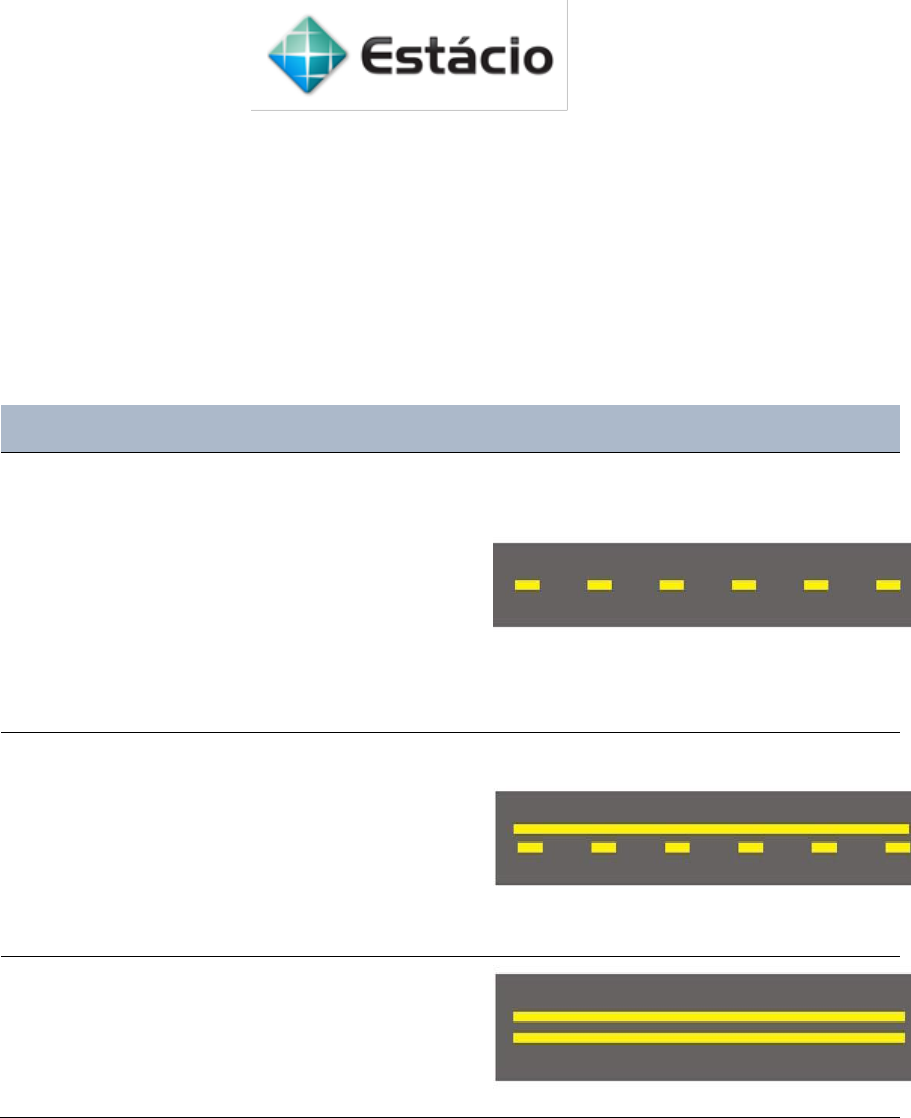 1 Sinalização Horizontal Ela é classificada em: Marca longitudinal: tem por objetivo dar ao condutor do veículo sua exata posição na via e estabelecer regras de ultrapassagem, mudança de faixa, conversões etc. De acordo com sua função, as marcas longitudinais são subdivididas nos seguintes tipos: Subclassificação Descrição Ilustração Linha secionada Separa as correntes de tráfego e, em condições favoráveis, pode ser cruzada para mudança de faixa, quando a faixa ao lado é de mesmo sentido, ou para ultrapassagem quando a via é de sentido duplo. Linha dupla contínua/secion ada Veta o cruzamento dos veículos que estão ao lado da linha contínua, permitindo o cruzamento dos veículos que estão do lado da linha secionada. Linha dupla contínua Proíbe o cruzamento por qualquer dos lados. Marca transversal: tem por objetivo informar e advertir o condutor do veículo de algum evento que possa interferir no fluxo livre dos veículos em uma via. Desse modo, ordena os deslocamentos frontais e os harmonizam com os deslocamentos de outros veículos e dos demais pedestres, ou seja, adverte os condutores sobre a necessidade de reduzir a velocidade e indica a posição de parada, de modo a garantir sua própria segurança e a dos demais usuários da via. Destacamos alguns exemplos de marcas transversais: 2 Marca Ilustração Linhas de retenção Linhas de estímulo à redução de velocidade Faixas de travessia de pedestres 3 Marca de canalização: também chamada de zebrado ou Sargento, orientam os fluxos de tráfego de uma via, direcionando a circulação de veículos pela marcação de áreas não utilizáveis no pavimento. Podem ser na cor branca quando direcionam o fluxo de mesmo sentido, e na cor amarela quando direcionam fluxos de sentidos opostos. Marcas de delimitação e controle de estacionamento e/ou parada: proporcionam melhor controle das áreas onde é proibido ou regulamentado o estacionamento e a parada de veículos. São as linhas de indicação de proibição de estacionamento, as marcações e áreas para veículos específicos e outras marcações, inclusive de áreas para estacionamento. 4 Inscrições no pavimento: sua função é a de melhorar a percepção do condutor quanto às condições de operação da via, permitindo-lhe tomar a decisão adequada, no tempo apropriado, para as situações que se lhe apresentarem. 5 Sinalização Semafórica: é um dispositivo de controle e segurança tanto de veículos como de pedestres, devido à sua característica de intervir no direito de passagem para os diferentes movimentos, em interseções ou em outros locais ao longo das vias. Fotossensor de sinal e outros meios eletrônicos de captura de imagem: apesar de toda a versatilidade do semáforo, para os peritos de todas as épocas tem sido praticamente impossível definir a quem pertence a prioridade de passagem em um acidente ocorrido em cruzamento controlados por semáforos. Às vezes, as circunstâncias permitem elaborar algum juízo condicionado. Por exemplo, quando os veículos parados ante a linha de transposição do cruzamento são abalroados por outro que demandava no sentido oposto, aflora a possibilidade de o veículo que trafegava em sentido contrário ter avançado o sinal, ao invés do veículo que demandava pela transversal. Felizmente, com o surgimento do fotossensor de sinal, o problema está equacionado. O fotossensor de sinal é um sistema eletrônico acionado simultaneamente com o sinal vermelho, funcionando com dois sensores instalados sob a via. O primeiro, detecta a parada do veículo sobre a faixa de pedestres; o segundo, acusa o avanço do sinal vermelho, registrando, através de fotografias com imagens claras e indiscutíveis, o local, a data, hora e placa do veículo infrator. Assim, as imagens obtidas pelo sistema determinam, com absoluta precisão, o veículo que avançou o sinal e o comportamento dos motoristas.