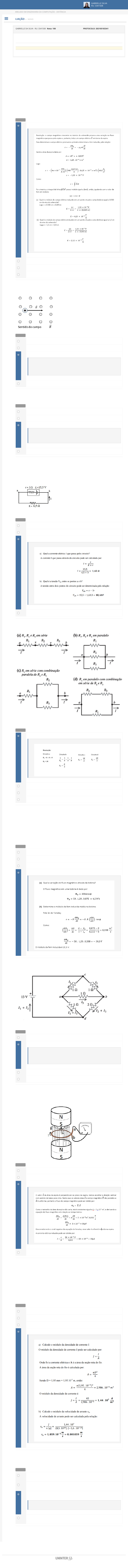 Voltar! GABRIELLE SILVA RU: 3341508"# CURSO: BACHARELADO EM ENGENHARIA DA COMPUTAÇÃO - DISTÂNCIA AVALIAÇÃO » NOVO Atenção. Este gabarito é para uso exclusivo do aluno e não deve ser publicado ou compartilhado em redes sociais ou grupo de mensagens. O seu compartilhamento infringe as políticas do Centro Universitário UNINTER e poderá implicar sanções disciplinares, com possibilidade de desligamento do quadro de alunos do Centro Universitário, bem como responder ações judiciais no âmbito cível e criminal. $ PROTOCOLO: 20210518334150840F8468 %GABRIELLE DA SILVA - RU: 3341508 Nota: 100 Disciplina(s): Física - Eletricidade Data de início: 18/05/2021 01:12 Prazo máximo entrega: - Data de entrega: 18/05/2021 01:24 Questão 1/10 - Física - Eletricidade Um solenoide fino possui 900 espiras por metro e raio igual a 2,50 cm. A corrente no solenoide cresce com uma taxa uniforme de 60,0 A/s. Considere as seguintes afirmações: I. O módulo do campo elétrico induzido em um ponto situado a uma distância do eixo do solenoide igual a 0,500 cm é 4,23.10 V/m; II. O módulo do campo elétrico induzido em um ponto situado a uma distância do eixo do solenoide igual a 1,0 cm é 5,71.10 V/m. Assinale a alternativa correta: Nota: 10.0 Questão 2/10 - Física - Eletricidade Uma partícula com carga elétrica igual a +Q entra com uma velocidade em uma região onde há um campo magnético uniforme. Com base na figura a seguir e na regra da mão direita, podemos afirmar que: Nota: 10.0 Questão 3/10 - Física - Eletricidade Nos pontos internos de um longo solenoide percorrido por uma corrente elétrica contínua, as linhas de campo magnético são: Nota: 10.0 Questão 4/10 - Física - Eletricidade Um circuito elétrico, conforme mostra a figura, é composto por uma bateria de FEM = 15,5 V, com resistência interna r = 3 ohms e um resistor de R = 6,5 ohms. I. A corrente elétrica I que passa pelo circuito é 2,47 A; II. A tensão V entre os pontos a e b é 10,61 V. Assinale a alternativa correta: Nota: 10.0 Questão 5/10 - Física - Eletricidade Suponha que as três resistências indicadas na figura possuem a mesma resistência, portanto R = R = R =R. Classifique as quatro combinações mostradas nos itens a, b, c, d, por ordem de resistência equivalente R ; R ; R ; R , da mais alta à mais baixa. Nota: 10.0 Questão 6/10 - Física - Eletricidade Considere uma bobina imersa em um campo magnético uniforme de 1,20 T. Inicialmente o plano da bobina está paralelo em relação ao vetor campo magnético. Ao realizar uma rotação 0,222s depois, o plano da bobina encontra-se perpendicular ao vetor campo magnético. Se esta bobina tem perfil retangular com 0,075 m de área e possui 50 espiras devido à rotação produzida, considere as seguintes afirmações: I. A variação do fluxo magnético através da bobina é 4,5 Wb; II. O módulo da fem induzida média na bobina é 20,3 V. Assinale a alternativa correta: Nota: 10.0 Questão 7/10 - Física - Eletricidade Você deseja medir a corrente que passa pelo resistor de 2 indicado na figura e também a diferença de potencial através dele. Como um voltímetro e um amperímetro devem ser conectados a esse resistor? Nota: 10.0 Questão 8/10 - Física - Eletricidade A figura representa uma espira condutora imersa em um campo magnético entre os polos de um eletroímã, o módulo do campo magnético aumenta com uma taxa crescente e constante de 0,015 T/s. A área da espira condutora imersa no campo é igual a 20 cm e a resistência total do circuito, incluindo o galvanômetro ligado nos pontos a e b, é igual a 3,0 ohms. A fem induzida e a corrente induzida no circuito são respectivamente: Nota: 10.0 Questão 9/10 - Física - Eletricidade Um fio de cobre possui um diâmetro de 1,95 mm. Esse fio está ligado a um chuveiro de 5500 W e conduz uma corrente elétrica de 43 A. A densidade dos elétrons livres é de 8,5.10 elétrons por metro cúbico. Analise as proposições: I. O módulo da densidade de corrente J é 3,24.10 A/m; II. A área da seção reta do fio é 3,998.10 m ; III. O módulo da velocidade de arraste é 0,001059 m/s ou 1,059 mm/s. Assinale a alternativa correta: Nota: 10.0 Questão 10/10 - Física - Eletricidade Através da experiência relatada por Oersted, onde uma corrente elétrica percorre um fio condutor, foi possível verificar algumas características a respeito do campo magnético gerado nessa situação. Nesse contexto é correto afirmar que: Nota: 10.0 -3 -2 A Somente a proposição I é verdadeira; B Somente a proposição II é verdadeira; C Todas as proposições são falsas; D Todas as proposições são verdadeiras. Você acertou!& A A partícula sofrerá um desvio para cima; B A partícula será acelerada na direção do seu movimento; C A partícula sofrerá um desvio para baixo; D A partícula será desacelerada. Você acertou! Gabarito: Utilizando a regra da mão direita (Aula 4) pode se chegar a esta conclusão. Com o indicador no sentido do campo e o polegar no sentido da velocidade, necessariamente a palma da sua mão estará apontando para baixo. Isto indica a direção e sentido da força magnética que atuará sobre a partícula, logo a mesma sofrerá um desvio para baixo & A Radiais, com origem no eixo do solenoide; B Circunferências concêntricas; C Retas paralelas ao eixo do solenoide; D Não há linhas de campo no interior do solenoide, pois nesse local o campo magnético é nulo. Você acertou! Gabarito: A figura 18 (Aula 4 página 29) serve de base para essa resposta. No entanto ela não mostras linhas exatamente paralelas pois o solenoide é “pequeno”. Como o enunciado fala de um longo solenoide as linhas de campo passa a ser praticamente paralelas. & ! ab A Todas as proposições são verdadeiras; B Somente a proposição I é verdadeira; C Somente a proposição II é verdadeira; D Todas as proposições são falsas. Você acertou!& 1 2 3 a b c d A R > R > R > R B R > R > R > R C R > R > R > R D