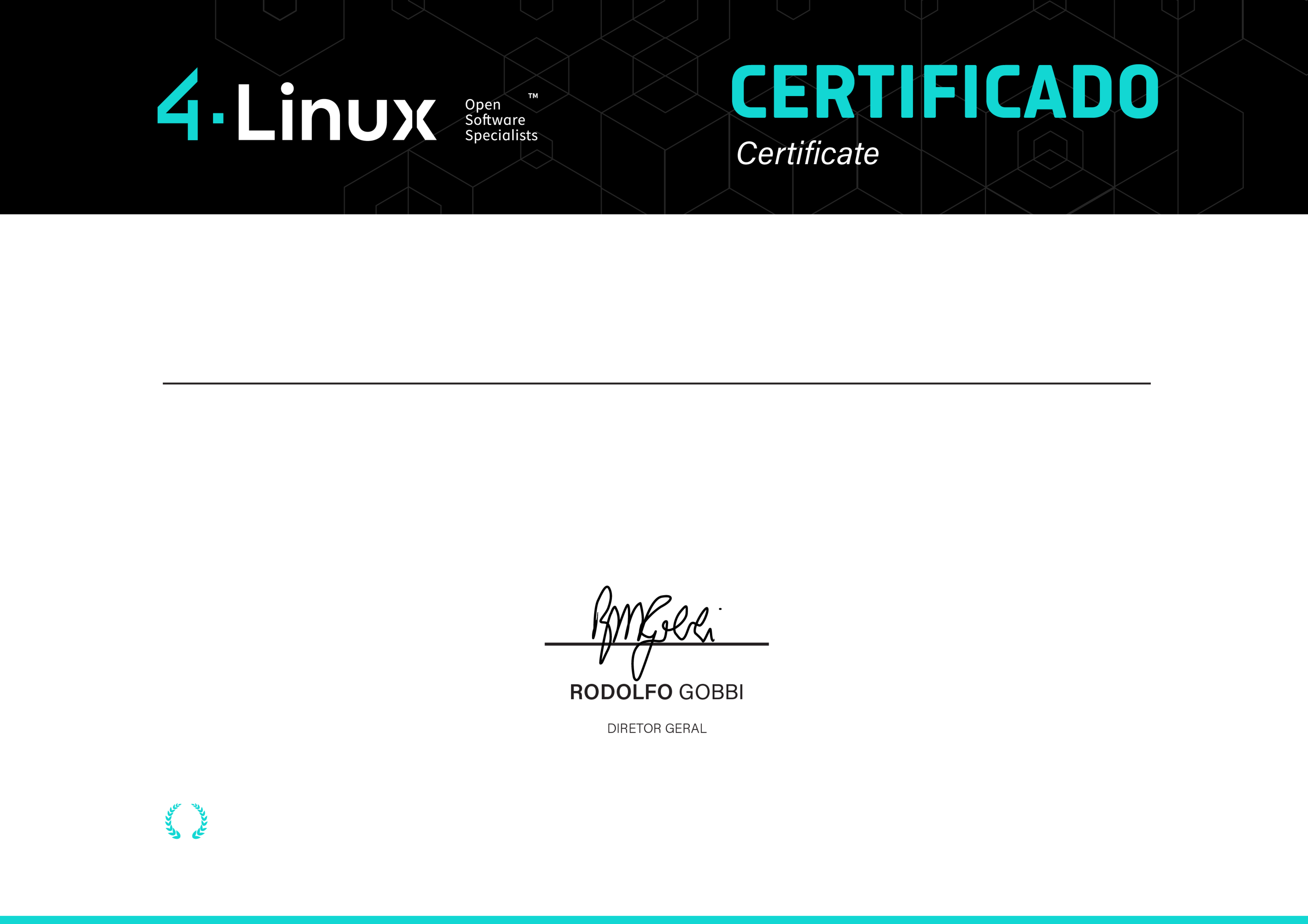 André Luís Rodrigues da Silva Concluiu o curso Linux Fundamentals, cumprindo a carga horária de 20 horas, com o instrutor Joatham Silva. Você pode conferir a autenticidade deste certificado usando o certificado ID 4L070100087598 e o código de verificação EbWwhbgD em http://certificados.4linux.com.br