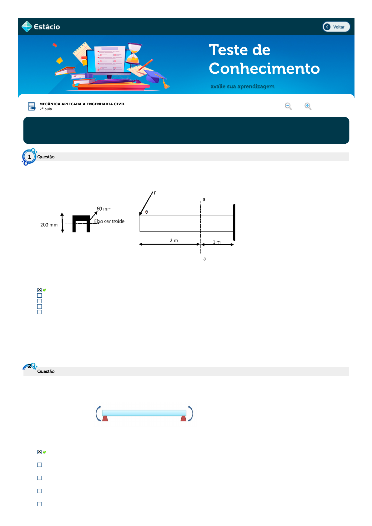 As figuras mostradas nas opções a seguir mostram duas situações em que esforços são aplicados a uma viga. A parte