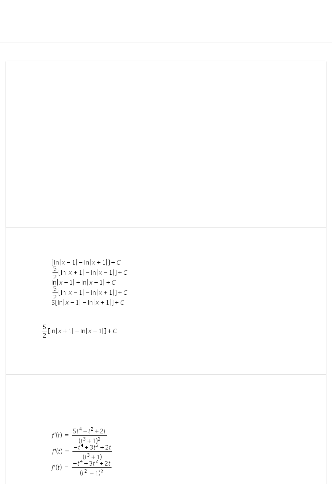Local: 223A - Sala de Aula / Andar / Polo Barra da Tijuca / POLO UVA BARRA MARAPENDI - RJ Acadêmico: EAD-IL10012-20183A Aluno: RENAN DA SILVA PIGNOLATI Avaliação: A2- Matrícula: 20181301742 Data: 11 de Setembro de 2018 - 13:00 Finalizado Correto Incorreto Anulada Discursiva Objetiva Total: 5,00/10,00 1 Código: 30791 - Enunciado: A derivada é uma das ideias fundamentais em cálculo e é utilizada para resolver uma ampla gama de problemas que envolvem tangentes e taxas de variação. Algumas derivadas são apresentadas em tabelas, assim como algumas integrais. Estudantes e profissionais que utilizam o Cálculo diferencial cotidianamente as têm na memória. Marque a alternativa que apresenta as derivadas primeira e segunda da função y = 4 + sen x. a) y' = 4+ cos x e y " = 4 - sen x b) y' = 4 - cos x e y " = 4 + sen x c) y' = cos x e y " = - sen x d) y' = sen x e y " = - cos x e) y' = -cos x e y " = sen x Alternativa marcada: d) y' = sen x e y " = - cos x Justificativa: Resposta correta: y' = cos x e y ' = - sen xy = 4 + sen x. y ' = 0 + cos x = cos x e y' = - sen x Distratores: y' = 4 - cos x e y ' = 4 + sen x Errada: os sinais estão errados e a derivada de uma constante (4) é igual a zero. Assim, não há 4 em nenhuma das parcelas das derivadas. y' = 4+ cos x e y ' = 4 - sen x Errada: porque a derivada de uma constante (4) é igual a zero. Assim, não há 4 em nenhuma das parcelas das derivadas. y' = -cos x e y ' = sen x Errada: os sinais das derivadas estão trocados. y' = sen x e y ' = - cos x Errada: derivada da função seno de x é o cosseno de x, não o próprio seno de x. 0,00/ 0,50 2 Código: 30785 - Enunciado: Expressar uma função racional (quociente de polinômios) como uma soma de frações mais simples constitui uma técnica de integração chamada de frações parciais. Essas frações mais simples são fáceis de integrar. Determine a integral a) b) c) d) e) Alternativa marcada: b) Justificativa: Resposta correta: Distratores: Errada, porque provavelmente não se trabalhou em frações parciais. Errada, porque provavelmente não se trabalhou em frações parciais. Errada, porque os sinais entre os ln e os dos módulos estão trocados. Errada, porque provavelmente não se trabalhou em frações parciais. 0,00/ 1,50 3 Código: 30794 - Enunciado: O processo de diferenciação de uma função pode ser facilitado quando utilizamos algumas estratégias algébricas, como a regra do produto, a regra do quociente e a regra da cadeia, entre outras. Para cada função distinta que precisamos diferenciar será necessário mobilizar conhecimento acerca das várias estratégias, para que se possa escolher a mais adequada para o caso em estudo. Algumas vezes, é possível determinar a derivada de uma função por meio de diferentes estratégias de cálculo. Marque a alternativa que apresenta a derivada da função . a) . b) . c) . 0,50/ 0,50 d) . e) . Alternativa marcada: e) . Justificativa: Resposta correta: Distratores: Errada, porque não se elevou a função do denominador ao quadrado. Errada, talvez porque se tenha utilizado a fórmula do quociente com sinal positivo entre as parcelas do denominador. Errada, porque colocou-se a função u no denominador da fórmula, e não a função v (do numerador). Errada, porque colocou-se a função u no denominador da fórmula, e não a função v (do numerador). Faltou ainda elevá-la ao quadrado. 4 Código: 30790 - Enunciado: Algumas integrais indefinidas podem ser determinadas a partir da relação existente entre derivadas e primitivas, quando podemos usar regras já conhecidas de derivação para obter regras correspondentes para a integração. Assim, temos o que chamamos de integrais imediatas, algumas delas presentes em tabelas de integrais. Marque a alternativa que apresenta o resultado de . a) . b) . c) . d) . e) . Alternativa marcada: e) . Justificativa: Resposta correta: Correta, pois: Distratores: Errada, porque a constante que multiplica 1/x é -10 e não -1/10. Errada, porque não se considerou a constante que multiplica 1/x. Errada, porque a integral de 1/x envolve o ln do módulo de x. Errada, pois faltou a constante de integração, obrigatória. 0,50/ 0,50 5 Código: 30818 - Enunciado: A derivada pode ser entendida como taxa de variação instantânea e, geometricamente, como a inclinação da reta tangente a uma curva em um ponto dessa curva. Determinar a equação da reta tangente à curva é um dos problemas que o cálculo diferencial resolve. Em pontos que estão na vizinhança do ponto para o qual temos a derivada, o comportamento da reta tangente à curva é muito próximo do comportamento da própria curva. Portanto, determinar a reta tangente à curva em um ponto pode ser útil, por exemplo, para aproximar valores da função com uma equação mais simples. A figura a seguir mostra uma tangente à cuva no ponto . Marque a alternativa que apresenta a equação da reta tangente à f(x) no ponto onde a = 1. a) . b) . c) . d) . e) . Alternativa marcada: d) . Justificativa: Resposta correta: Distratores: Errada, pois essa é a equação da derivada e não a da reta, cuja inclinação é a derivada. Errada, porque a reta não passa por (1,0) e porque a equação de reta deve ser usada, não a exponencial. Errada, porque a reta não passa por (1,0). Errada, porque e é o coeficiente angular, e não o coeficiente linear. 0,00/ 1,50 6 Código: 30787 - Enunciado: A primeira derivada informa onde uma função é crescente e onde ela é decrescente e se o mínimo ou máximo local ocorre em um ponto crítico. A segunda derivada nos fornece informações sobre o modo como o gráfico de uma função derivável "entorta" ou muda de direção, ou seja, muda sua concavidade, em determinado intervalo. Determine a concavidade de . a) Côncavo para baixo no intervalo e côncavo para baixo no intervalo . b) Côncavo para baixo no intervalo e côncavo para baixo no intervalo . 0,00/ 1,50 c) Côncavo para baixo no intervalo e côn