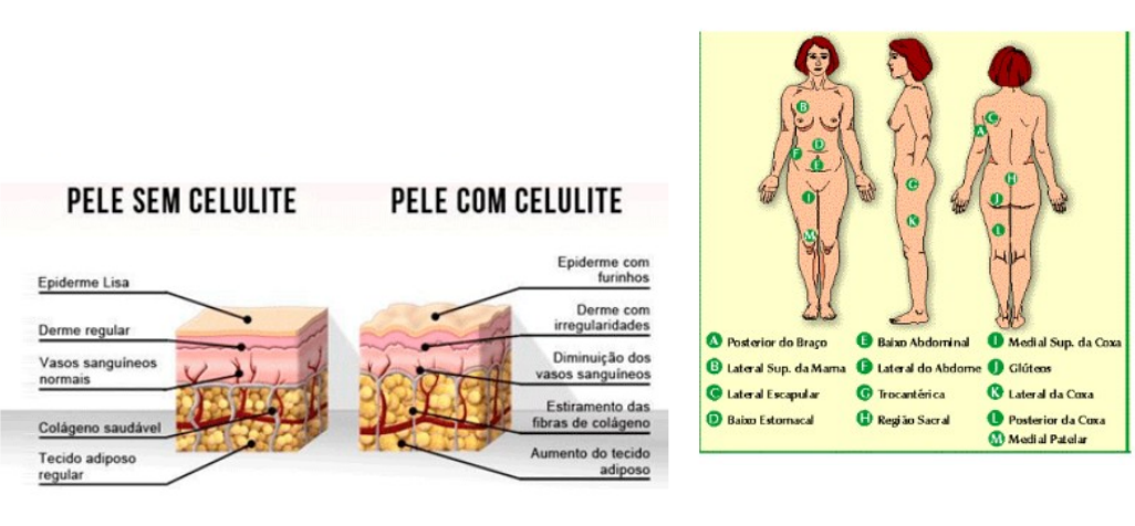 HLDG- Hidrolipodistrofia ginóide Nomenclatura: · HIDRO: água · LIPO: gordura · DISTROFIA: desordem metabólica do tecido · GINÓIDE: da mulher Diferença na morfologia do tecido: Ocorrência: · Mais comum em mulheres, esse fator tem relação com os estrógenos · Presente em mais de 90% das mulheres pós puberdade · O estimulo hormonal, produz maior armazenamento de gordura e retenção hídrica intersticial Localização: Diferenças entre homens e mulheres: A disposição dos septos no homem favorece o relevo uniforme, não evidenciando o aumento das células de gordura. O formato e o tamanho das “câmaras” de gordura feminina permitem maior acúmulo gorduroso que nos homens. HOMEM MULHER Na gestação: HLDG pode se agravar durante a gestação por conta da ação estrogênica aumentando o tamanho dos adipócitos. O aparecimento ou agravo da HLDG durante a gestação pode não estar relacionada ao aumento de peso. Etiopatogenia: Predisposição: Hereditariedade; sexo; idade Fatores condicionantes: tecido adiposo; microcirculação; matriz extracelular Fatores determinantes ou agravante: estilo de vida; trabalho; postura; sedentarismo. GRAUS DE HLDG Fase 1: Congestão venosa e linfática (nenhuma ou presença de celulite mínima baseada na observação: em repouso ou na contração muscular voluntária. Fase 2: Polimerização da SFA (Na observação verifica-se uma irregularidade na topografia da pele. Verifica-se celulite aquando da contração muscular. Fase 3: Fibrose (aparecimento da clássica “casca de laranja” em repouso. Presença de pequenos nódulos subcutâneos). Fase 4: Nódulos (Além das características anteriores, são encontrados nódulos muito evidentes e severos, bem como depressões cutâneas. Tipos de classificação: Dura – Mulheres jovens, vida ativa, necessita pinçamento para visualização. Comum a associação com estrias. Pura -Não apresenta associação com ouros tipos de HLDG. Acomete mulheres magras e com biotipo atlético Mista – A ocorrência associa mais de um tipo de HLDG. Pode ser, por exemplo, edematosa e flácida, entre outras associações. Edematosa – Associada a edema e comprometimentos circulatórios, acompanha queixa de cansaço em membros inferiores, dor a palpação Flácida – Mulheres mais maduras, sedentárias ou pós perda de peso Compacta – Pele túrgida com tecido adiposo denso. A epiderme está tensionada pelo volume e podem surgir as estrias. A obesidade não está necessariamente associada. Avaliação: · Teste de preensão ou pinçamento: definir o grau · Teste de Contração muscular: definir o tipo · Teste de palpação: definir o tipo (consistência da pele, presença de ondulações, nódulos) e avaliar temperatura · Teste de digitopressão: definir a presença de edema e presença de cacifo · Inspeção ( visual): Avaliar o grau e a coloração da pele.