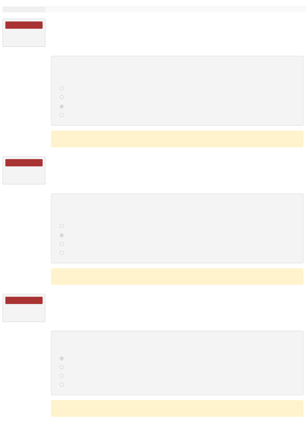 Questão 1 Correto Atingiu 1,00 de 1,00 Questão 2 Correto Atingiu 1,00 de 1,00 Questão 3 Correto Atingiu 1,00 de 1,00 1. Um guia de cabo pode ser feito de um material metálico macio como o alumínio ou de um material não metálico como o (a): Escolha uma opção: a. Fibra de Vidro; b. Nylon; c. Fenol; d. Inconel. A resposta correta é: Fenol; 10. Existem duas maneiras pelas quais a superfície de controle pode estar desbalanceada estaticamente. Elas são chamadas de: Escolha uma opção: a. Extra-balanceamento e intra-balanceamento; b. Sub-balanceamento e sobrebalanceamento; c. Balanceamento e desbalanceamento; d. Extra-balanceamento e sub-balanceamento. A resposta correta é: Sub-balanceamento e sobrebalanceamento; 2. Os cabos que passam sobre as roldanas são mantidos no lugar por: Escolha uma opção: a. Guardas; b. Batentes; c. Esferas; d. Esticadores. A resposta correta é: Guardas; Avaliar 10,00 de um máximo de 10,00(100%) Questão 4 Correto Atingiu 1,00 de 1,00 Questão 5 Correto Atingiu 1,00 de 1,00 Questão 6 Correto Atingiu 1,00 de 1,00 3. É usado para segurar os ailerons, leme e profundor em suas posições neutras: Escolha uma opção: a. Equipamento para travamento interno; b. Amortecedores de superfície; c. Batentes; d. Nenhuma das anteriores. A resposta correta é: Equipamento para travamento interno; 4. Para determinar a quantidade de tensão de um cabo de comando, é usado um: Escolha uma opção: a. Manômetro; b. Termômetro; c. Tensiômetro; d. Esticador. A resposta correta é: Tensiômetro; 5. Transferidor que pode ser usado para medir aileron, leme de profundidade e ângulo de deslocamento do flape: Escolha uma opção: a. Transferidor de marcação; b. Transferidor universal de superfícies; c. Transferidor universal de hélice; d. Transferidor universal SAE. A resposta correta é: Transferidor universal de hélice; Questão 7 Correto Atingiu 1,00 de 1,00 Questão 8 Correto Atingiu 1,00 de 1,00 Questão 9 Correto Atingiu 1,00 de 1,00 6. A faixa de amplitude dos controles e das superfícies de controle deve ser inspecionada em ambas as direções, partindo: Escolha uma opção: a. Da cambra superior; b. Do neutro; c. De um dos lados; d. Da cambra inferior. A resposta correta é: Do neutro; 7. São controles de vôo de um helicóptero: Escolha uma opção: a. Coletor, manche e pedais; b. Coletivo manche e pedais; c. Cíclico, manche e pedais; d. Cíclico, coletivo e pedais. A resposta correta é: Cíclico, coletivo e pedais. 8. Processo para determinar as posições das pontas das pás do rotor, relativas uma à outra, enquanto a cabeça do rotor está girando, determinando a necessária correção para manter estas posições dentro das tolerâncias certas: Escolha uma opção: a. Alinhamento; b. Trajetória da pá; c. Balanceamento; d. Rastreamento. A resposta correta é: Trajetória da pá; Questão 10 Correto Atingiu 1,00 de 1,00 9. Quando uma pá elevada e uma pá de descida se encontram no mesmo ponto é chamado de: Escolha uma opção: a. Cruzamento; b. Incidência; c. Diedro; d. Alinhamento. A resposta correta é: Cruzamento;