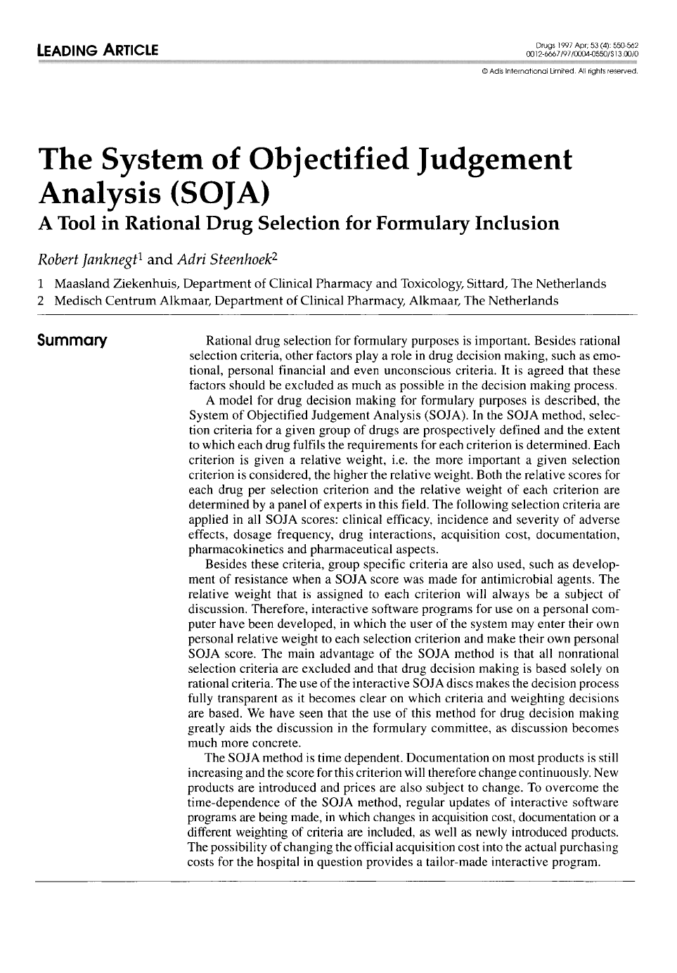 LEADING ARTICLE Drugs 1997 Apr: 53 (4): 550-562 00 12-6667/97/0004-0550/$1 3.00/0